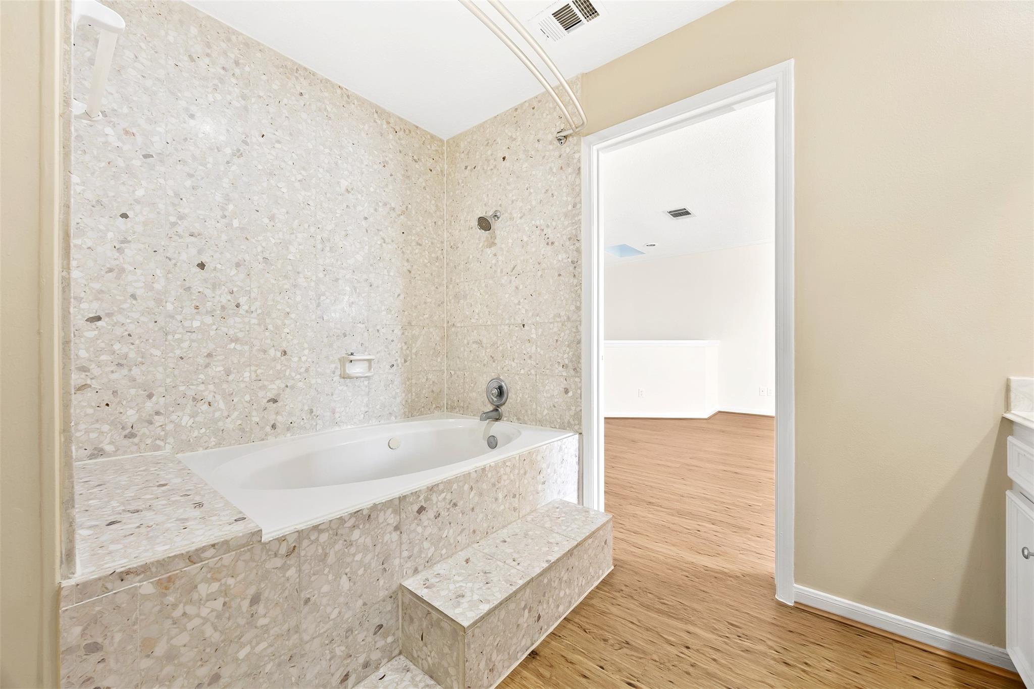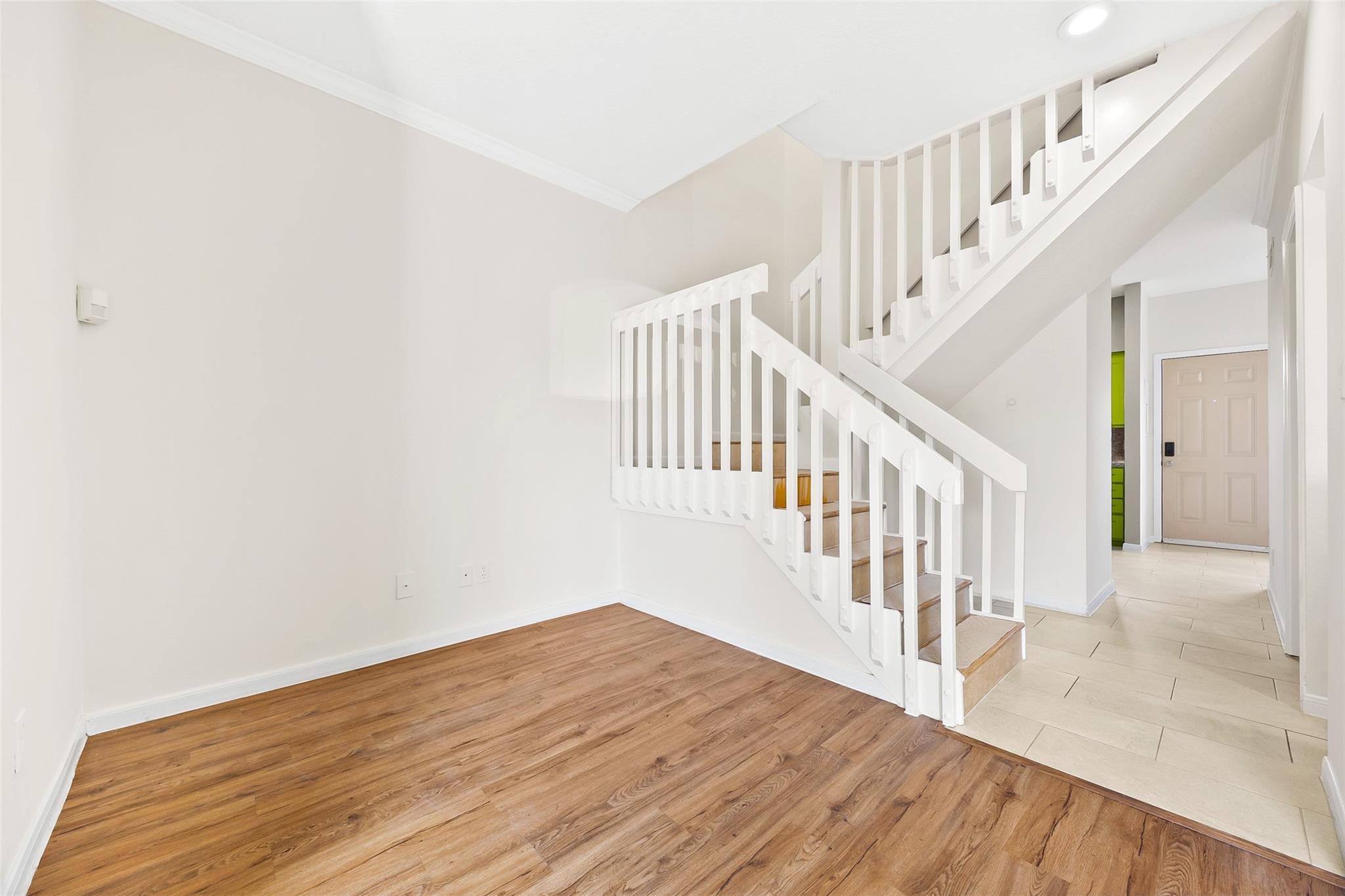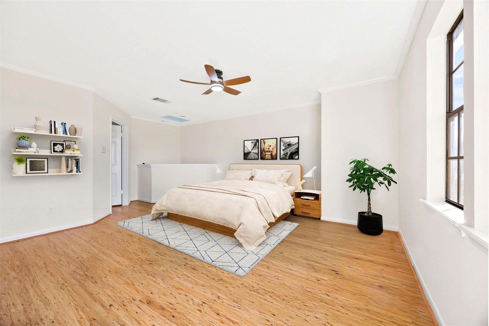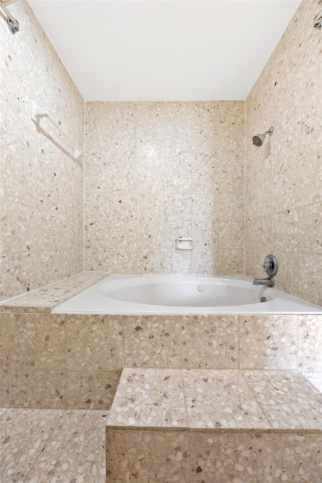 Spacious, updated, well-kept 2 story townhome in a manicured community. Enjoy two spacious bedrooms each with its own ensuite bathroom and large walk-in closets. Massive master bedroom with lots of light and new luxury wood grain vinyl flooring throughout (no carpet). Enjoy a landscaped, low maintenance front outdoor space and a turfed, landscaped back patio with built-in mounted bar top for porch sipping. Brand new roof and water heater. New bright paint. New front storm window. Custom built kitchen cabinets. Newly insulated attic. Wet bar and gas fireplace. One of the few in community with a fully enclosed private garage. Keyless front gate and door access and locking. Brand new neighborhood walk, jog, bike trail the city implemented across the street. Dependably maintained grounds green space to walk the dogs.7 minutes to Beltway 8 and Highway 90. 8 minutes to Highway 59. 10 minutes to 610 and Meyerland shopping square.Westbury Park a few blocks away. Two large HEBs within 5 miles.