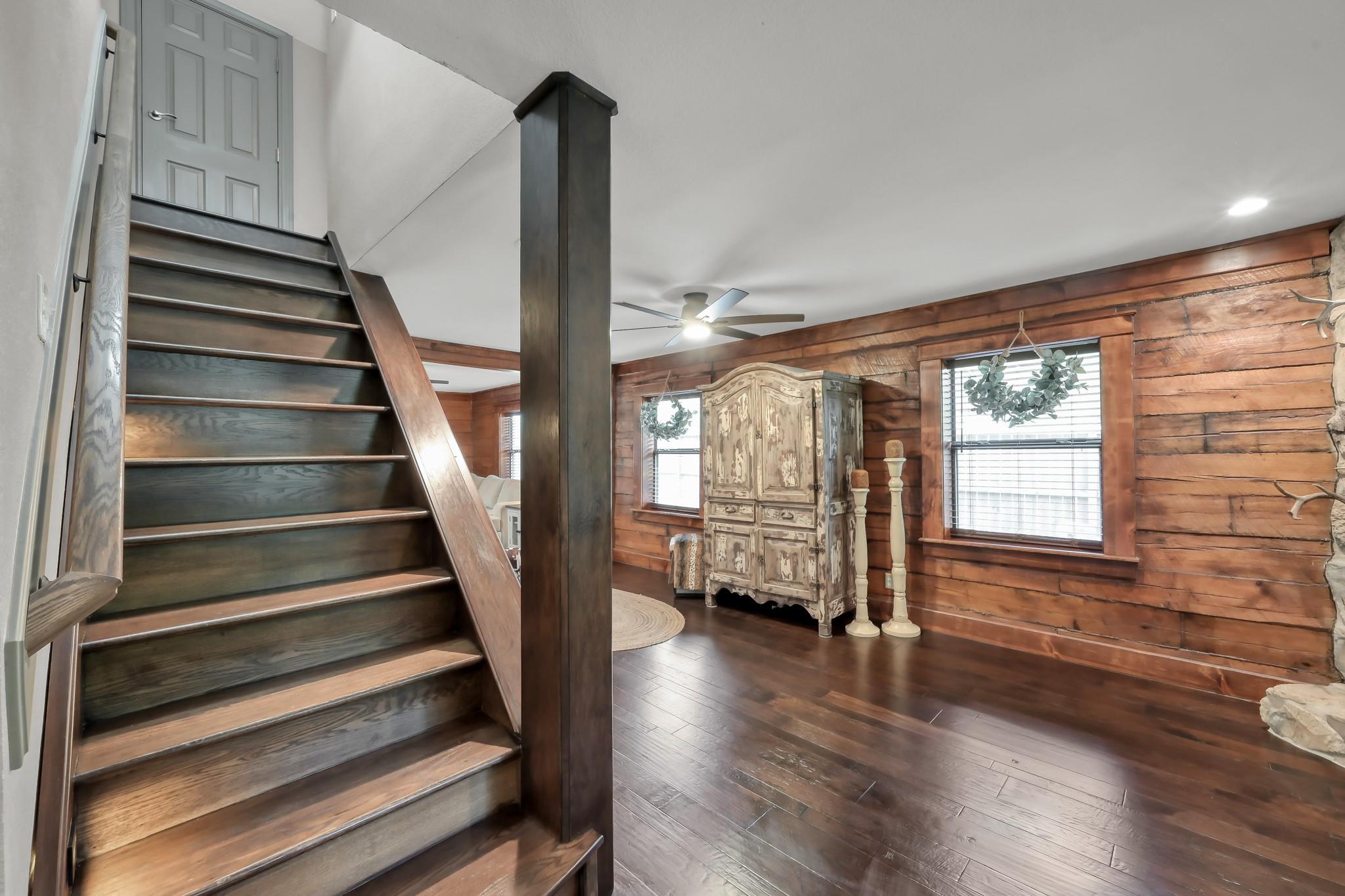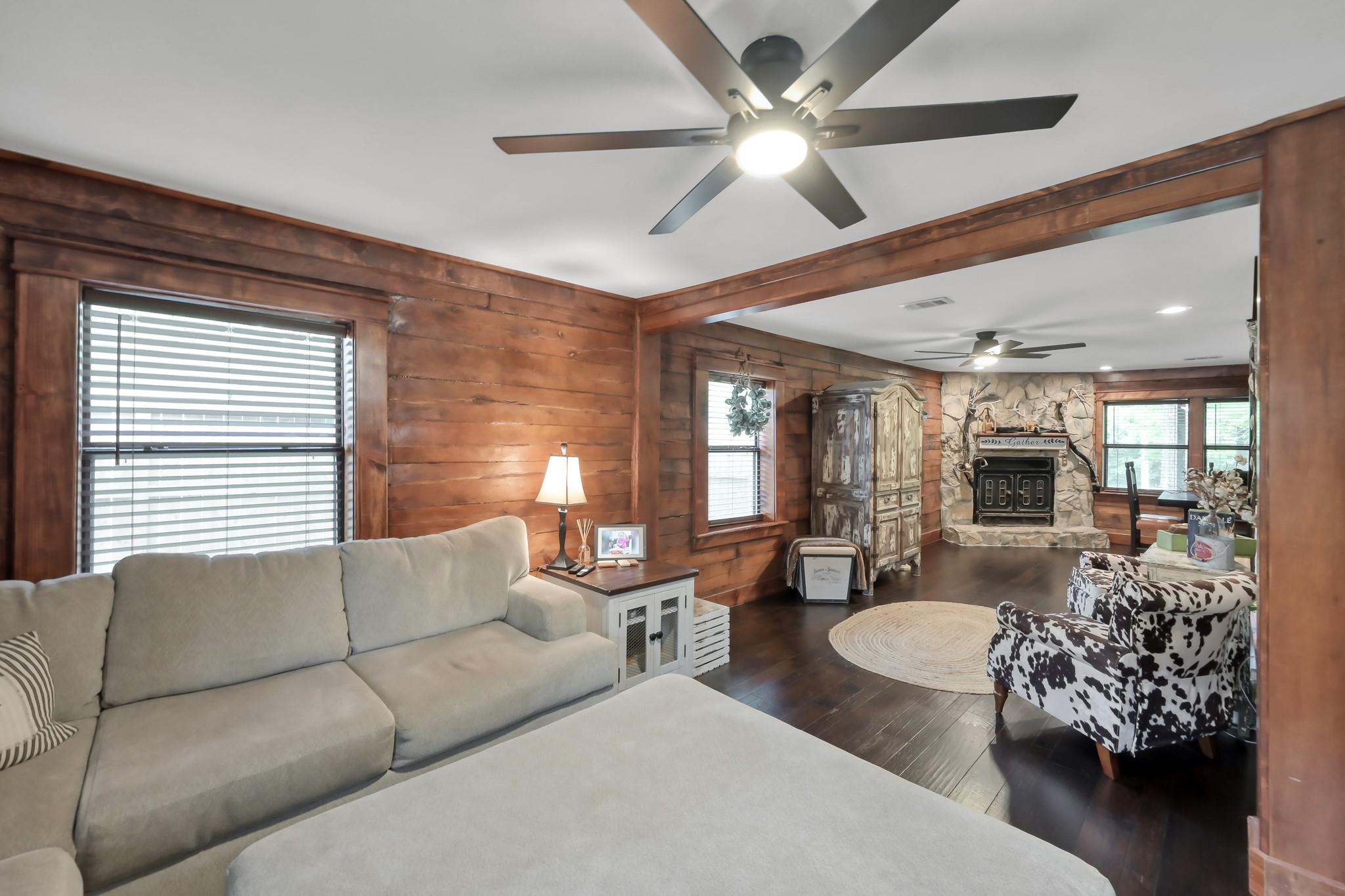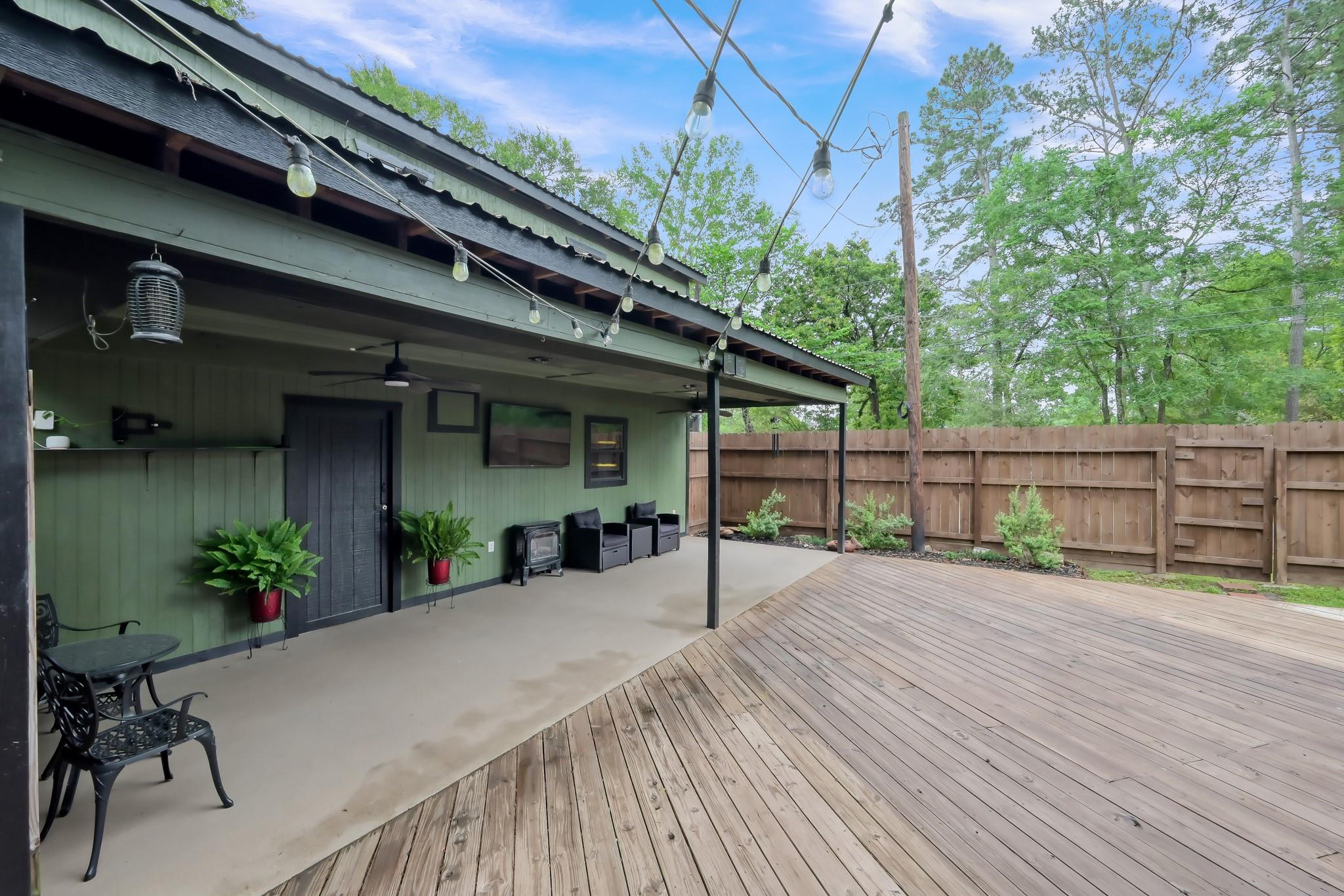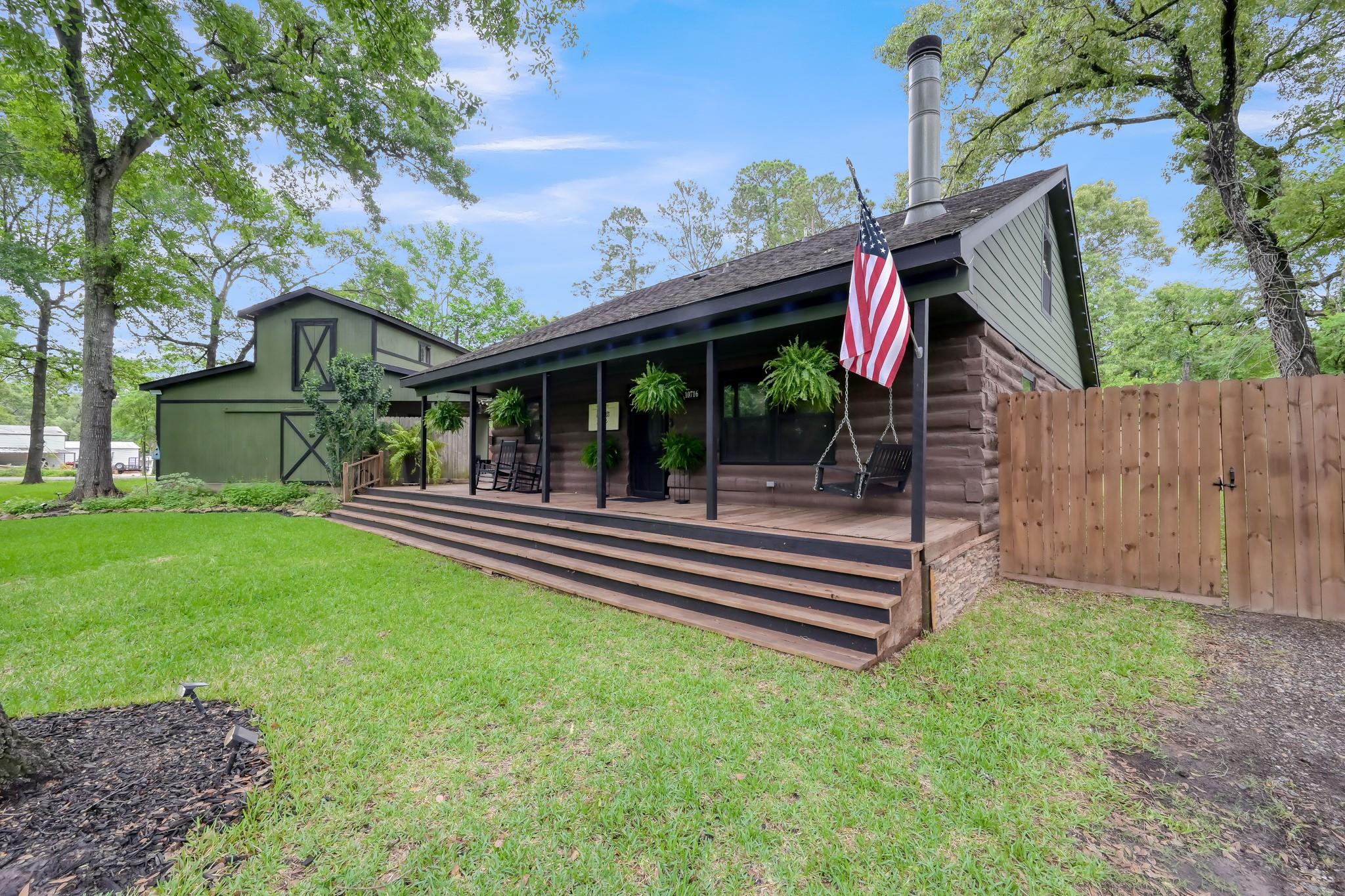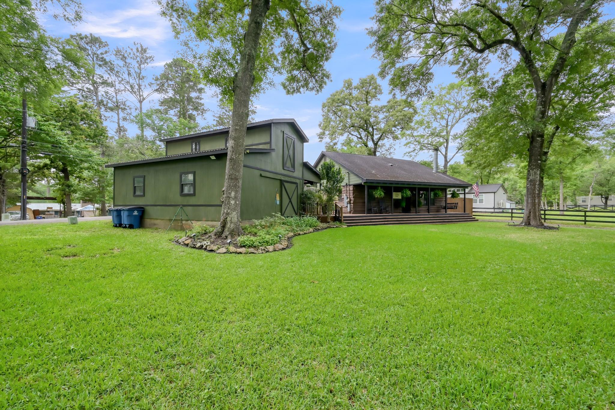 Escape to your own peaceful retreat in Montgomery! This 3-bedroom, 2-bath custom-built log home sits on a spacious ½-acre corner lot, offering the perfect blend of charm, comfort, & tranquility. Step inside to find a meticulously maintained interior featuring beautiful wood floors throughout, a cozy wood-burning fireplace, & numerous updates. The kitchen is well-appointed with stainless steel appliances and ample cabinet space, making it both functional and inviting. Updated bathrooms include a walk-in shower on both. Sun-filled living spaces create a warm and welcoming atmosphere throughout the home. Upstairs, you’ll find two generously sized bedrooms & a full bathroom, providing a private retreat for family or guests. Enjoy outdoor living in your private backyard, complete with a deck, covered patio, & fire pit-perfect for relaxing or entertaining. The property also features a two-car garage with additional storage space above. Zoned to Montgomery ISD, (Lake Creek)
