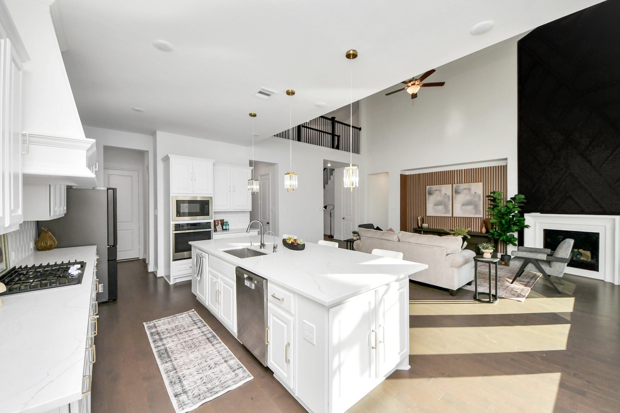 InteriorFireplace:1/Gas ConnectionsPets:W/ RestrictionsSmoking Allowed:NoFloors:Engineered Wood,Tile,WoodCountertop:QuartzBathroom Description:Primary Bath: Double Sinks,Primary Bath: Separate Shower,Primary Bath: Soaking TubBedroom Desc:2 Bedrooms Down,Primary Bed - 1st FloorKitchen Desc:Island w/o Cooktop,Kitchen open to Family Room,Pantry,Under Cabinet Lighting,Walk-in PantryRoom Description:1 Living Area,Breakfast Room,Family Room,Formal Dining,Gameroom Up,Home Office/Study,Media,Utility Room in HouseHeating:Central Gas,Solar AssistedCooling:Central Electric,Solar AssistedConnections:Electric Dryer Connections,Gas Dryer ConnectionsDishwasher:YesDisposal:YesMicrowave:YesRange:Gas CooktopOven:Gas OvenEnergy Feature:Attic Fan,Attic Vents,Ceiling Fans,Digital Program Thermostat,Energy Star Appliances,Energy Star/CFL/LED Lights,High-Efficiency HVAC,Insulated/Low-E windows,Insulation - Blown Cellulose,Insulation - Blown Fiberglass,Radiant Attic Barrier,Solar Panel - Owned,Solar PV Electric Panels,Tankless/On-Demand H2O HeaterInterior:Alarm System - Owned,Crown Molding,Fire/Smoke Alarm,High Ceiling,Vaulted Ceiling,Water Softener - Owned