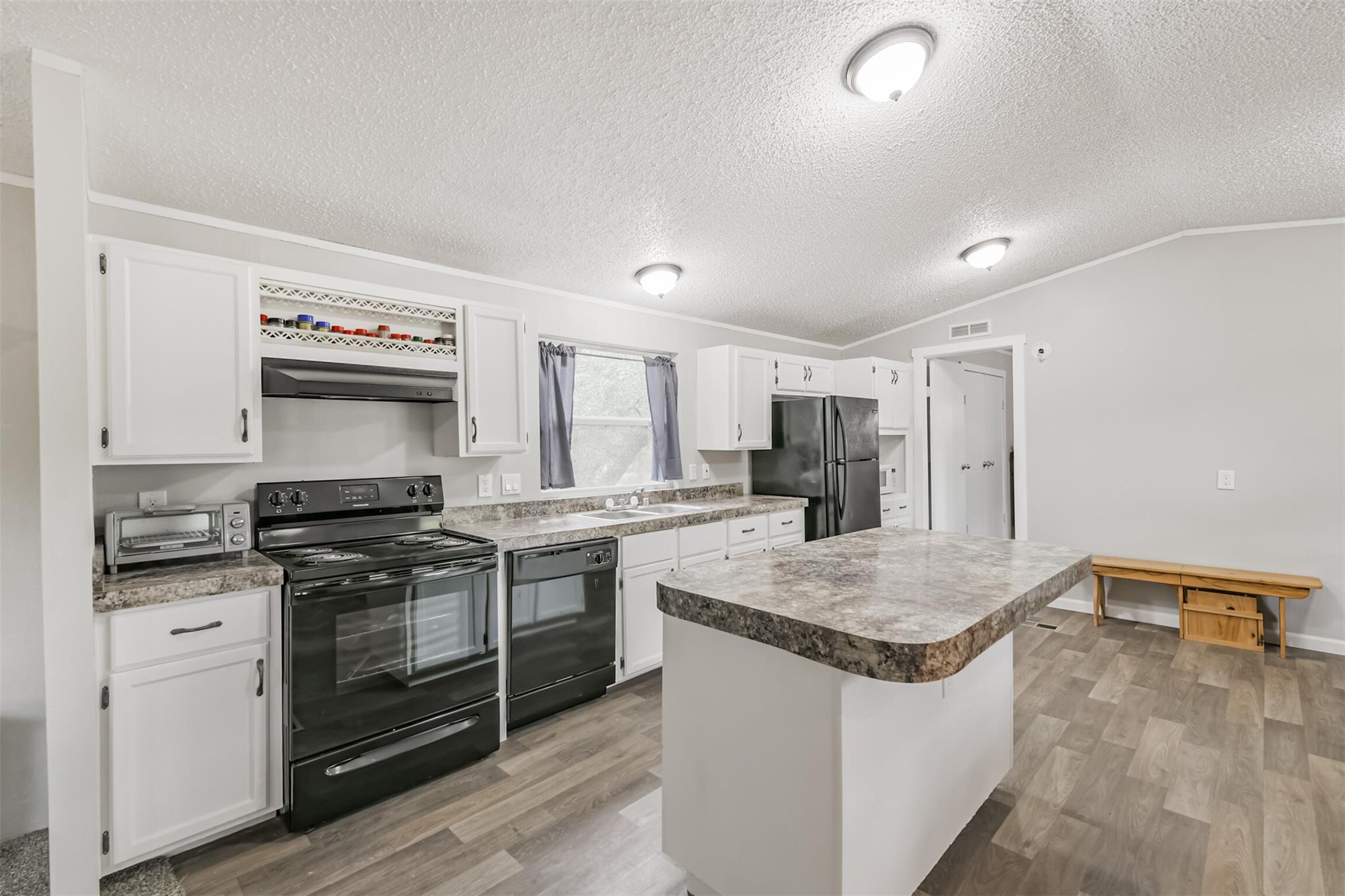 InteriorFireplace:1/Electric FireplaceFloors:Carpet,LaminateBedroom Desc:All Bedrooms DownKitchen Desc:Island w/o Cooktop,PantryRoom Description:1 Living AreaHeating:Central ElectricCooling:Central ElectricConnections:Electric Dryer Connections,Washer ConnectionsRange:Electric RangeDishwasher:Yes