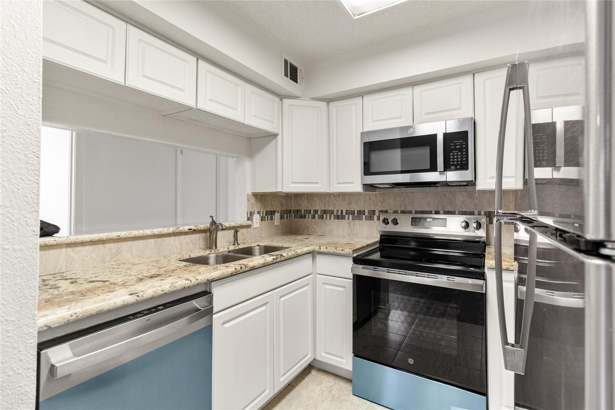 2 story, 2 bedroom, 1.5 bath home in a quiet gated community. Home has updated kitchen with granite counter tops, white cabinetry and designer tile back splash. Tile flooring (LOOKS LIKE WOOD!!!) downstairs and carpet flooring upstairs.new Appliances (Fridge, Oven/Range, Microwave, Washer & Dryer) . Window blinds . Nice patio and storage. Assigned parking (2 spaces) right outside the back door. Close to Beltway and I-10 and City Center and Mem City. Lots of Guest Parking in Front. Spring Branch ISD. NO FLOODING!!!
