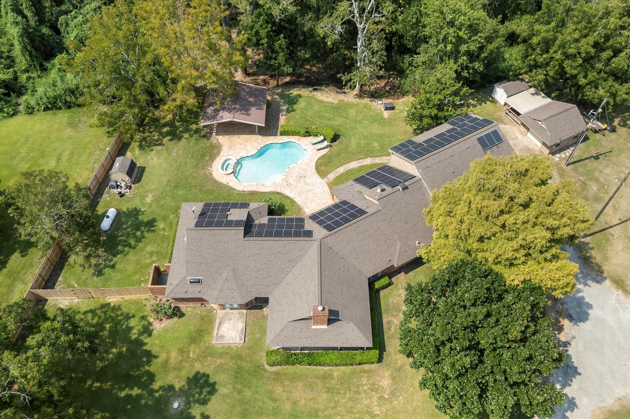 ExteriorRoof:CompositionFoundation:SlabPrivate Pool:YesPrivate Pool Desc:Heated,In Ground,Pool With Hot Tub AttachedExterior Type:OtherLot Description:OtherGarage Carport:Additional Parking,Boat Parking,WorkshopGarage Size:806Access:Driveway GateWater Sewer:Septic Tank,WellGarage Apartment:YesExterior:Private Driveway,Spa/Hot Tub