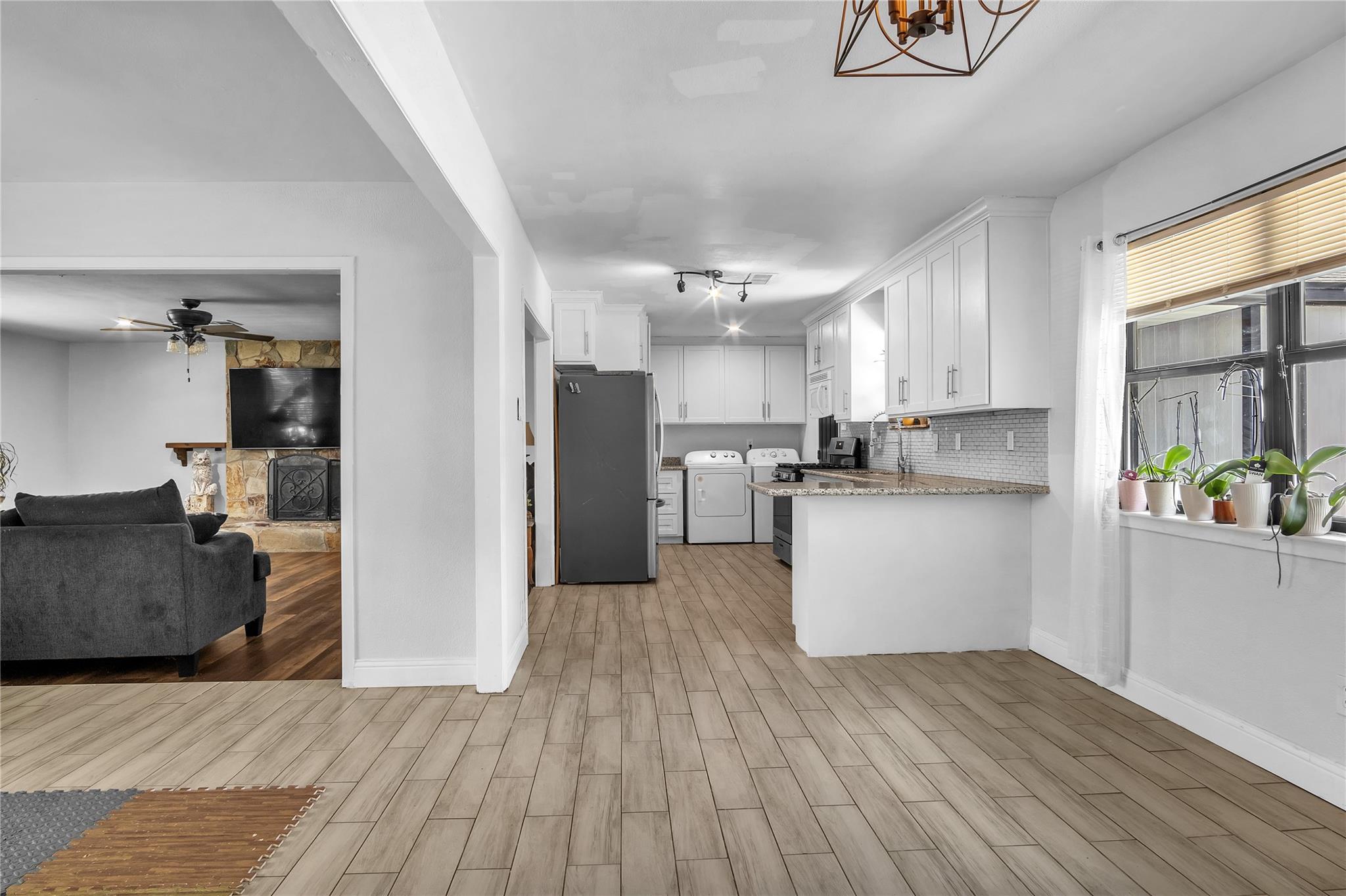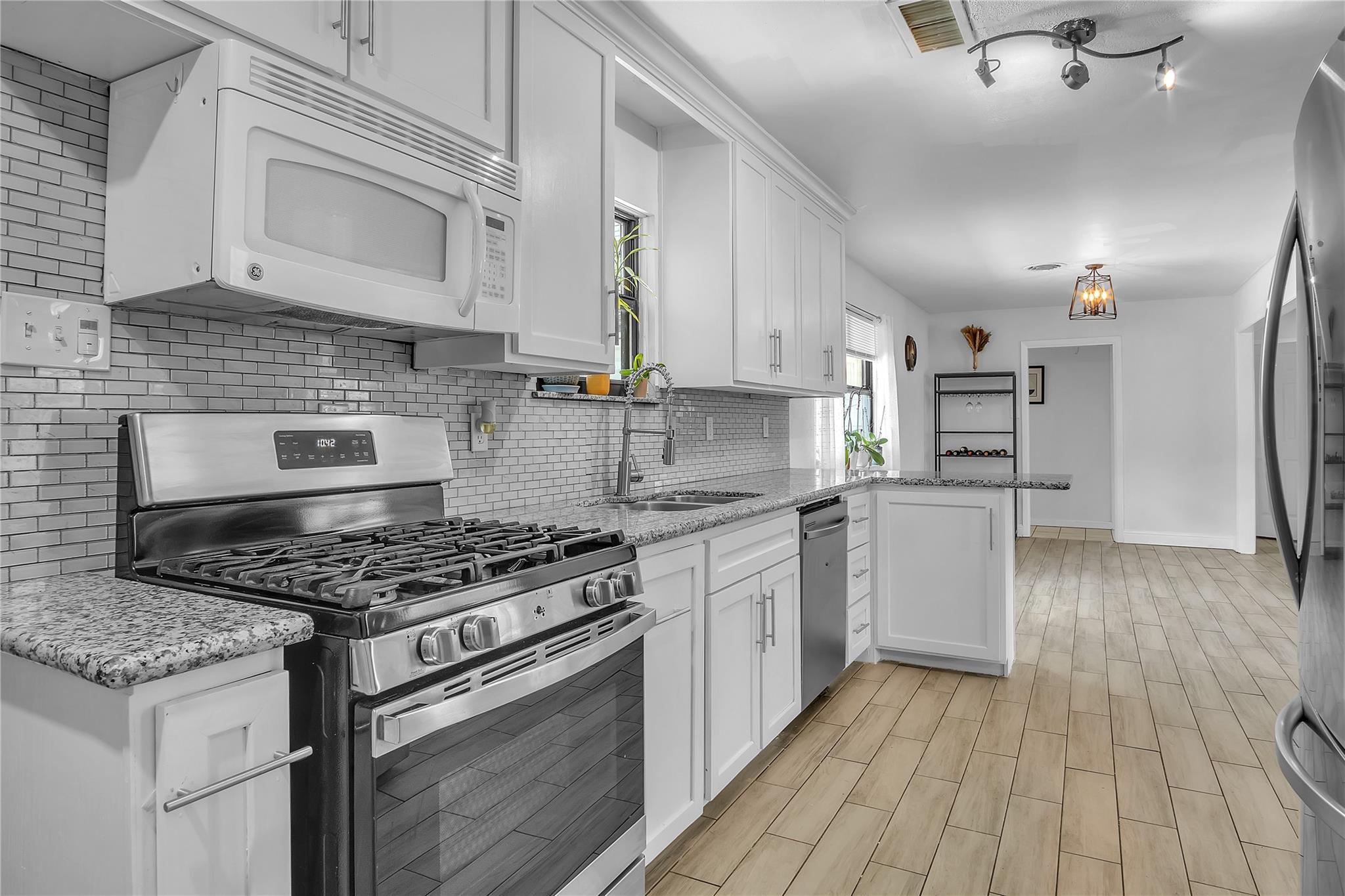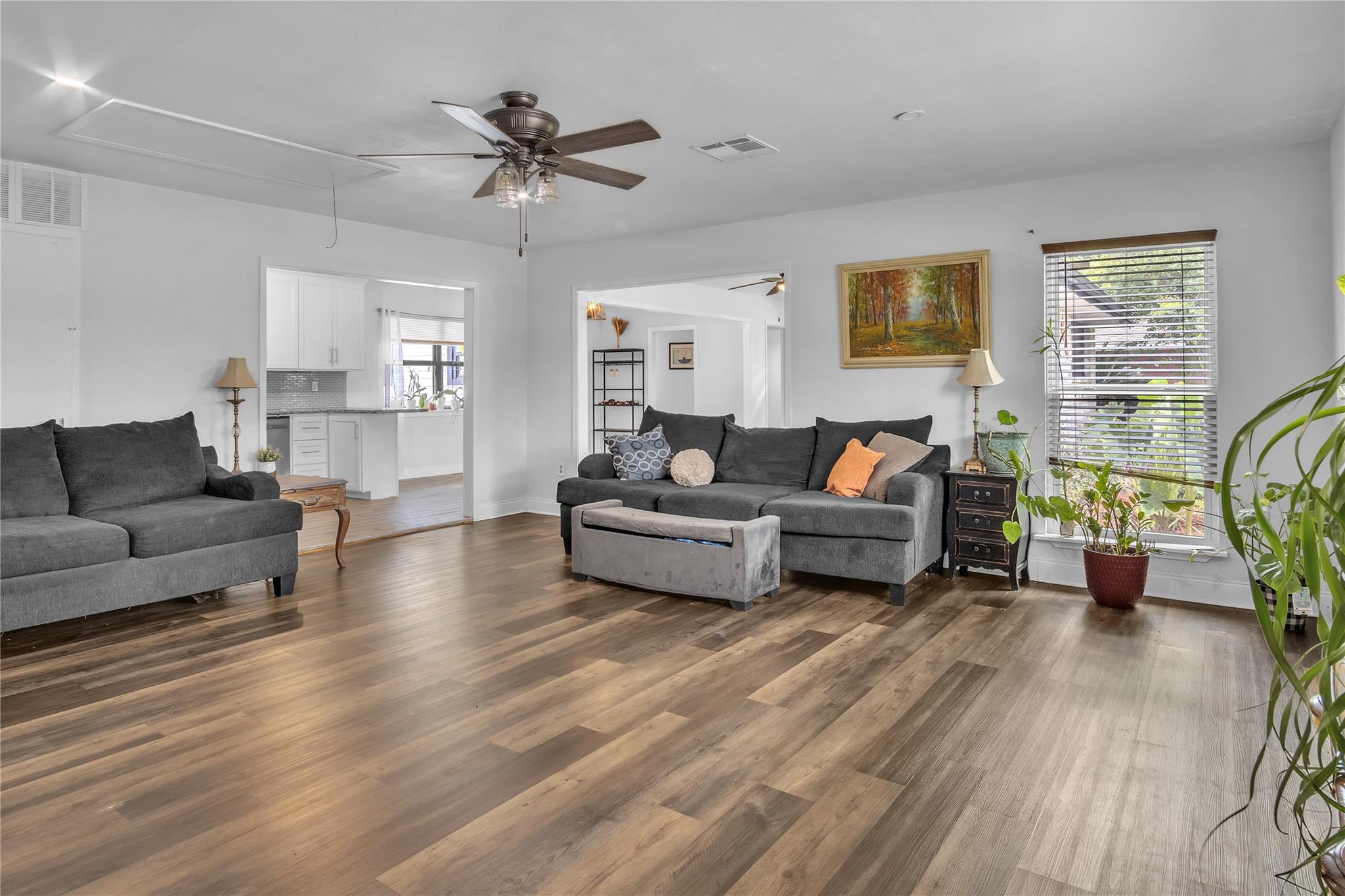 Discover a rare gem with two homes on one lot! The main residence boasts 3 beds, 2 baths, and 1,640 sq ft of bright, open living space with modern charm. The 600 sq ft guest house, a thriving Airbnb, has 1 bed, 1 bath, ideal as an office, guest suite, or rental to offset your mortgage. Recent upgrades: new roof (Oct 2024), HVAC (2024), water heater (2021), energy-efficient windows. All appliances included for an easy move-in. Outdoors: 4-car carport, large deck, patio for entertaining, workshop, storage shed, fenced yard for pets. Inside: fresh paint, porcelain tile, luxury vinyl floors, granite counters, modern fixtures, ample storage. Free of HOA restrictions, with low taxes and X flood zone status, this property offers modern comfort and unmatched value. Secure this unique haven today!