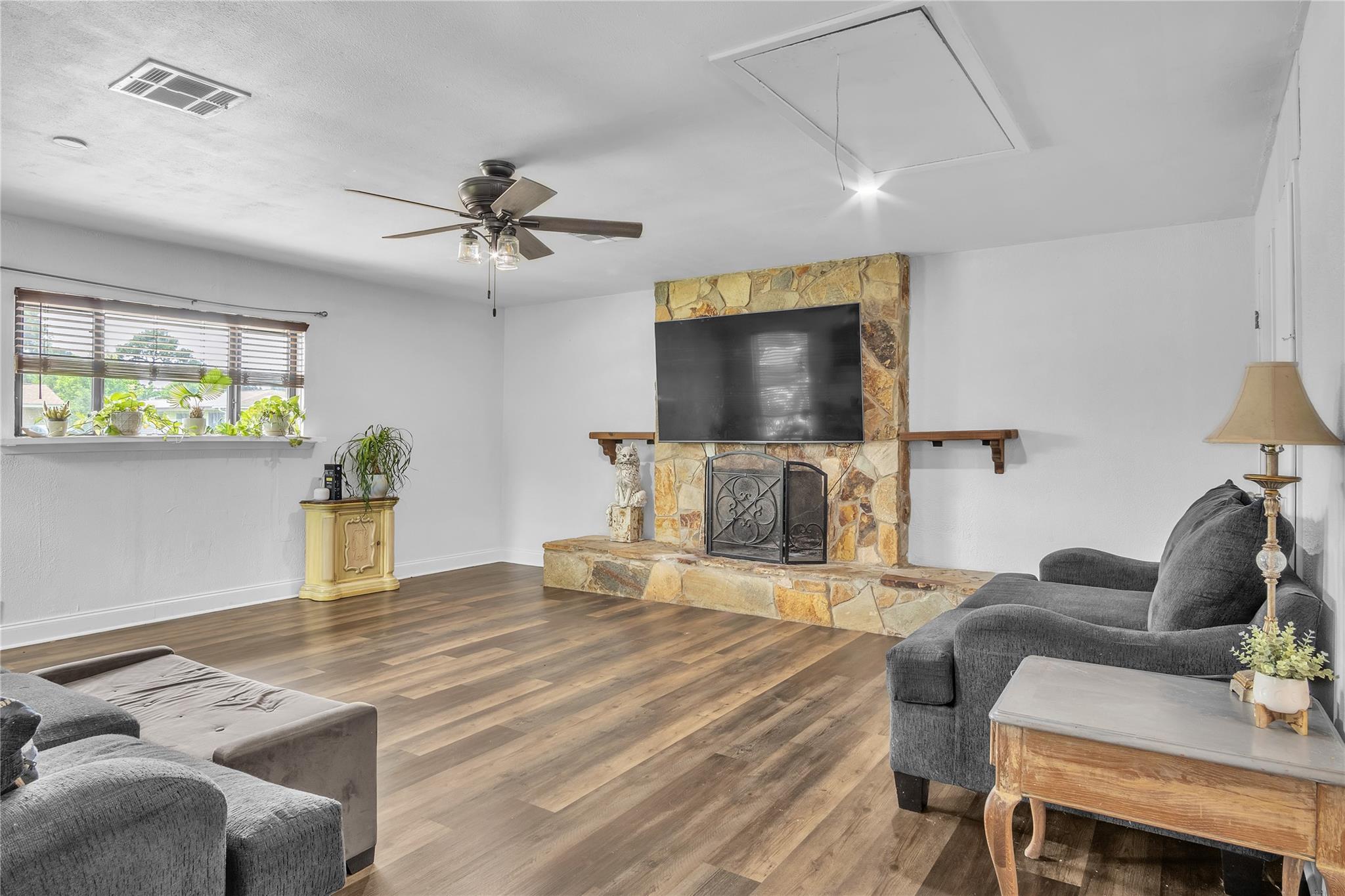 InteriorFloors:Tile,Vinyl PlankHeating:Central Gas,Window UnitCooling:Central Electric,Window UnitsMicrowave:YesDisposal:YesDishwasher:YesEnergy Feature:Ceiling Fans