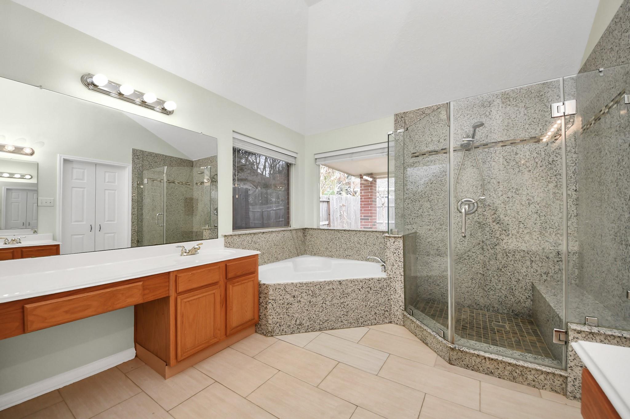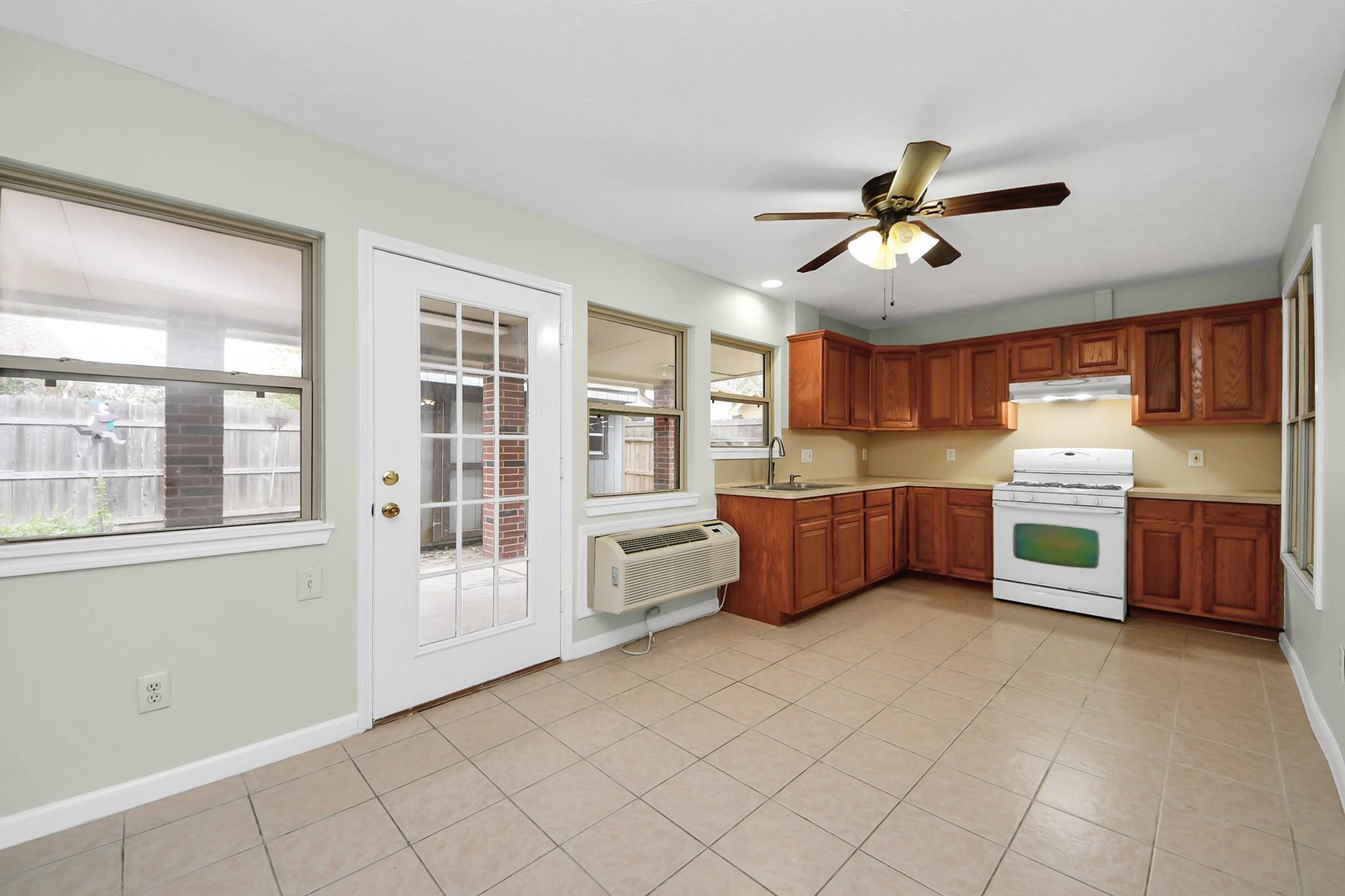 One-story home featuring 4 bedrooms, 2 baths, 2 FULL KITCHENS, plus a game room or optional formal living and dining spaces. The layout includes a large kitchen with breakfast bar overlooking the breakfast area, ideal for everyday use and gatherings. The owner’s retreat offers an oversized walk-in closet, dual vanities, and a separate tub and shower. Additional features include a covered patio and a three-car garage. Conveniently located near Pearland Parkway and Hwy 288 with easy access to Pearland Town Center, H-E-B, local dining, retail, and area schools, providing everyday convenience within a well-established Pearland neighborhood.