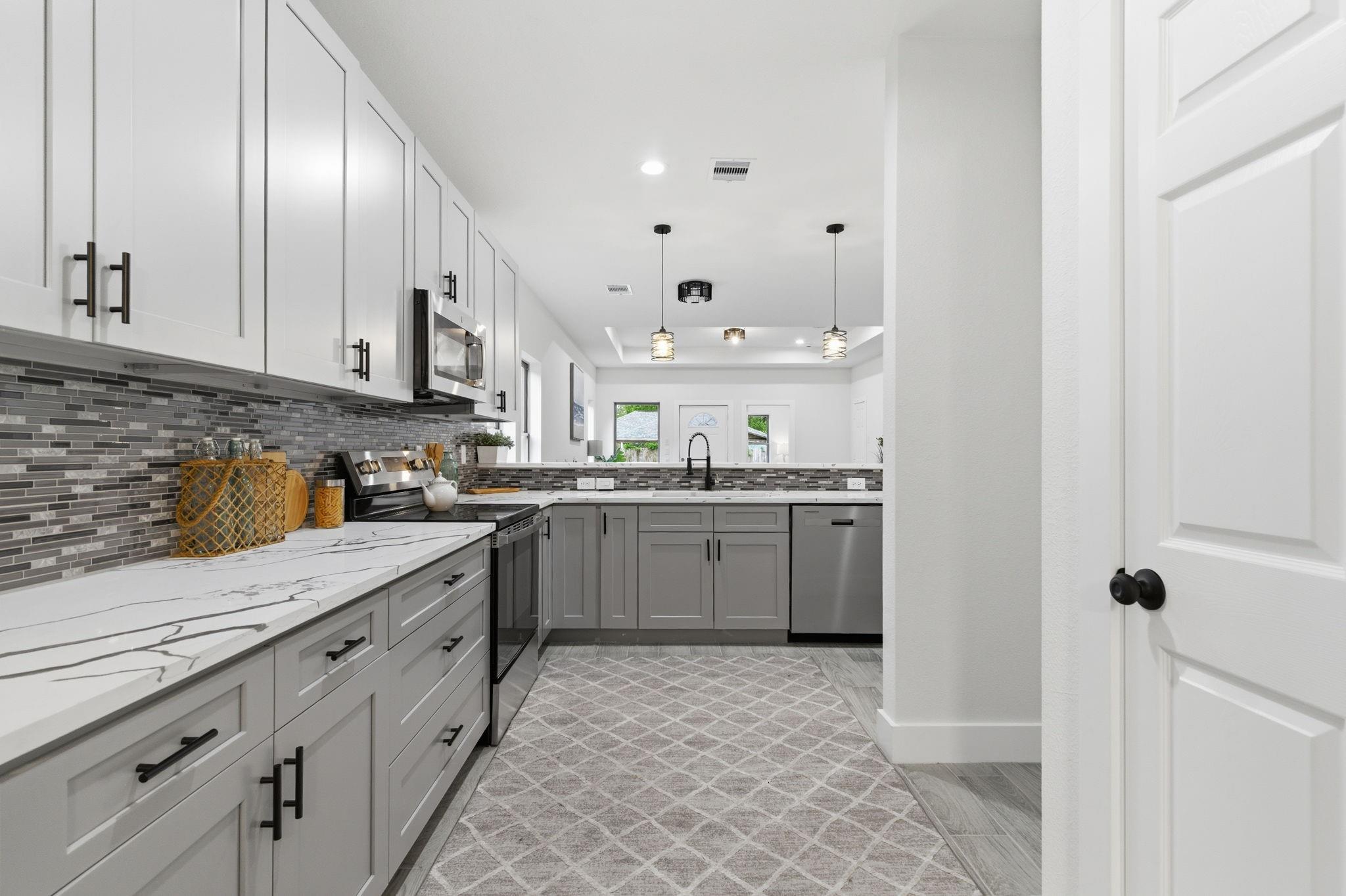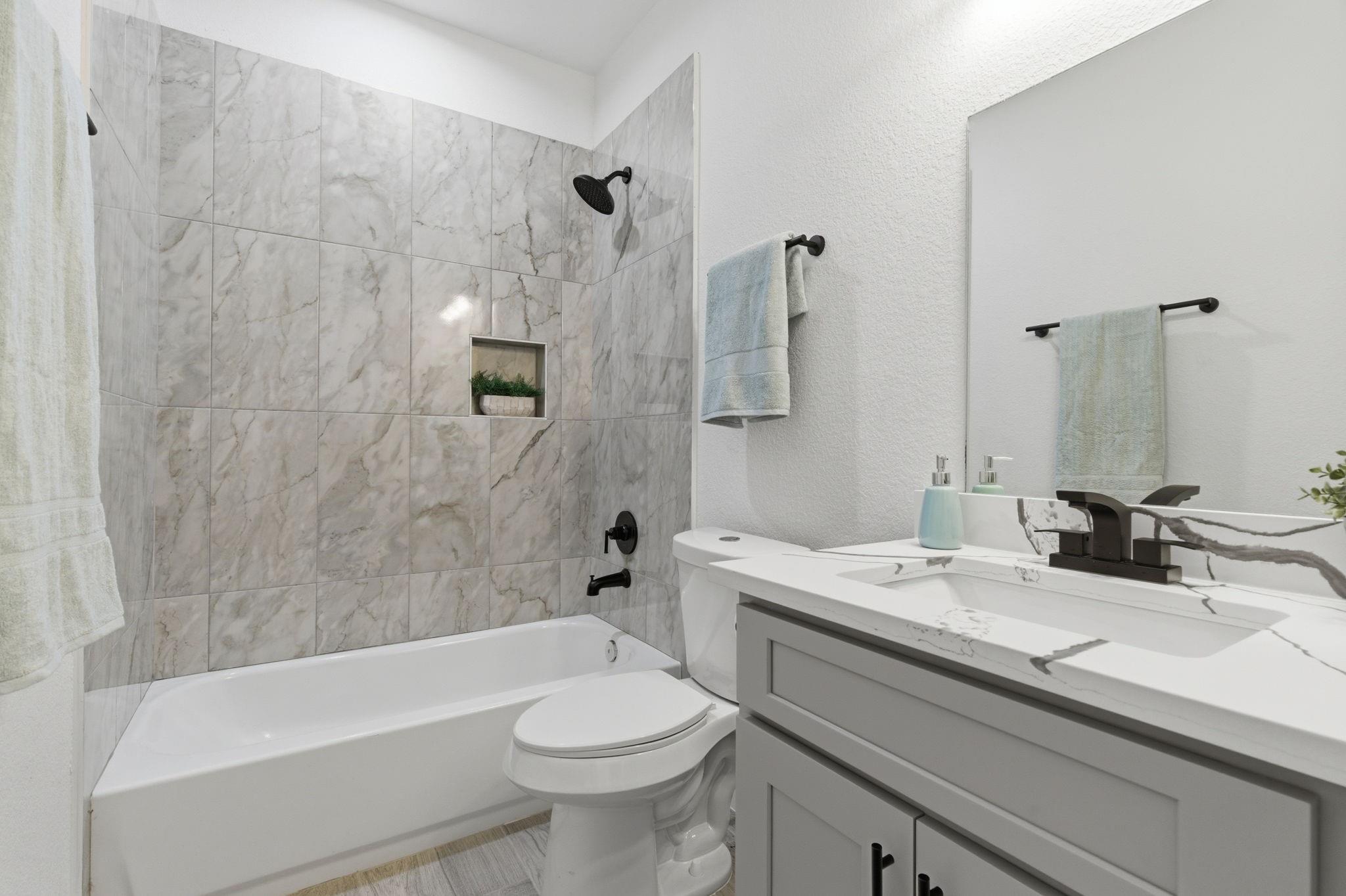 Welcome home! This move-in-ready new construction offers a thoughtfully designed 3-bedroom, 2-bath layout ideal for both everyday living and entertaining. The open-concept living spaces flow seamlessly while maintaining privacy for all bedrooms. The spacious primary suite features a large walk-in closet and a beautifully appointed en-suite bath with dual vanities, a soaking tub, and a modern glass-enclosed shower with tile surround. A conveniently located utility room and well-positioned secondary bedrooms add to the home’s functional design. Step outside to a covered patio overlooking a generous backyard—perfect for relaxing or entertaining. Schedule your private showing today!