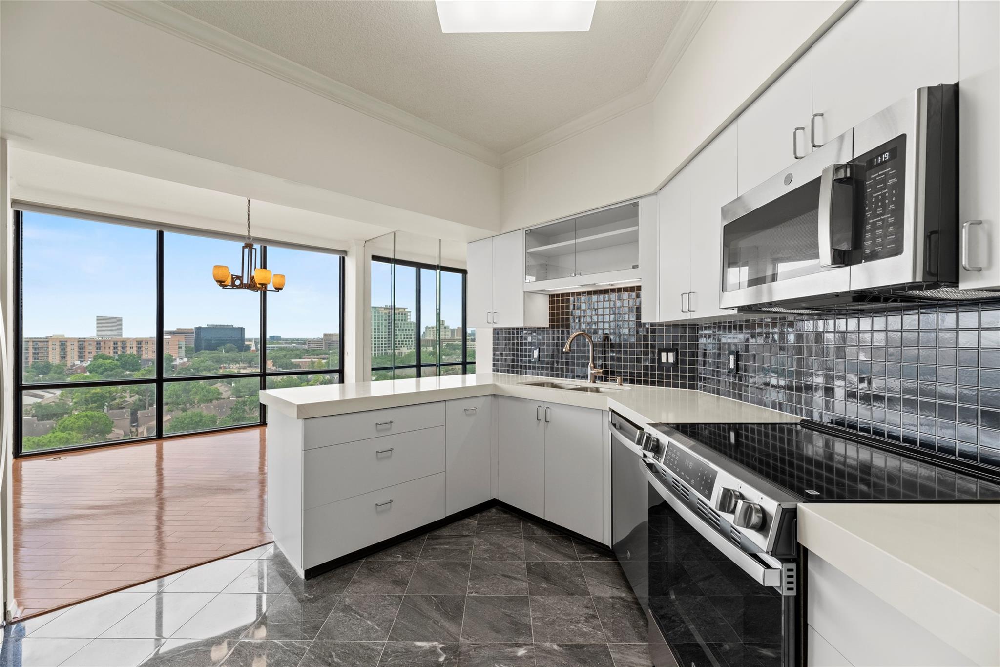 A very beautiful, renovated, ready to move in, 2-bedroom, 2-full bathroom condo with superb views on the 10th floor of the 13-floor St. Clair high-rise, professionally-managed building. A great location in the Tanglewood/Galleria neighborhood. Two balconies, 9-ft high ceiling, floor to ceiling tinted windows in all rooms with Hunter Douglas shades and blinds. Two-assigned parking spots in easy in/out 2-floor garage. 24/7/365 front desk security. Worry-free living whether it’s storms or flooding. Worry-free lock and leave to travel. A few minutes walk to stores and restaurants and to Bud Behring Park at the North end of the street intersecting Woodway Dr which includes a fenced dog park and children park. A few minutes walk to the beautiful, tree-lined Tanglewood trail which goes from Chimney Rock to San Felipe, whether for jogging, running, or relaxing walks. A few minutes drive to Uptown/Post Oak. A very hard to find comparable value high-rise living in the Tanglewood/Galleria area.