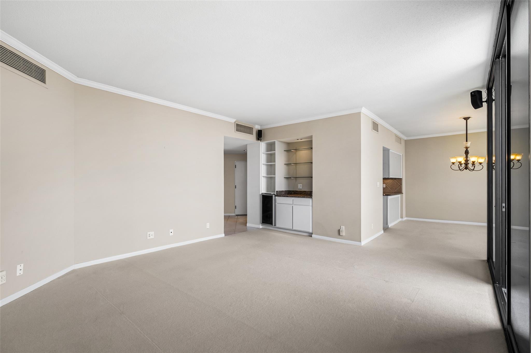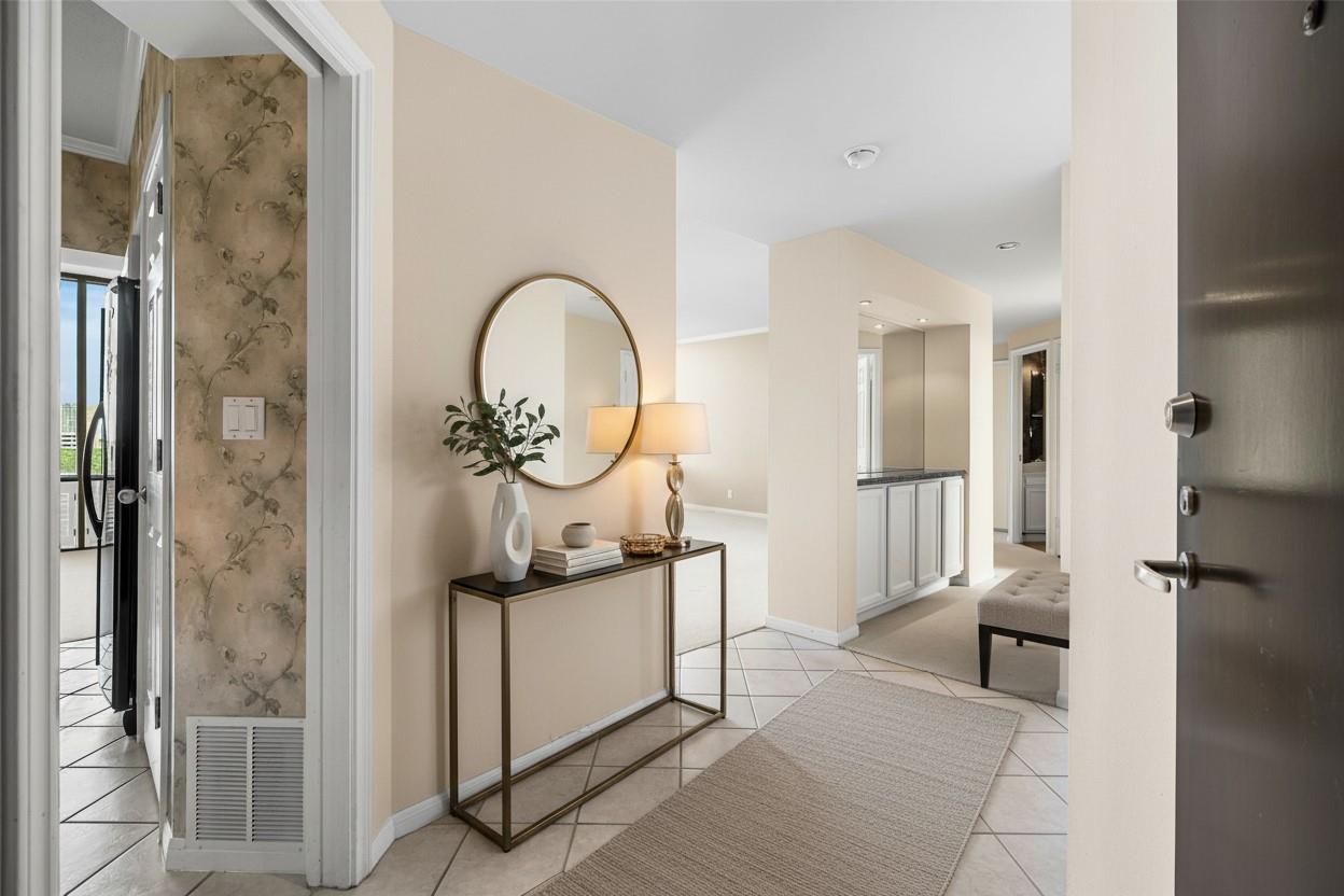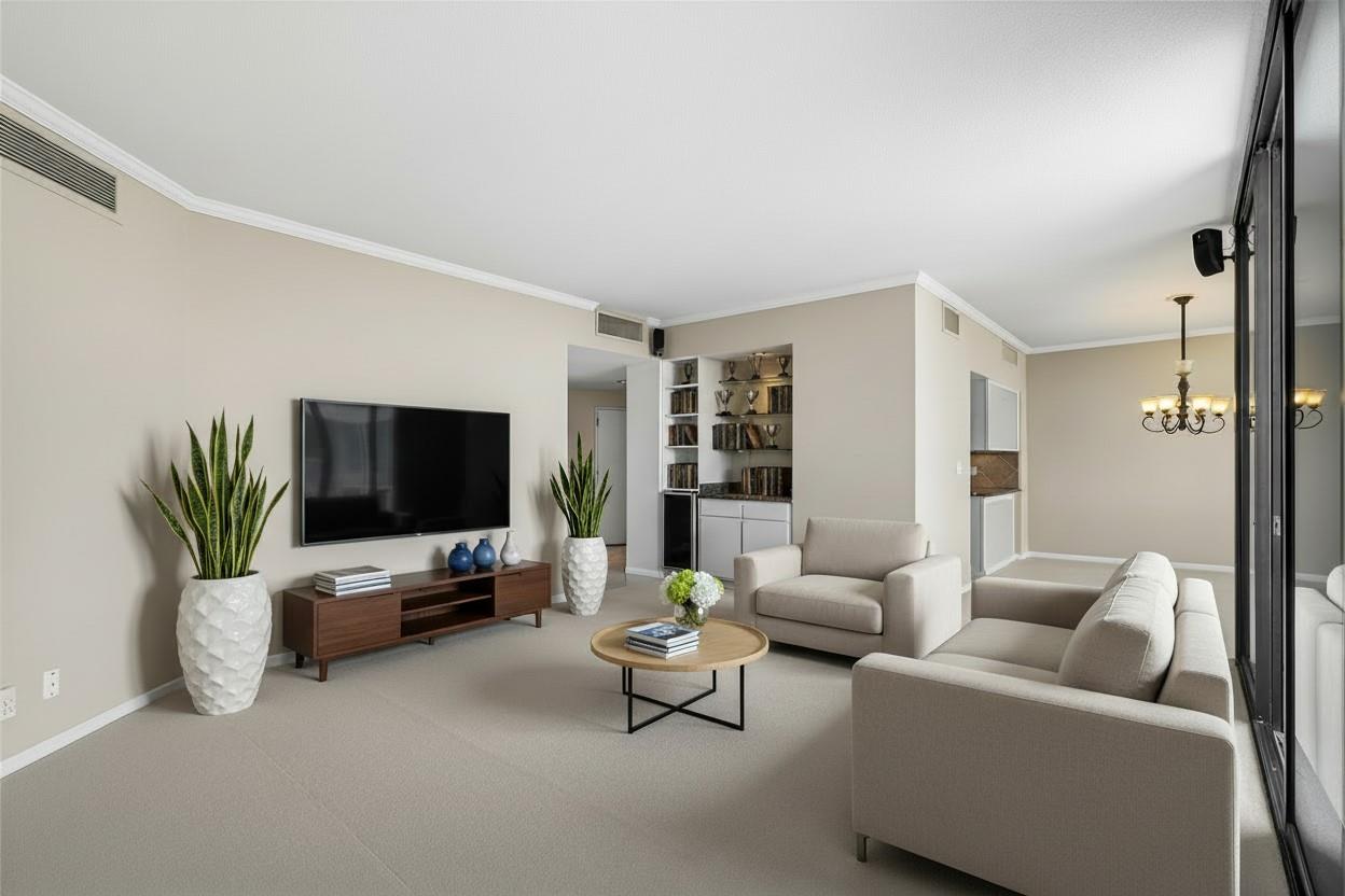 Enjoy breathtaking 10th-floor panoramic views from this beautifully maintained lock-N-leave residence at The St. Clair. This light-filled home offers 2 spacious BDRs and 2 full baths within an open, thoughtfully designed layout ideal for both everyday living & entertaining. The kitchen features granite countertops, upgraded appliances, and a wet bar with wine cooler, complemented by custom built-ins throughout. Elegant details include crown molding, accent lighting, neutral carpeting, tinted windows, and wiring for surround sound and computer networking. The updated primary bathroom adds modern comfort, while the nearly new HVAC provides efficiency and peace of mind. Residents benefit from low monthly maintenance fees and 2 assigned parking spaces. Amenities include: 24-hour concierge, tennis courts, resort-style pool, fitness center, renovated party room with catering kitchen, climate-controlled storage, and on-site dry cleaning. Be sure to view the attached video of the property.