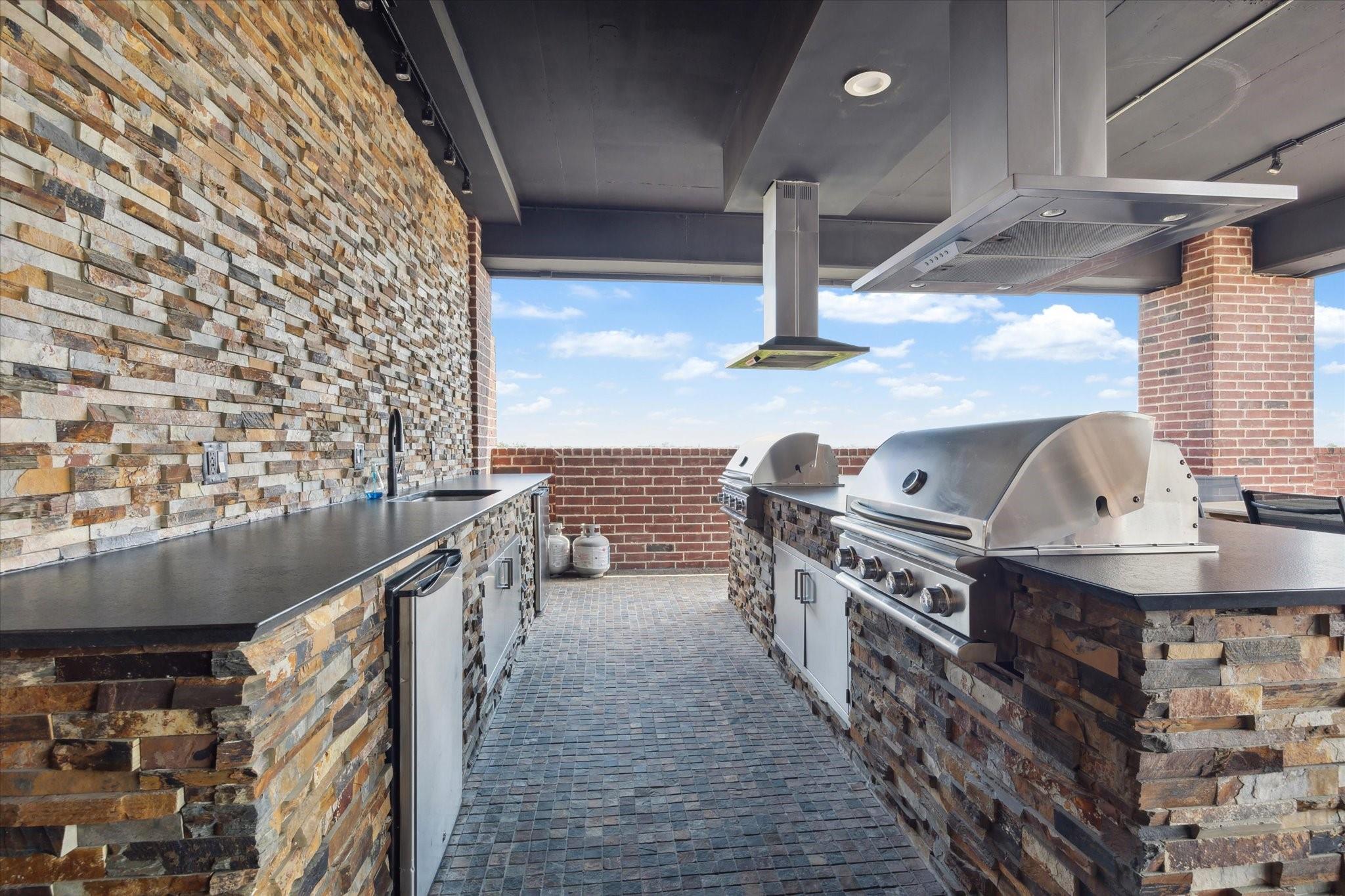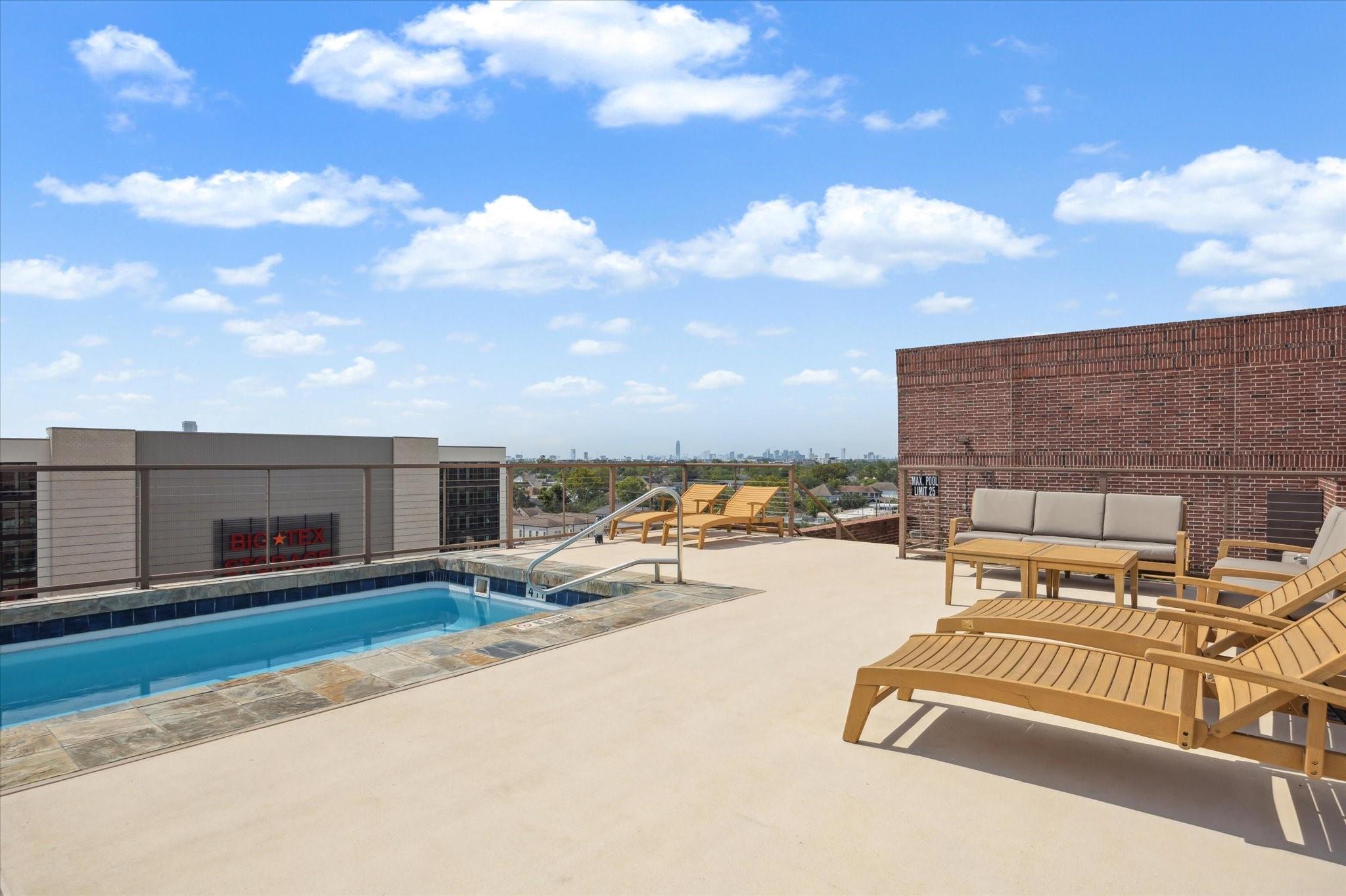 This exclusive (one of only 20 units) mid-rise condo on the 5th floor offers a stunning view of the Downtown Skyline. With 14’ ceilings, custom closets featuring Programme Martin, and a spa-like primary bathroom, this residence is perfect for luxurious living. Enjoy access to a rooftop heated pool, hot tub, and outdoor kitchen and dining area with phenomenal views of downtown overlooking the treed canopy of the Heights. The property includes 2 assigned garage parking spaces, controlled entry, and a private balcony. Additional amenities include a large safe, spacious in-unit laundry room, island with breakfast bar and a secondary service entrance perfect for entertaining. With many nearby restaurants, coffee shops, and the Heights Hike and Bike Trail, this home offers comfort and convenience. All furniture can stay.
