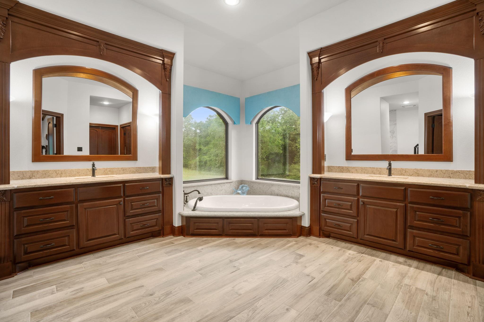 ExteriorFoundation:SlabPrivate Pool:YesPrivate Pool Desc:In GroundLot Description:Cleared,WoodedWater Sewer:Septic Tank,Water District,WellRoad Surface:Asphalt,Gravel,OtherArea Pool:YesGarage Apartment:YesTree Description:Partial Coverage
