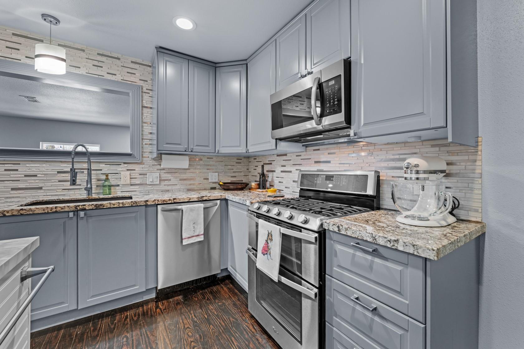 InteriorFloors:WoodCountertop:GraniteBathroom Description:Full Secondary Bathroom Down,Primary Bath: Double Sinks,Primary Bath: Shower Only,Secondary Bath(s): Tub/Shower Combo,Vanity AreaBedroom Desc:All Bedrooms Down,Primary Bed - 1st Floor,Walk-In ClosetKitchen Desc:Island w/o Cooktop,Kitchen open to Family Room,Pantry,Soft Closing Cabinets,Soft Closing DrawersRoom Description:Entry,Family Room,Formal Dining,Kitchen/Dining Combo,Living Area - 1st Floor,Utility Room in HouseHeating:Central GasCooling:Central ElectricConnections:Electric Dryer Connections,Gas Dryer Connections,Washer ConnectionsDishwasher:YesDisposal:YesMicrowave:YesRange:Gas RangeOven:Gas OvenEnergy Feature:Ceiling Fans,Digital Program Thermostat,High-Efficiency HVAC,Insulated/Low-E windowsInterior:Alarm System - Owned,Fire/Smoke Alarm,Formal Entry/Foyer,High Ceiling,Window Coverings