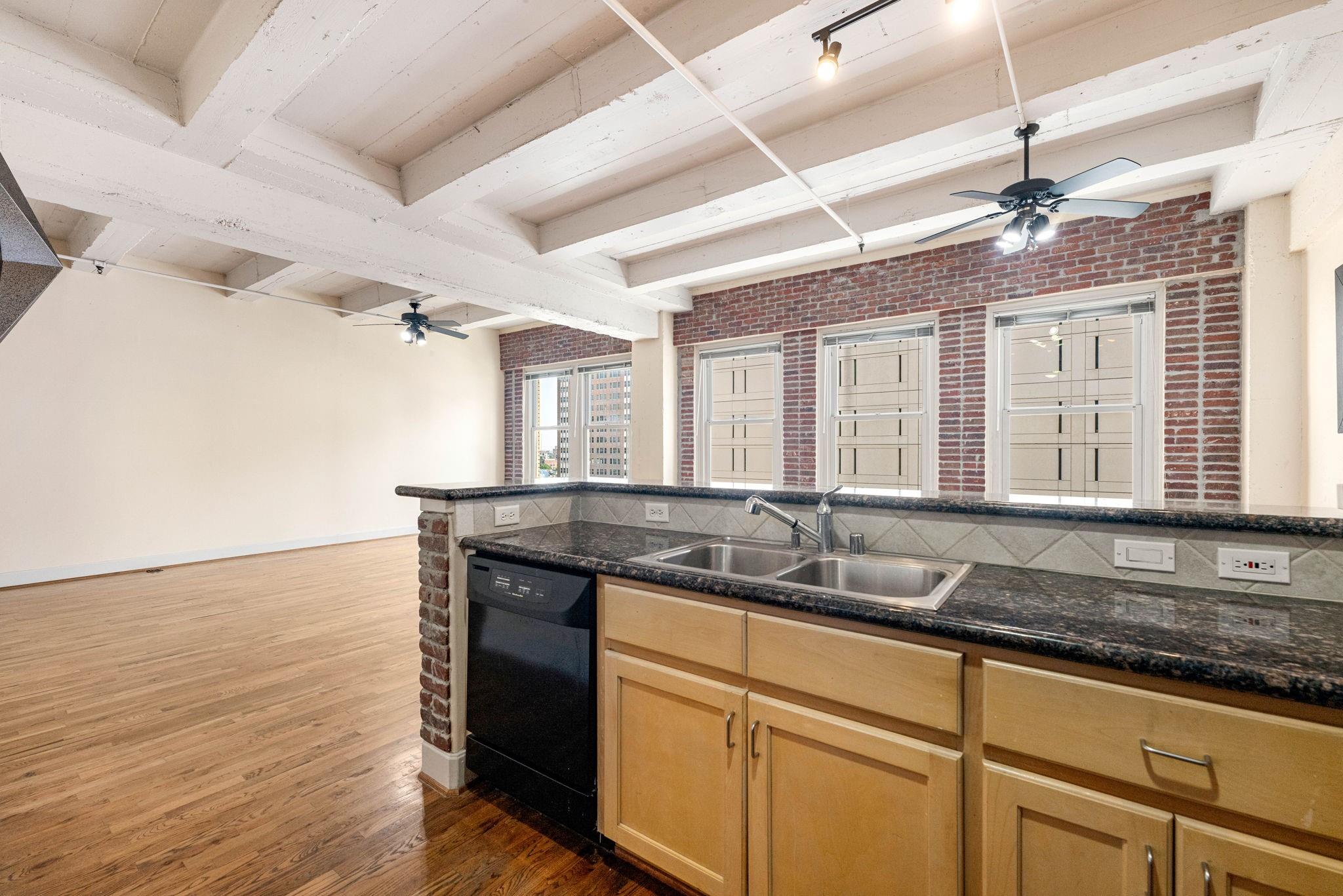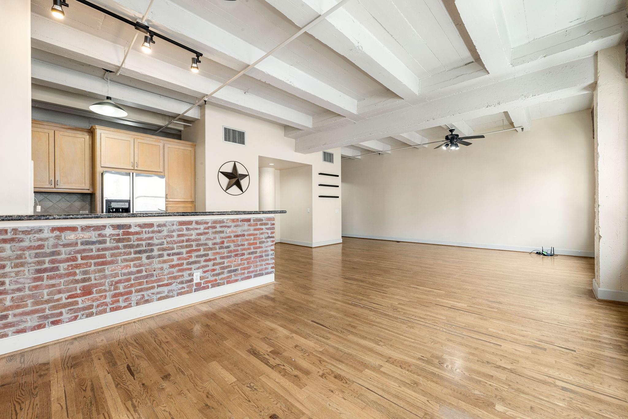 ALL UTILITIES INCLUDED INCLUDING WIFI! Historic building! Experience urban living at its finest in this stunning 7th-floor unit at Keystone Lofts, right in the heart of Downtown Houston. With soaring ceilings, exposed concrete beams, and solid oak hardwood floors, this loft blends industrial charm with modern comfort. The spacious 1-bed, 1-bath floorplan offers a bright, open living/dining space and a stylish kitchen with granite countertops, tankless water heater, and natural cabinetry. The oversized bathroom features dual access and a luxurious tile surround soaking tub, while the bedroom boasts a huge walk-in closet. Enjoy abundant natural light, included appliances (washer/dryer, refrigerator), and one assigned garage parking spot. Just steps from Minute Maid Park, The Post, MetroRail, Discovery Green, minute made park, restaurants, theater and entertainment. HOA covers electricity, water, sewer, trash, and Wi-Fi making downtown living hassle-free, affordable and effortless!