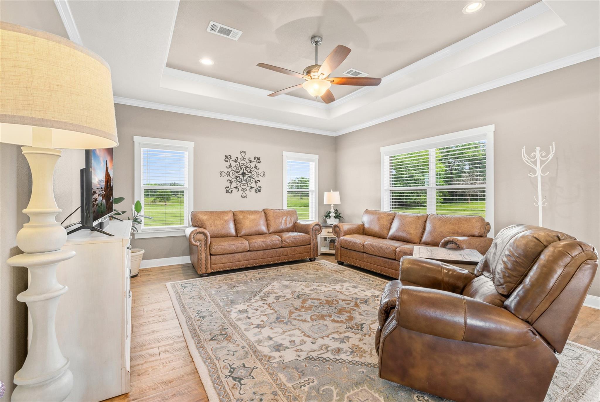 Welcome to your private sanctuary nestled in the heart of nature. This immaculate three bedroom, two bathroom home is situated on a sprawling 12.93 acres of picturesque wooded land, offering an opportunity for peaceful country living and wildlife. Step inside this beautiful home, where natural light floods the entire home, creating an inviting atmosphere. The heart of the home is the stylish kitchen with generous counter space, a cozy dining area and the spacious layout is perfect for family gatherings or entertaining friends. While all three bedrooms have blackout cellular shades, have peace of mind your guests can sleep any time of the day. The expansive fenced backyard is a safe haven for children and pets to play freely. Enjoy the covered front and back porches for your morning coffee while watching the deer graze nearby! The property features a charming cabin perfect for a home office or visiting guests. The wildlife exemption is a bonus to lowering your taxes!