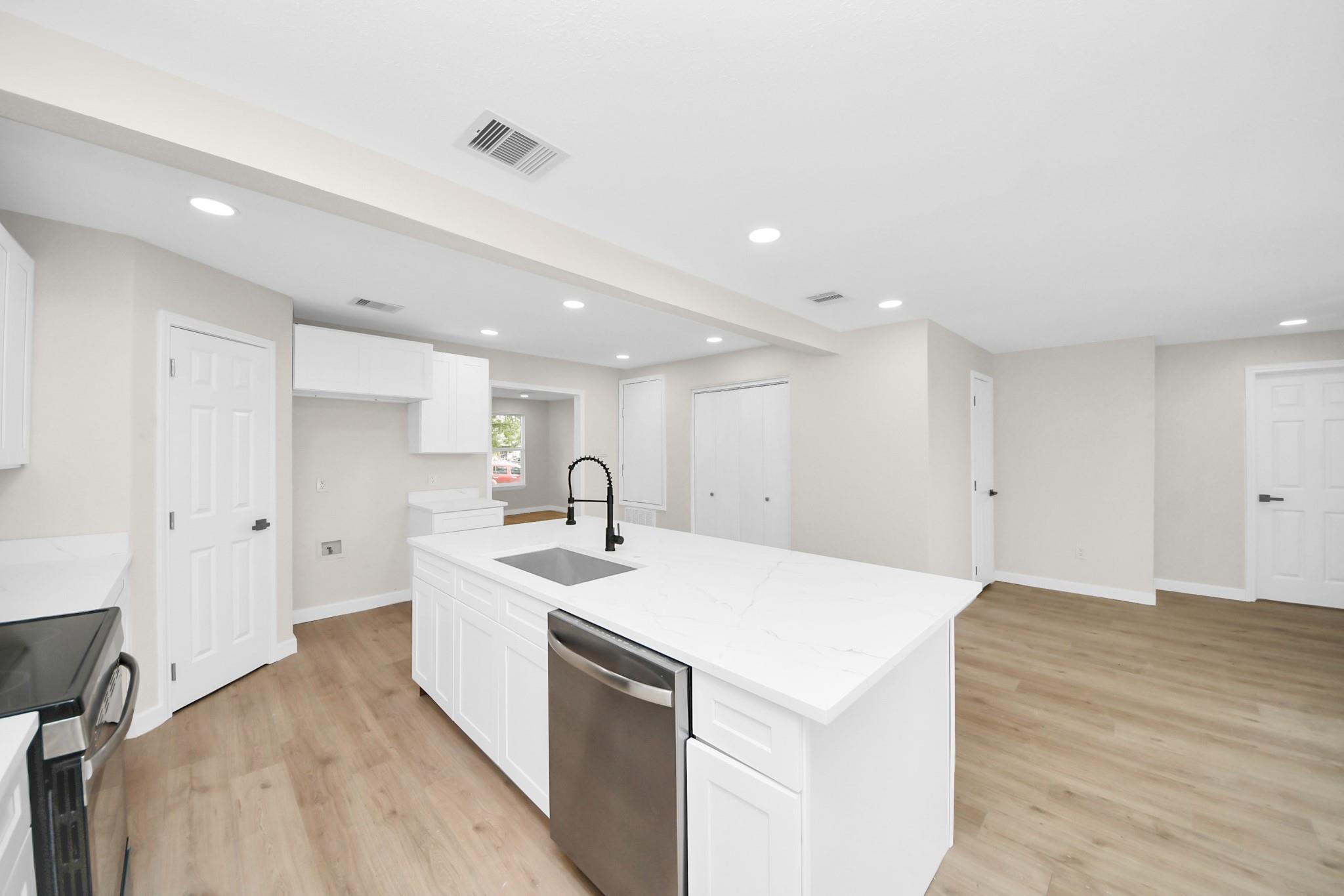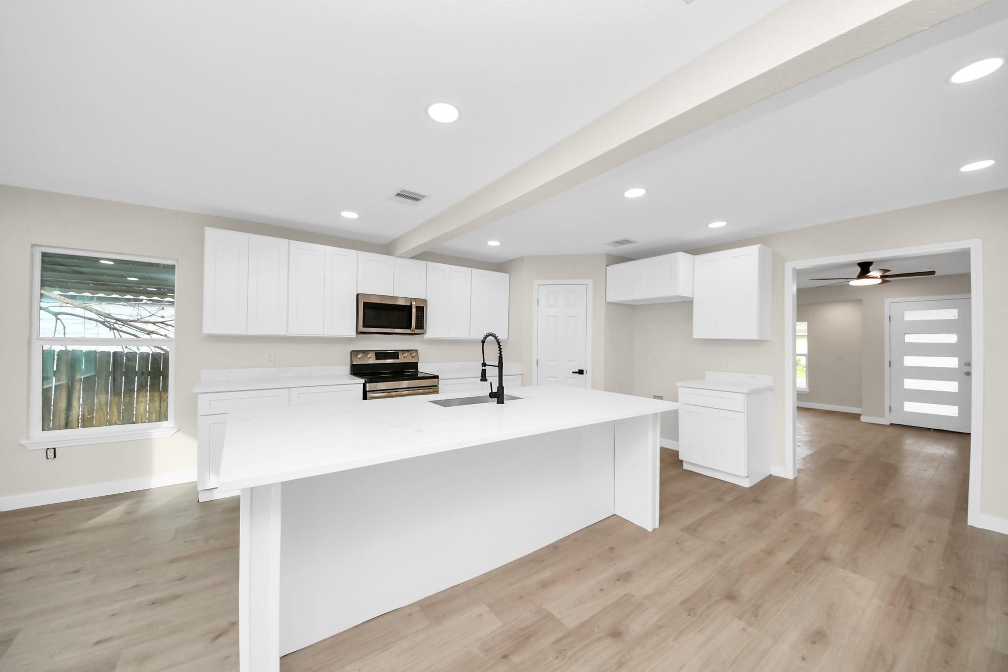 Beautifully remodeled multigenerational 4 bedroom 2 bathroom property with a 1 bedroom 1 bathroom private suite (ADU). Unique property ready for its new owners. Per appraisal main house has 1,672 sqft and (ADU) has 337 sqft. This gem is like a brand new property. It features a new Roof (2026), new siding, new interior and exterior paint and recessed lights. HVAC (2026), Electrical (2026), Energy efficient windows (2026), plumbing (2026), vinyl plank flooring (2026), new backsplash, oversized kitchen island, incredible Quartz countertops and completely remodeled bedrooms and bathrooms. The house has its private laundry room, and the private suite (ADU) has its private laundry room. Benefits include the ability to generate extra income with the private suite (ADU) and its also ideal for adult children returning home or visitors. Two separate meters. Schedule your showing today!!!