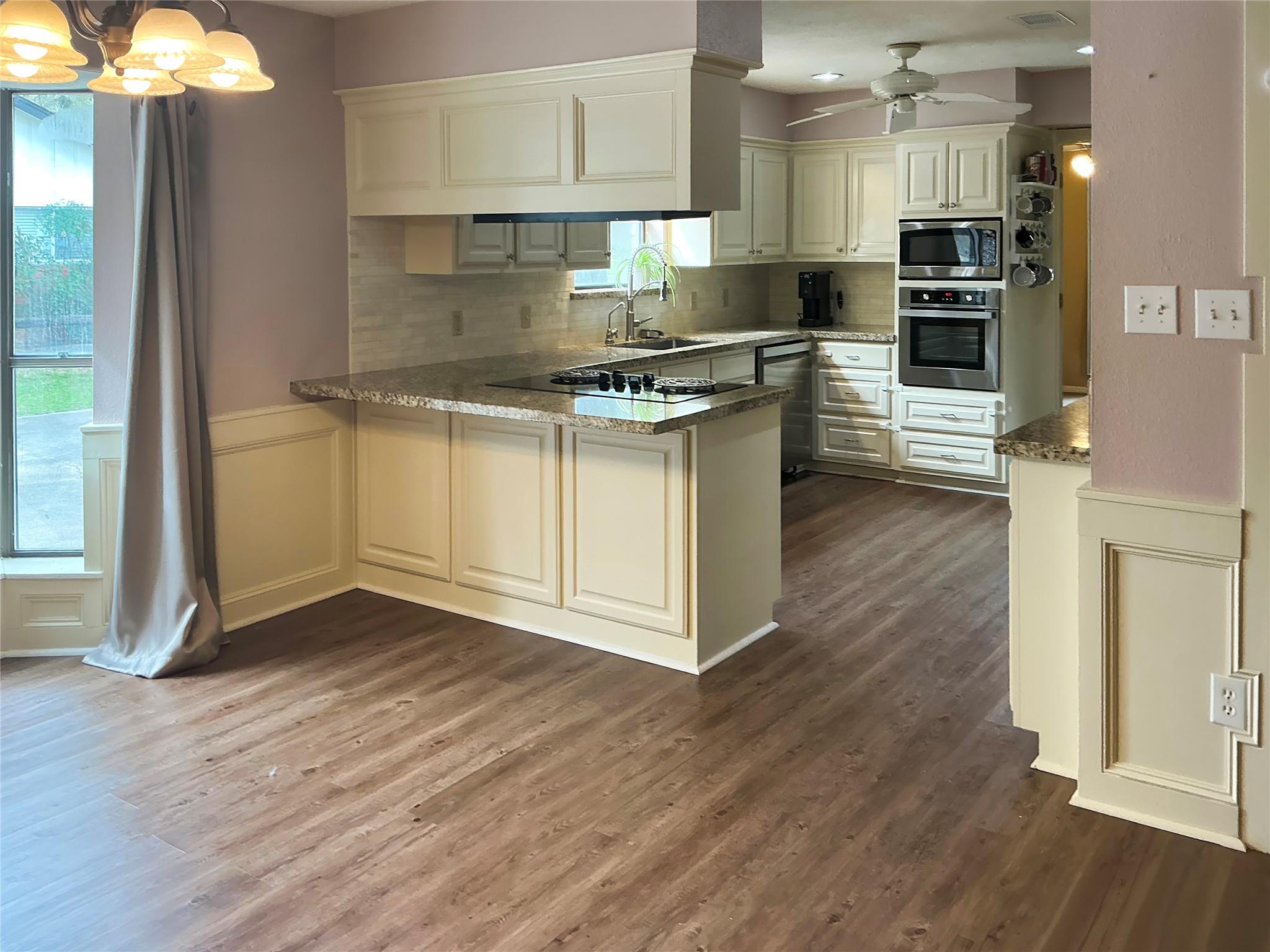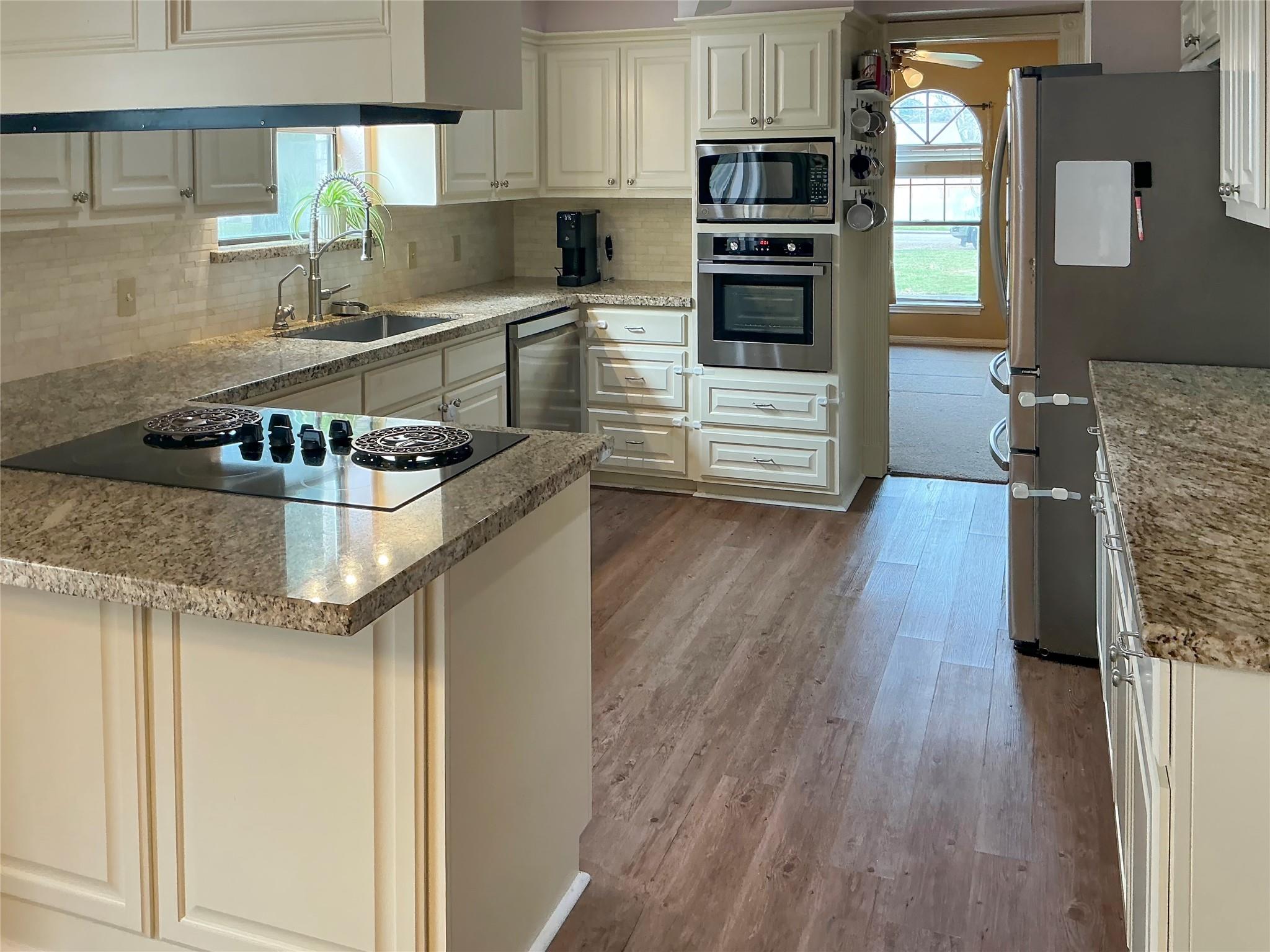 InteriorFireplace:1/Wood Burning FireplaceFloors:Laminate,TileCountertop:graniteBathroom Description:Primary Bath: Double Sinks,Primary Bath: Shower Only,Secondary Bath(s): Tub/Shower ComboBedroom Desc:All Bedrooms DownKitchen Desc:Breakfast Bar,PantryRoom Description:Entry,Family Room,Formal Dining,Home Office/Study,Living Area - 1st Floor,Utility Room in HouseHeating:Central GasCooling:Central ElectricConnections:Washer ConnectionsDishwasher:YesMicrowave:YesRange:Electric CooktopOven:Single OvenInterior:Vaulted Ceiling,Water Softener - Owned