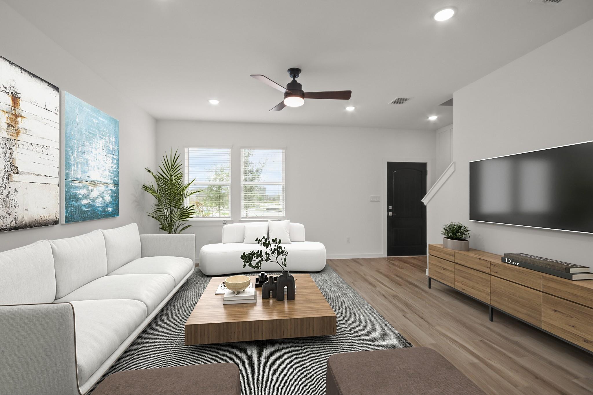 Move In Ready! Aspire at River Ranch Trails is a master-planned community featuring Looks, a stylish collection of interiors professionally curated by our design team. Charming two-story Honeysuckle II home in our Loft Look, featuring 3 bedrooms, 2.5 baths and 2 car attached garage. Welcoming foyer with feature wall. Stunning kitchen with dark stain cabinets, Cararra Miksa quartz countertops and stylish floating shelves. Cozy great room and dining area. Pristine primary suite with feature wall. Spa-like primary bath with dual sinks, quartz countertop, and walk-in closet. Versatile loft upstairs, perfect for extra living space. Gorgeous covered patio perfect for outdoor activities. Located in Dayton off HWY 146 with easy access to I-10 and HWY 99. Close to shopping and dining in Dayton and Mont Belvieu. Resort-style living with Angel Lagoon: Crystal-clear waters, beaches, and more! Offered by: K. Hovnanian of Houston II, L.L.C.