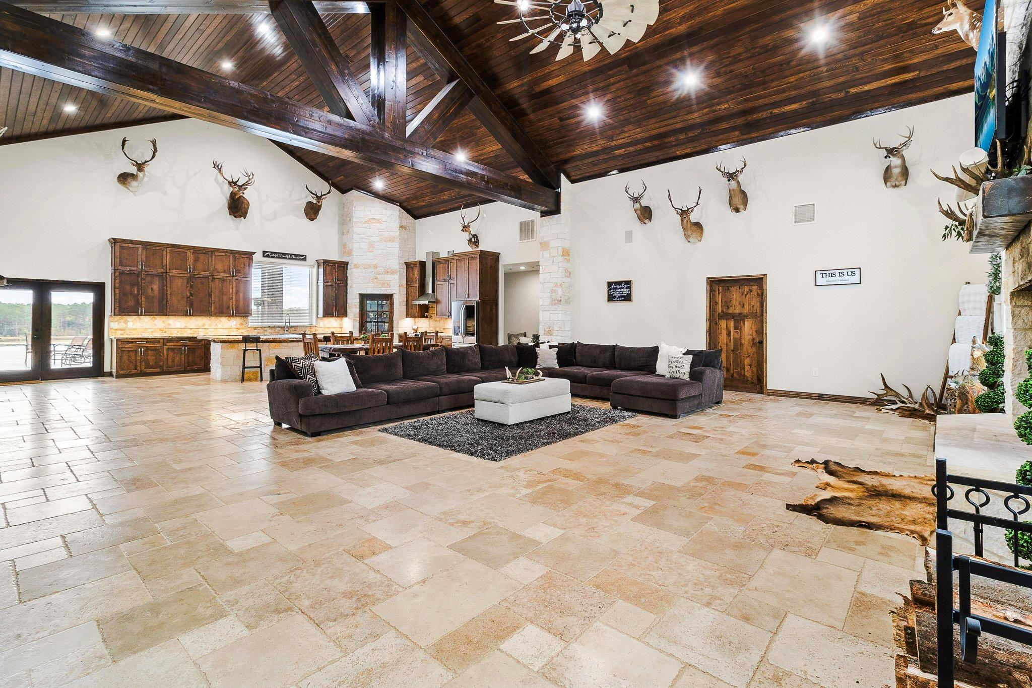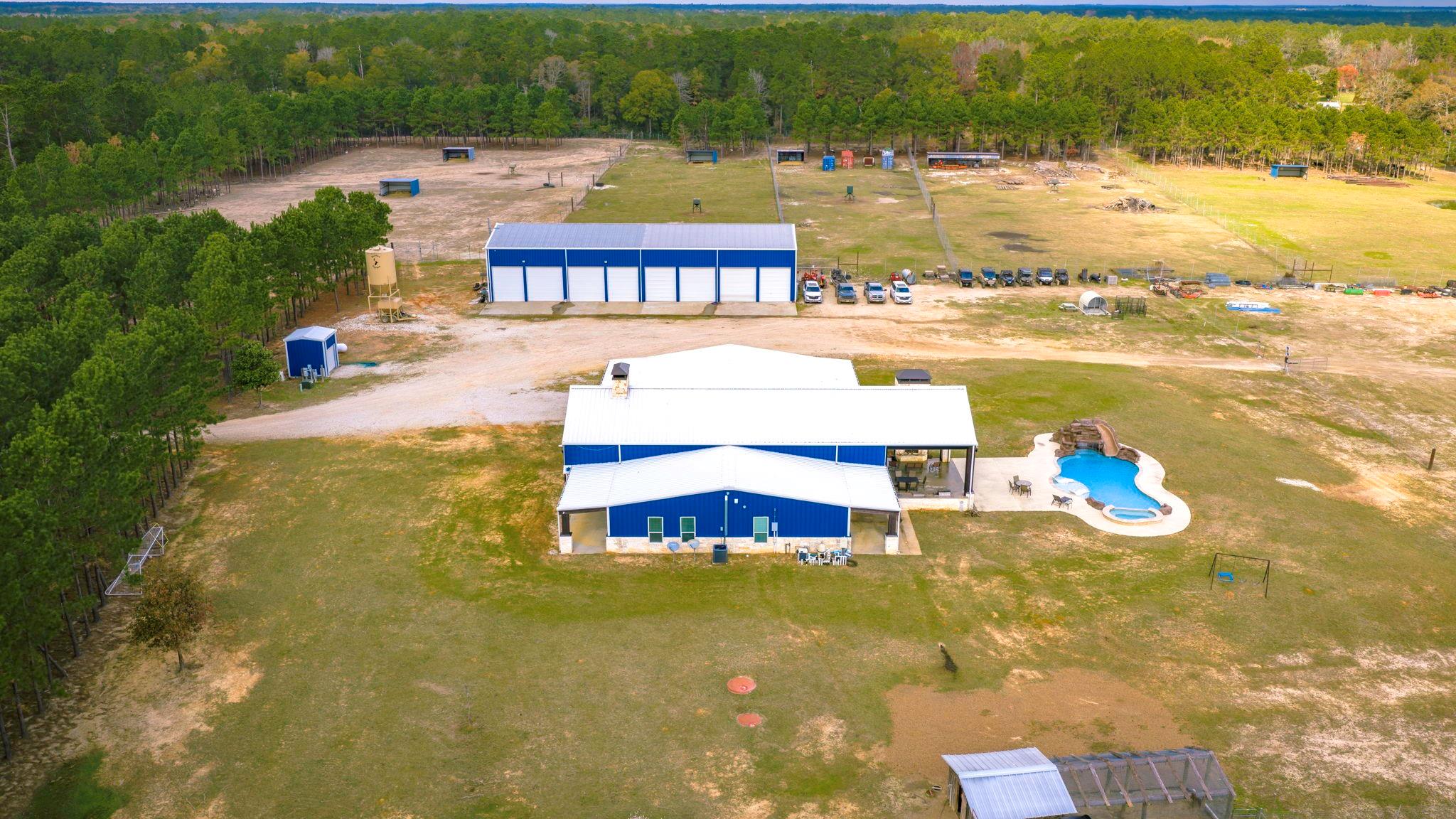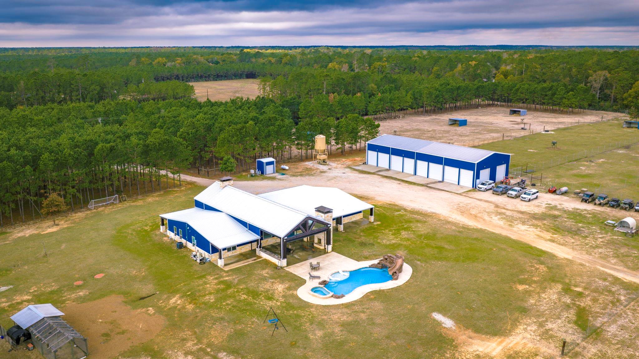 Set on 50 acres, this high-fenced ranch offers a rare combination of privacy, functionality, and views. The property is home to exotic animals and features a 5-bedroom, 5-bath residence with numerous upgrades throughout. Enjoy peaceful pasture views from the back porch/outdoor kitchen along with an in-ground pool and hot tub designed for outdoor living. A 50x120 shop with 10 bays and a full bathroom provides ample space for equipment, hobbies, or business use. The home is equipped with a full Generac generator hookup for added peace of mind. Conveniently located just 3 miles from highly sought after Big Sandy ISD, approximately 30 minutes to downtown Livingston, and about 20 minutes from Naskila Casino, this property offers both seclusion and accessibility.