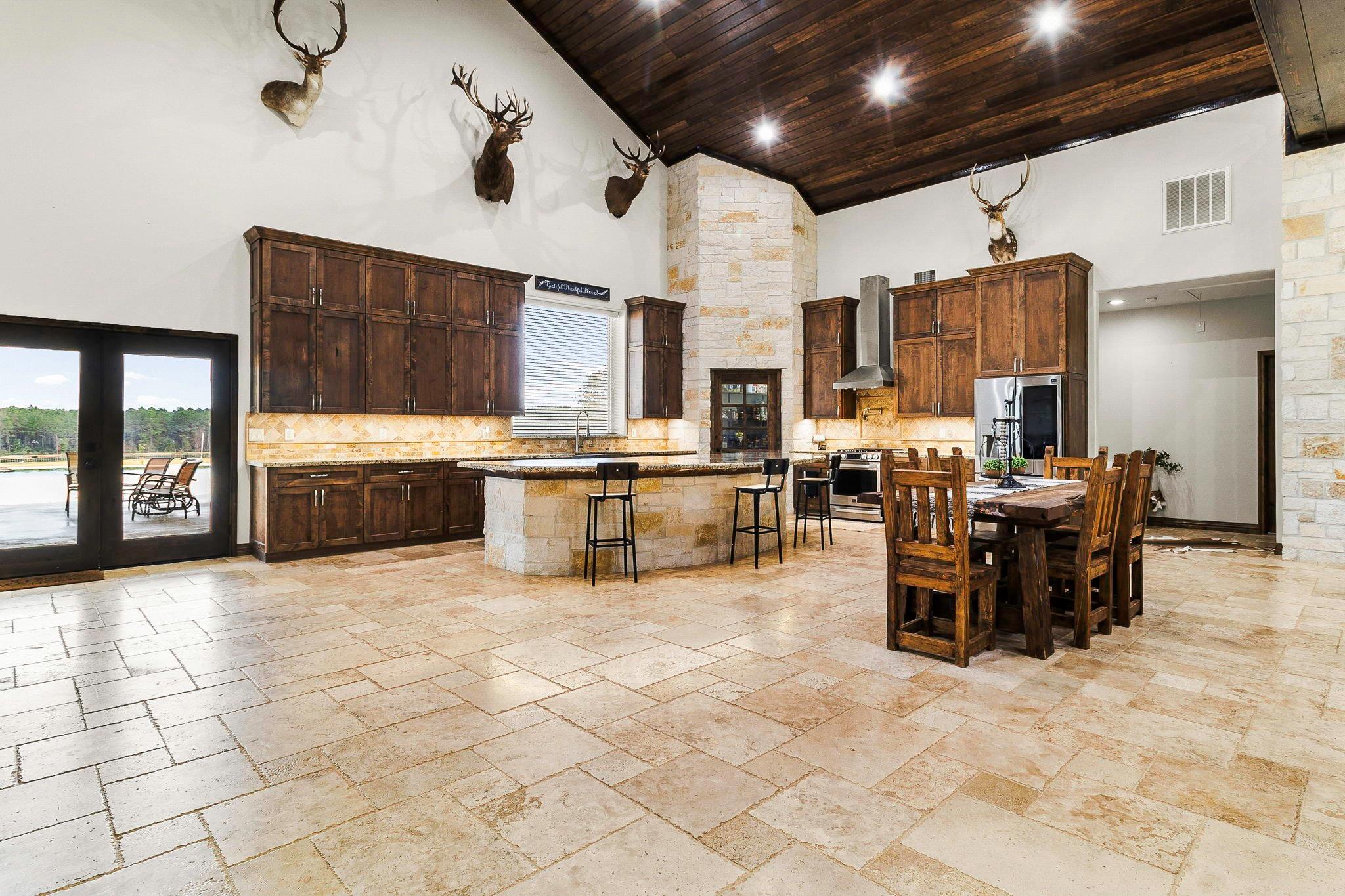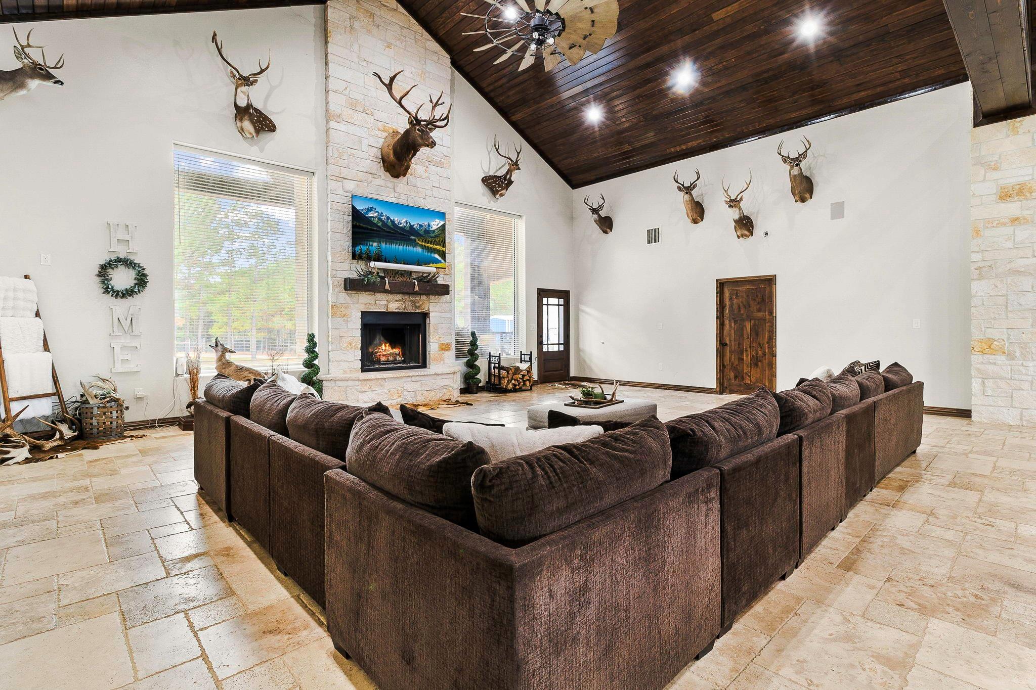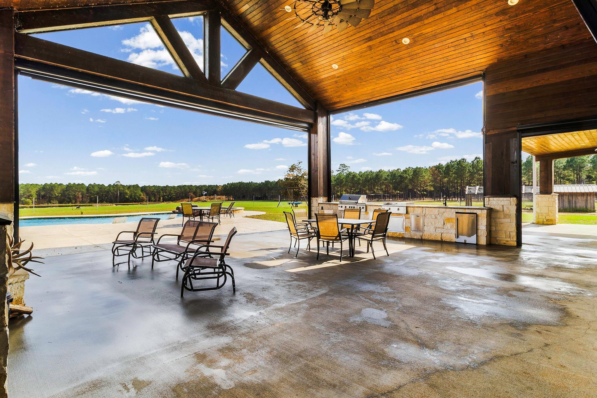 Set on 50 acres, this high-fenced ranch offers a rare combination of privacy, functionality, and views. The property is home to exotic animals and features a 5-bedroom, 5-bath residence with numerous upgrades throughout. Enjoy peaceful pasture views from the back porch/outdoor kitchen along with an in-ground pool and hot tub designed for outdoor living. A 50x120 shop with 10 bays and a full bathroom provides ample space for equipment, hobbies, or business use. The home is equipped with a full Generac generator hookup for added peace of mind. Conveniently located just 3 miles from highly sought after Big Sandy ISD, approximately 30 minutes to downtown Livingston, and about 20 minutes from Naskila Casino, this property offers both seclusion and accessibility.