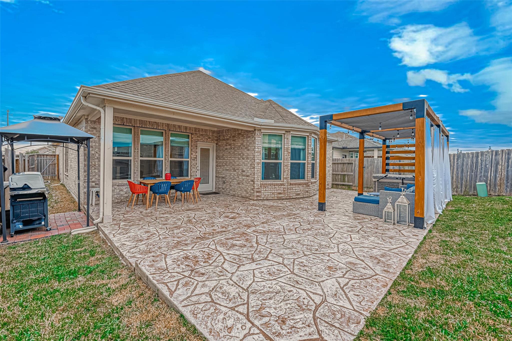 Beautiful well maintained One Story home located in the calm and quiet place of Talavera subdivision! This home features 4 bedroom, 2 bath and relaxing backyard with a Hot Tub! An open floor concept with large windows giving lots of natural light. Spacious Kitchen with Quartz Countertops and Stainless Steel Appliances. Large primary Bedroom and primary bathroom with walk-in shower with glass panel. Ceramic floor throughout the house. Enjoy the convenience of tankless water heater and sprinkler system .Zoned to acclaimed Lamar ISD schools. Located in a vibrant community with playgrounds, splash pad, walking trails, lakes, recreation center and community pool. With walking distance to HEB, shoppings, dining, and entertainment. Minutes away from Westpark Tollway, Grand Parkway and I-10. This is an Energy Efficient home. READY FOR INMEDIATE MOVE-IN!!! DON'T MISS IT