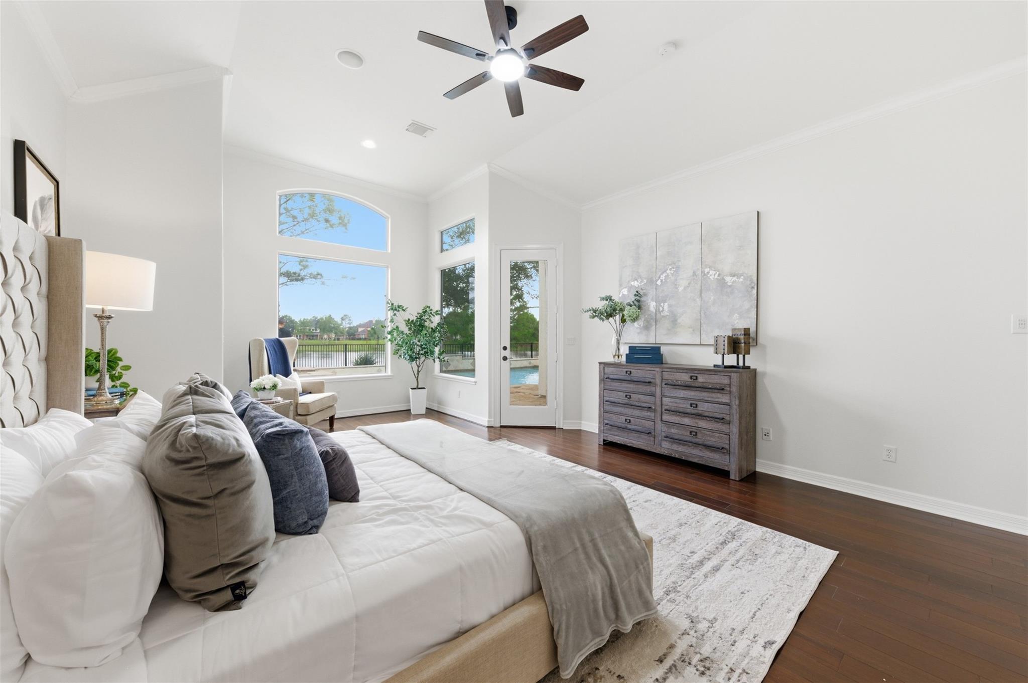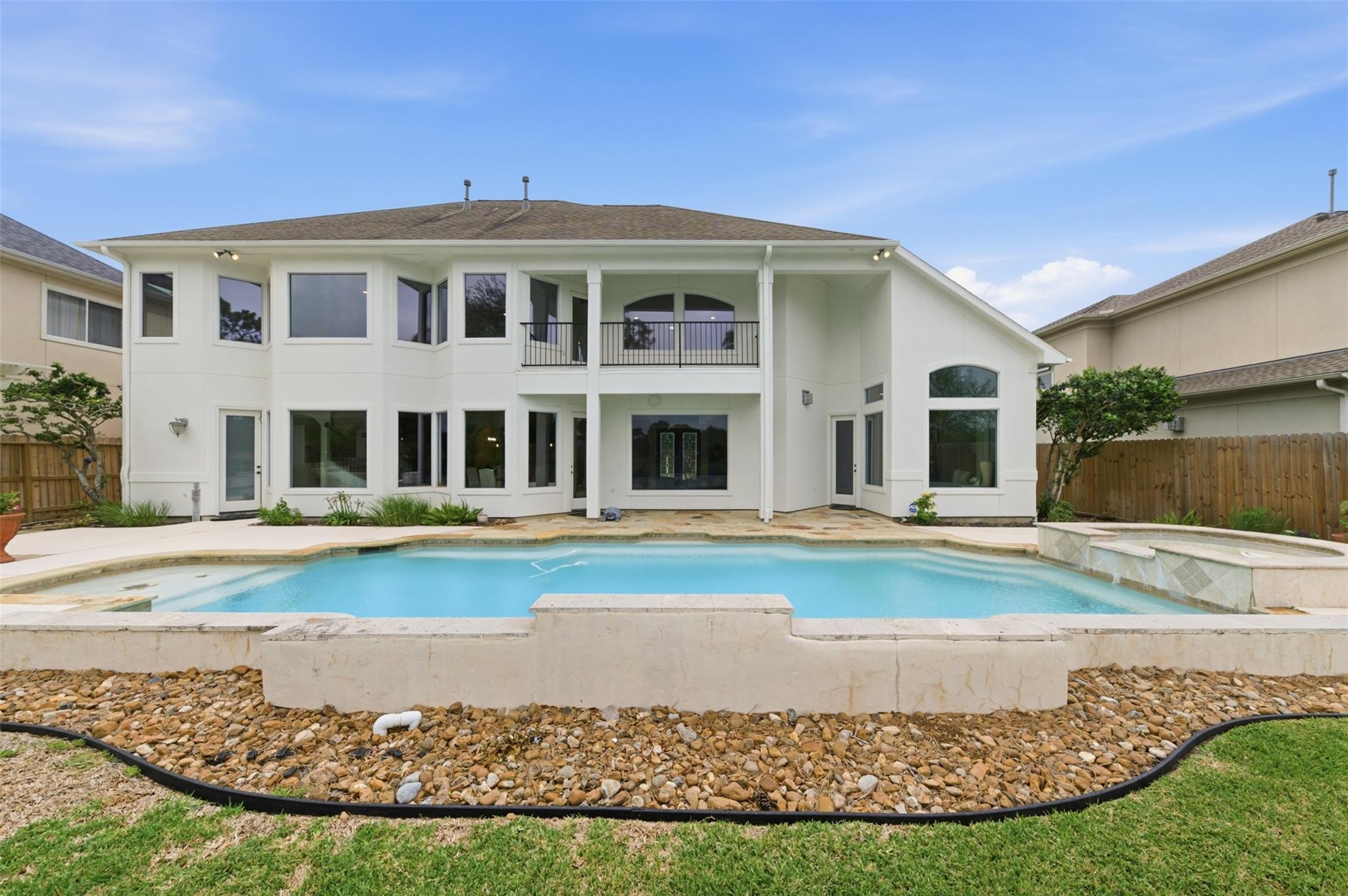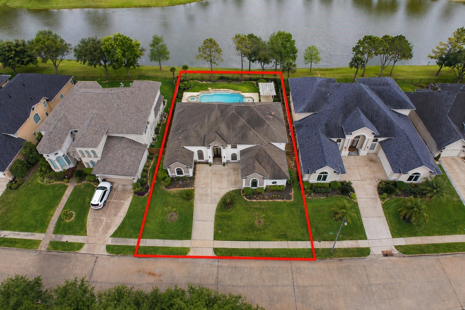 Super rare opportunity in one of Shadow Creek Ranch’s most sought-after enclaves, The Island - featuring beautiful semi-custom homes on large lakefront estate lots. Homes don't come on the market in here very often. This elegant stucco residence offers soaring ceilings, abundant natural light and an open-concept layout ideal for entertaining. The study showcases floor-to-ceiling built-ins, while the flexible plan includes a rare first-floor secondary bedroom with full en-suite bath. The primary suite features a sitting area, backyard access and serene views. Step outside to your private oasis and relax in the pool or hottub while enjoying the breathtaking TX sunset over the lake. Upstairs, you will find a game room, two bedrooms connected by a jack-n-jill bathroom and aother flex-room that can be used as a bedroom or a number of other uses. The upstairs balcony also offers yet another tranquil space. Move-in ready with easy access to highways, shopping, dining, and top-rated schools.