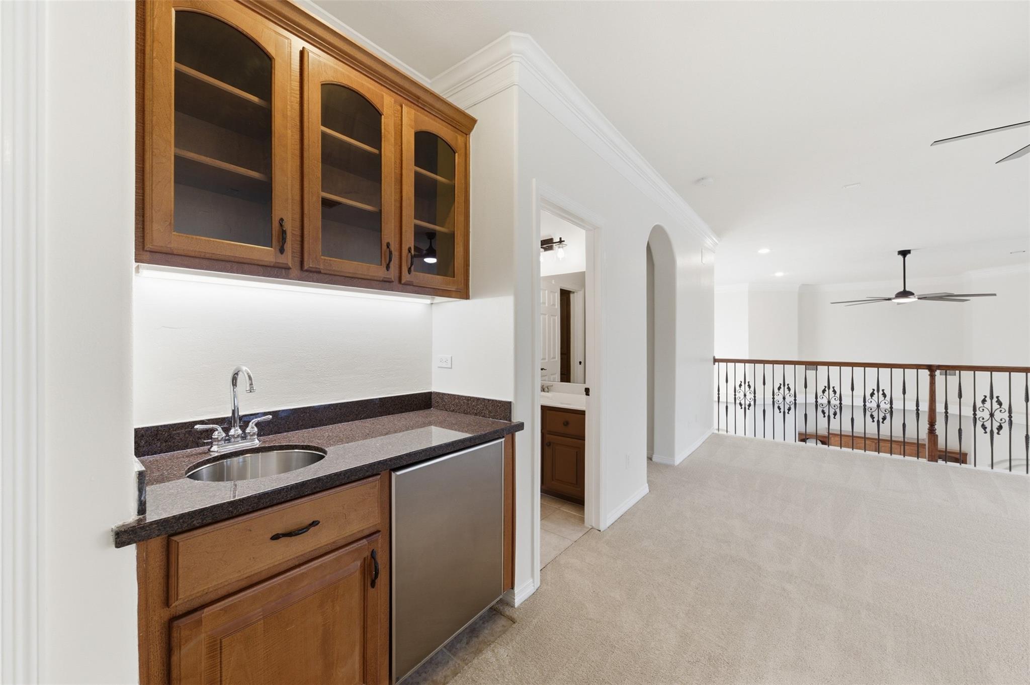 InteriorFireplace:1/Gaslog FireplaceFloors:Carpet,Tile,WoodCountertop:GraniteBathroom Description:Full Secondary Bathroom Down,Half Bath,Primary Bath: Jetted Tub,Primary Bath: Separate Shower,Primary Bath: Soaking Tub,Secondary Bath(s): Tub/Shower ComboBedroom Desc:1 Bedroom Down - Not Primary BR,3 Bedrooms Up,En-Suite Bath,Primary Bed - 1st Floor,Walk-In ClosetKitchen Desc:Breakfast Bar,Island w/o Cooktop,Kitchen open to Family Room,Pantry,Under Cabinet Lighting,Walk-in PantryRoom Description:Breakfast Room,Butlers Pantry,Entry,Family Room,Formal Dining,Gameroom Up,Home Office/Study,Living Area - 1st Floor,Utility Room in HouseHeating:Central GasCooling:Central ElectricConnections:Electric Dryer Connections,Gas Dryer Connections,Washer ConnectionsDishwasher:YesDisposal:YesCompactor:NoMicrowave:YesRange:Gas CooktopOven:Double Oven,Electric OvenIce Maker:NoEnergy Feature:Attic Vents,Ceiling Fans,Digital Program Thermostat,North/South ExposureInterior:Alarm System - Owned,Balcony,Crown Molding,Dryer Included,Fire/Smoke Alarm,Formal Entry/Foyer,High Ceiling,Refrigerator Included,Spa/Hot Tub,Washer Included