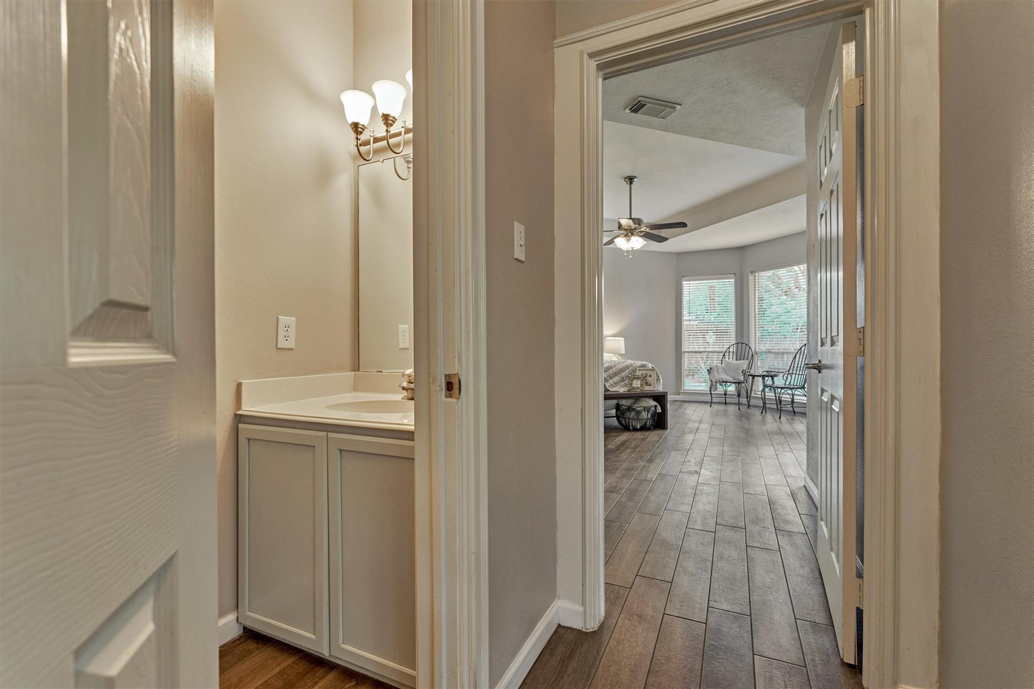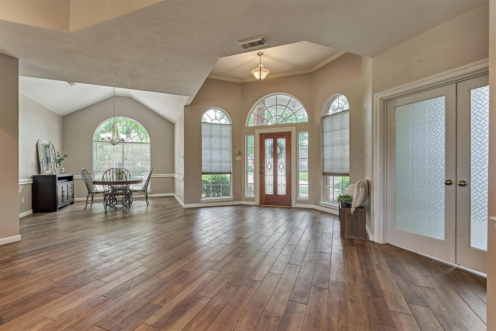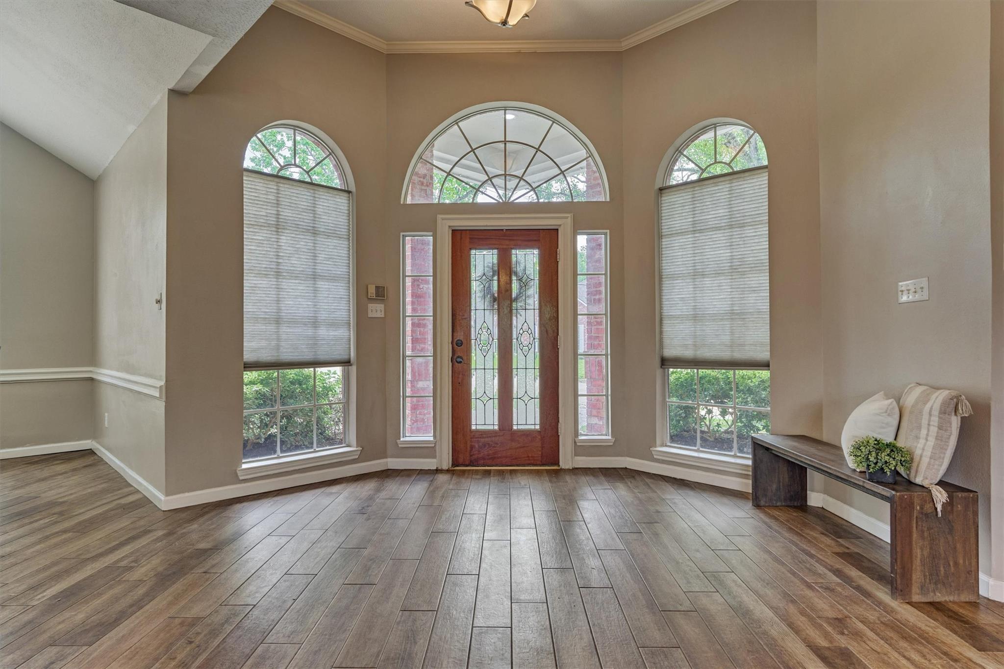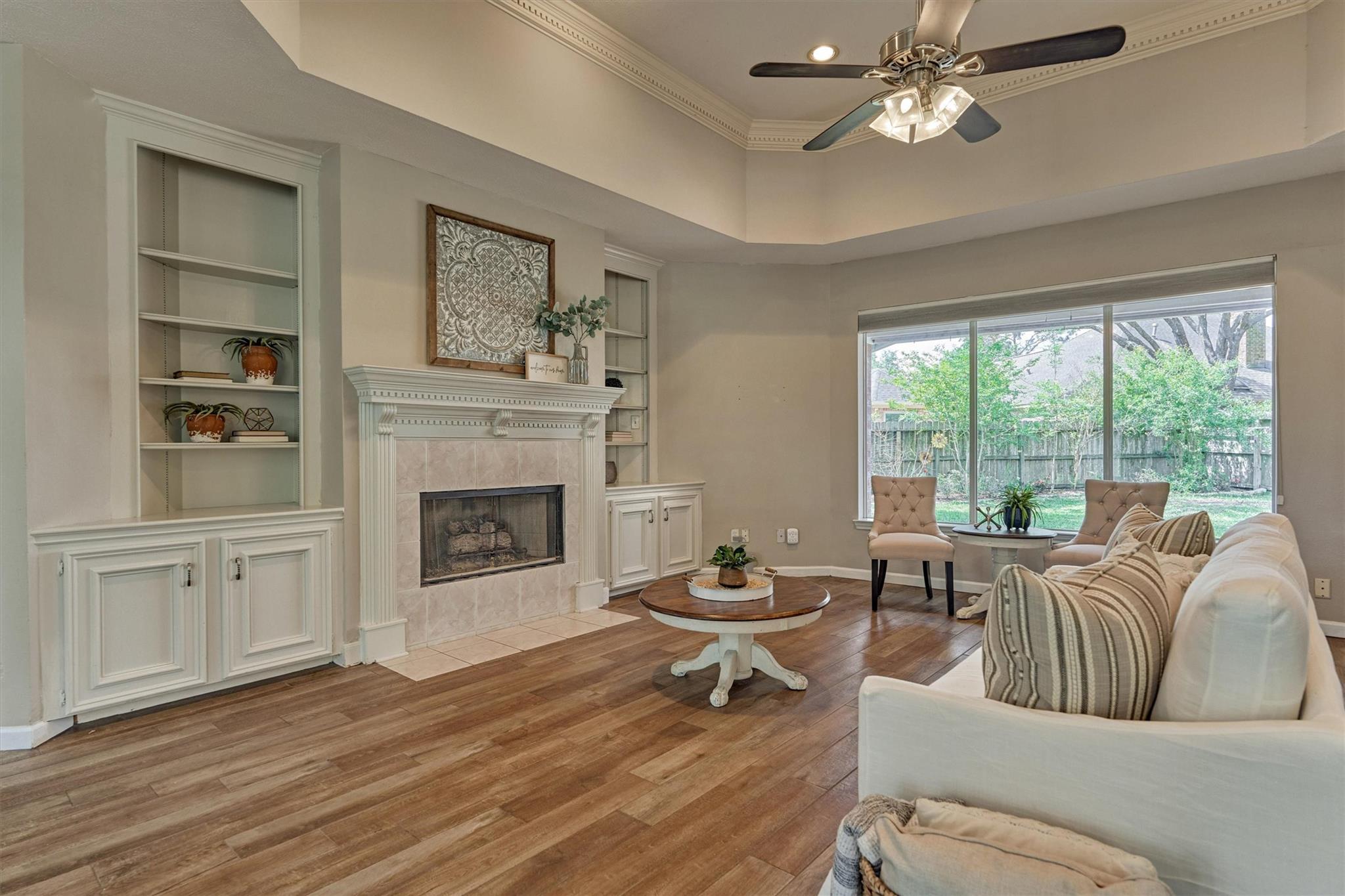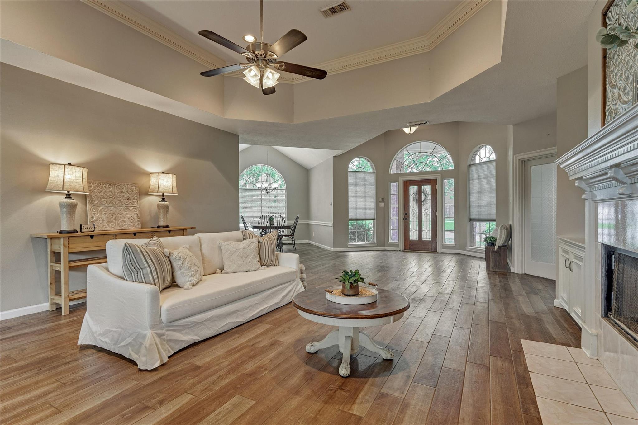 Beautifully maintained one-story home on a desirable corner lot featuring a half-circle driveway and fantastic curb appeal! This 3-bedroom, 2.5-bath home offers a functional layout with both comfort and style. Inside, you'll find no carpet throughout, making for easy maintenance and a clean, modern feel. The home features a formal dining room, a dedicated home office, and a spacious living area centered around a cozy fireplace, perfect for relaxing or entertaining. The kitchen features updated appliances and flows easily into the main living spaces. The private primary suite includes dual sinks and dual walk-in closets. Located in a community zoned to Cy-Fair ISD, this property offers convenient access to shopping, dining, and everyday essentials. Residents enjoy great neighborhood amenities, including a pool, tennis courts, playground, mosquito control, and trash pickup. A wonderful opportunity to own a move-in-ready home in a well-established community!