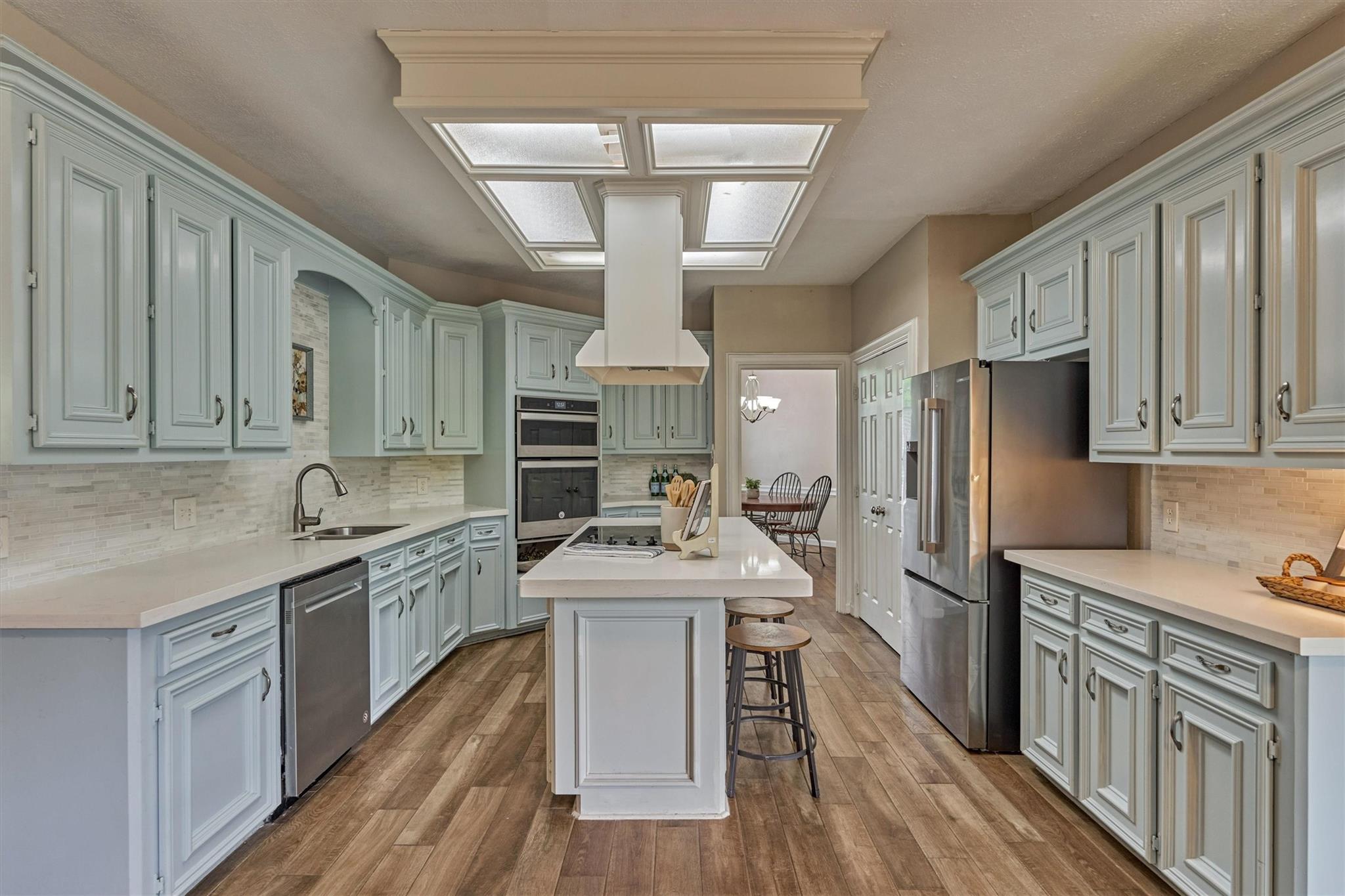 InteriorFireplace:1/Gas ConnectionsFloors:TileBathroom Description:Half Bath,Primary Bath: Double SinksBedroom Desc:En-Suite Bath,Split Plan,Walk-In ClosetKitchen Desc:Island w/ CooktopRoom Description:Breakfast Room,Entry,Formal Dining,Home Office/Study,Utility Room in HouseHeating:Central GasCooling:Central ElectricConnections:Electric Dryer Connections,Washer ConnectionsDishwasher:YesDisposal:YesMicrowave:YesRange:Electric CooktopInterior:High Ceiling
