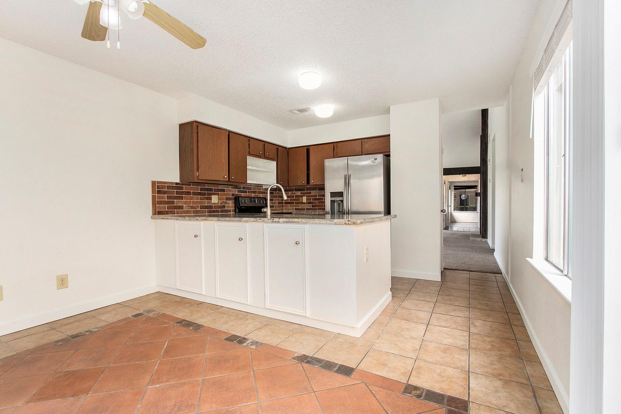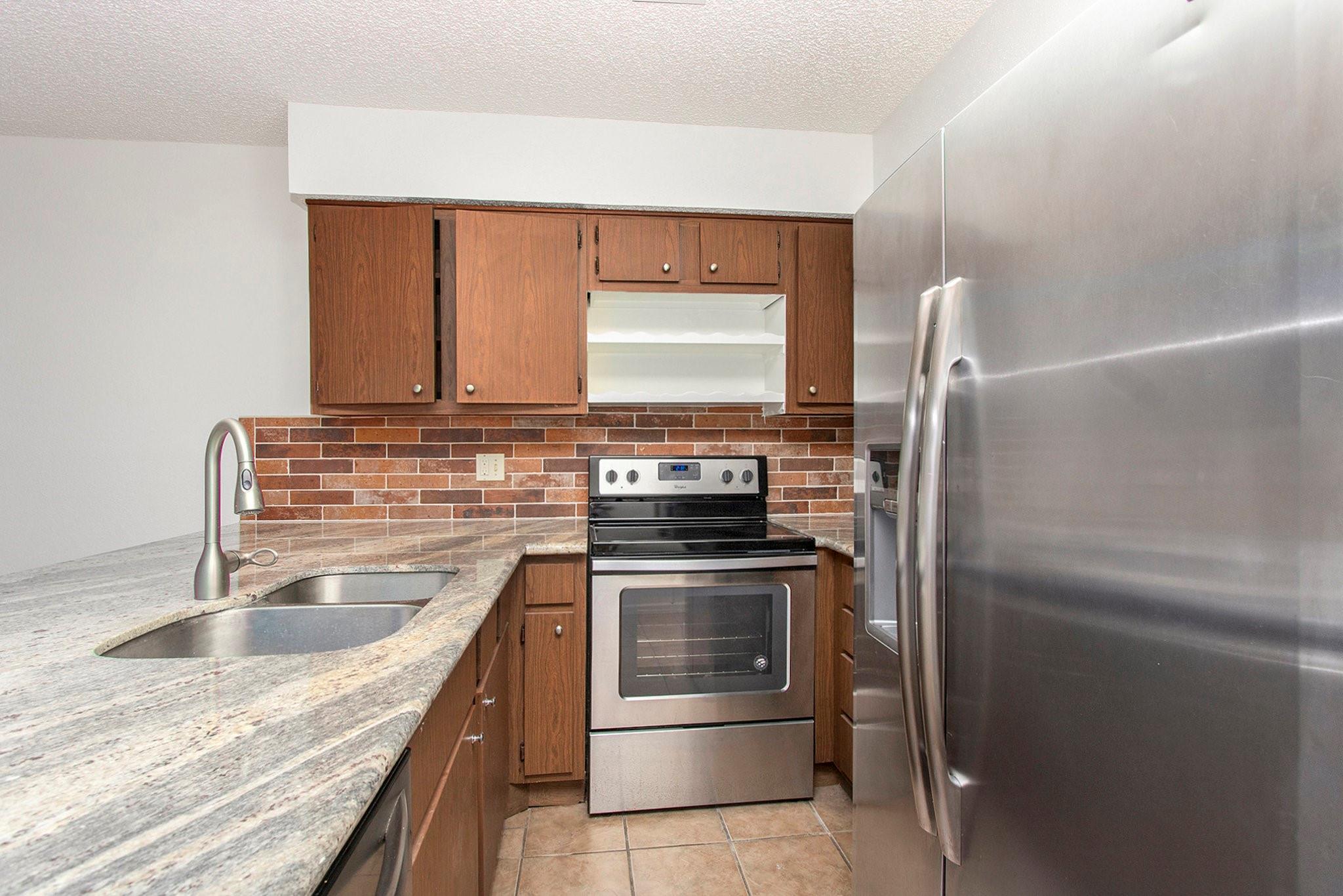 Come home to this charming 1 story 2 bedroom, 2 bath, 2 car garage, corner unit townhome in Village Place. Featuring a wood-burning fireplace, built-in shelving, wood and tile flooring, private back patio. The kitchen has granite countertops, tile brick backsplash, stainless steel appliances and, breakfast bar. Conveniently located near the Energy Corridor, restaurants, shopping and medical. Move in ready home. Perfect opportunity for investor or someone looking for a sound home that just needs some minor cosmetic updates. Foundation repaired with lifetime transferable warranty. Interior has been freshly painted. Washer, dryer, refrigerator, range can convey with home.