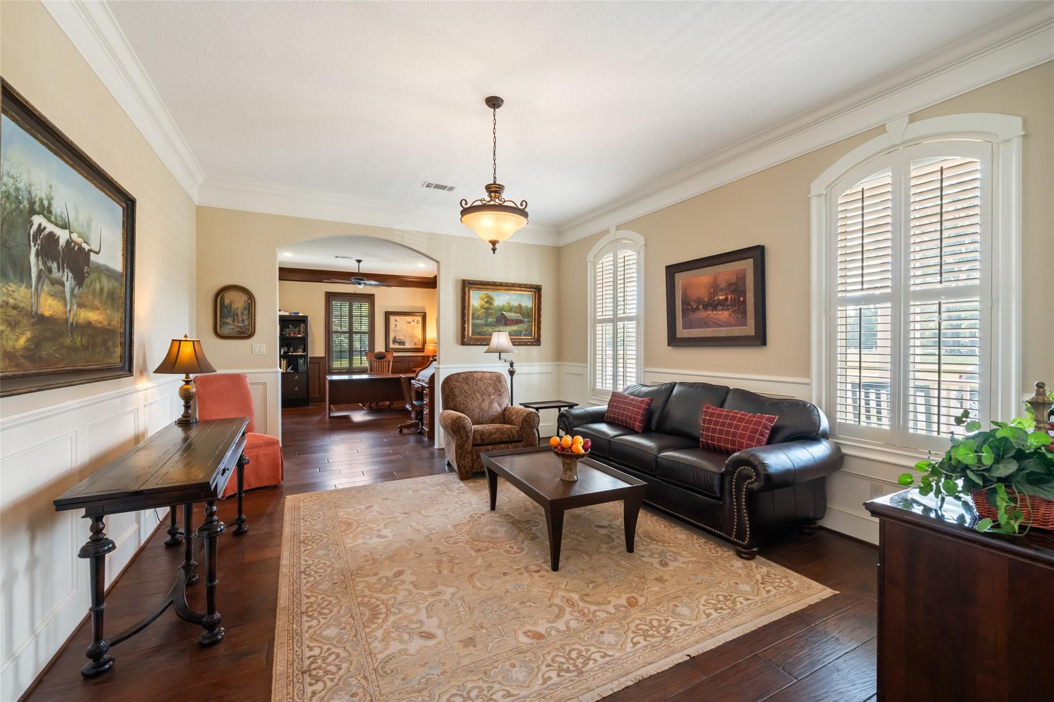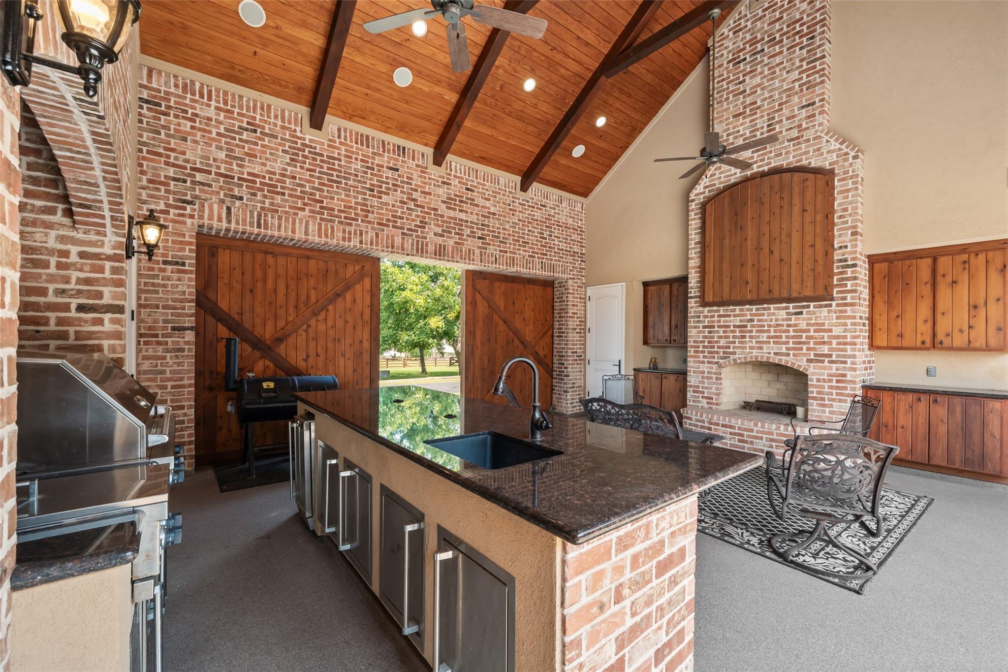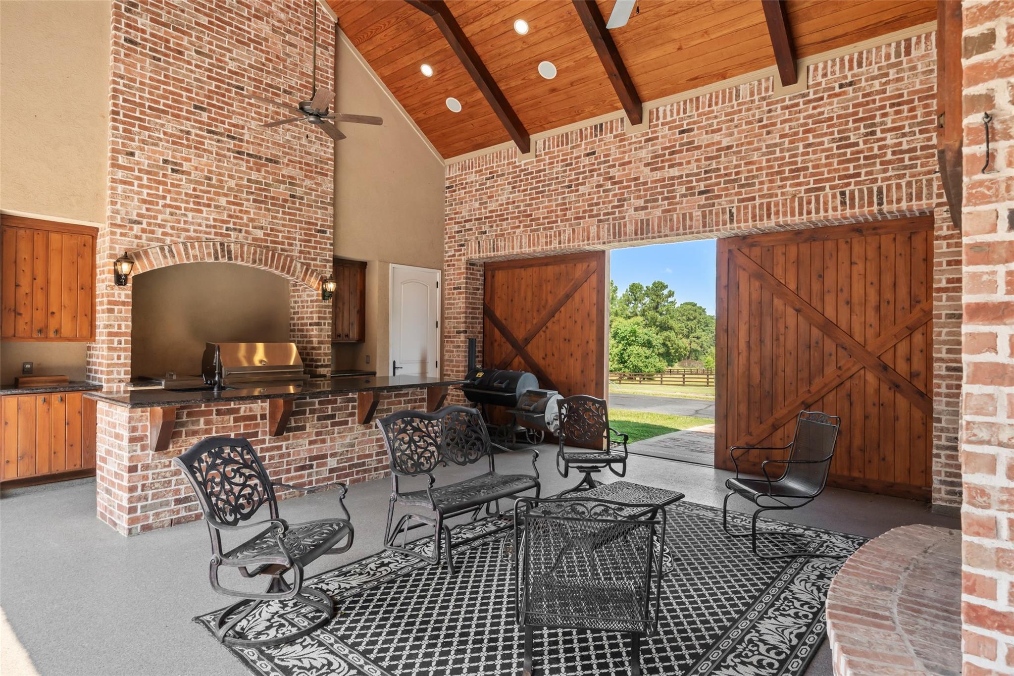 Custom-built J.W. Neathery estate on 11.5 acres offering privacy, functionality, & timeless design. This 5,443sf home features dual primary suites on the first floor, soaring 18-ft ceilings, Brazilian hardwood floors, cedar beams, plantation shutters & extensive custom work throughout. The chef’s kitchen includes granite counters, large island with farmhouse sink, double Viking ovens, panel fridge, butler’s pantry & endless storage. Designed for entertaining, enjoy a stunning courtyard with water feature overlooking scenic views, outdoor cedar kitchen with vaulted ceilings, fireplace, large island, wine fridge, expansive covered patios & full bathroom. Additional highlights include new HVAC, water softener, central vac, office, exercise room, game room, 935sf “Texas attic” & two 2-car garages. Full property fenced + invisible fenced, 1,200sf barn, 20kW generator, & gated entrance. A rare blend of luxury living & acreage just minutes from Lake Conroe, entertainment, shopping & dining.