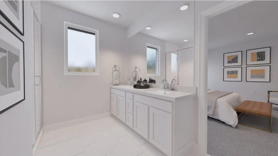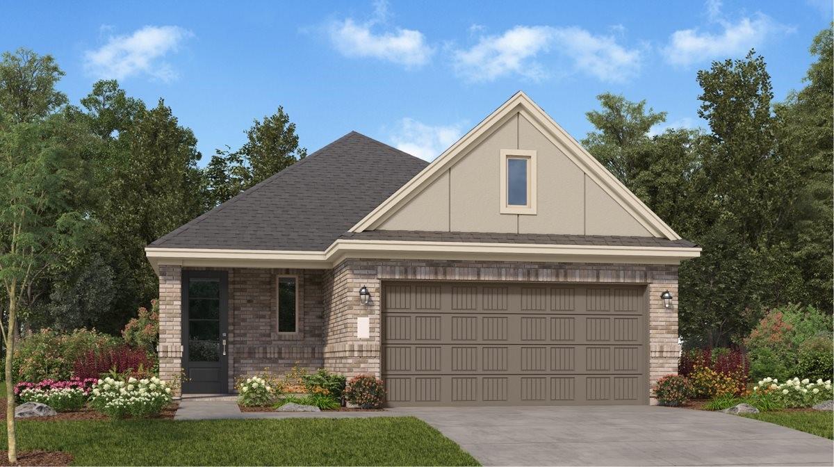 NEW Lennar VB Avante Collection "Linfield" Plan with Brick Elevation "C" in Moore Landing! This new four-bedroom home showcases a modern layout contained to a convenient single level. An open-concept floorplan with access to a covered patio promotes effortless entertaining and multitasking. Three secondary bedrooms can be found at the back of the home, and the luxurious owner’s suite is tucked away to the side for enhanced comfort and privacy, complete with an en-suite bathroom and generous walk-in closet.