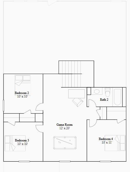 Second FloorBedroom:10x11Bedroom 2:10x10Bedroom 3:10x10Game Room:12x20