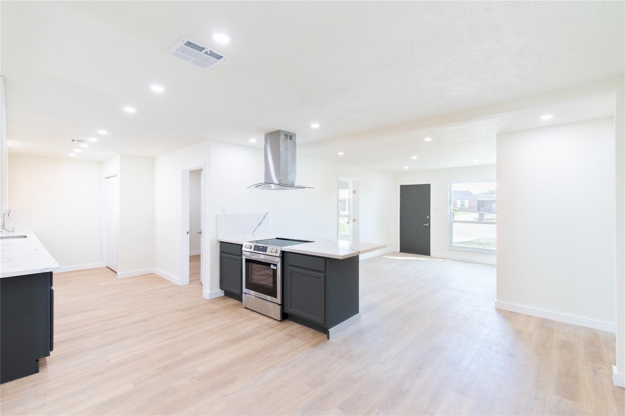 This renovated 5 bedroom residence showcases new Low-E windows, a brand-new roof, completed foundation repairs, PEX plumbing, a new HVAC system, new hot water tank, new concrete work, and fresh interior and exterior paint for absolute peace of mind. Inside, refined new flooring flows seamlessly beneath designer light fixtures and modern ceiling fans, creating a bright, sophisticated ambiance. The open-concept kitchen is a true centerpiece, highlighted by an expansive peninsula quartz countertops with a full-height quartz backsplash, and sleek stainless steel appliances—perfectly designed for elegant entertaining and elevated everyday living. Step outdoors to a stunning covered patio ideal for gatherings, embraced by a private yard secured with a new privacy fence. Both bathrooms have been beautifully reimagined with contemporary, spa-inspired finishes. This move-in-ready masterpiece blends structural excellence, modern elegance, and timeless comfort.