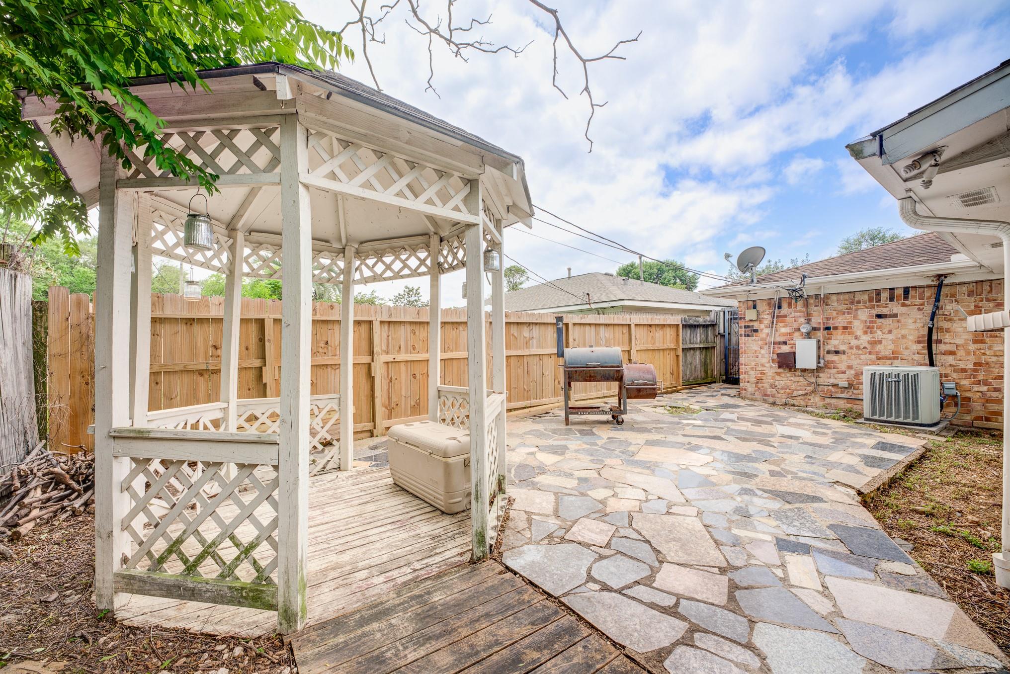 Welcome home to this single-story residence in Fondren Park with 4 bedrooms, 2 full bathrooms, and a flexible study with French doors, featuring generous living spaces, well-sized rooms, and a layout designed for comfort and versatility. The galley-style kitchen includes a breakfast bar, granite countertops, tile backsplash, and a pantry, providing both function and flow for your everyday cooking. The primary suite includes a private bath with a shower and walk-in closet. Outdoors, you’ll find a welcoming front porch and a fenced backyard retreat complete with an enclosed patio, hot tub, gazebo, and additional open patio space perfect for your weekend relaxation. Located near neighborhood parks, green spaces, shopping, dining, and conveniences, with access to Beltway 8 and Hwy 90 for an easy commute to Downtown. A good choice for families to create lasting memories with.