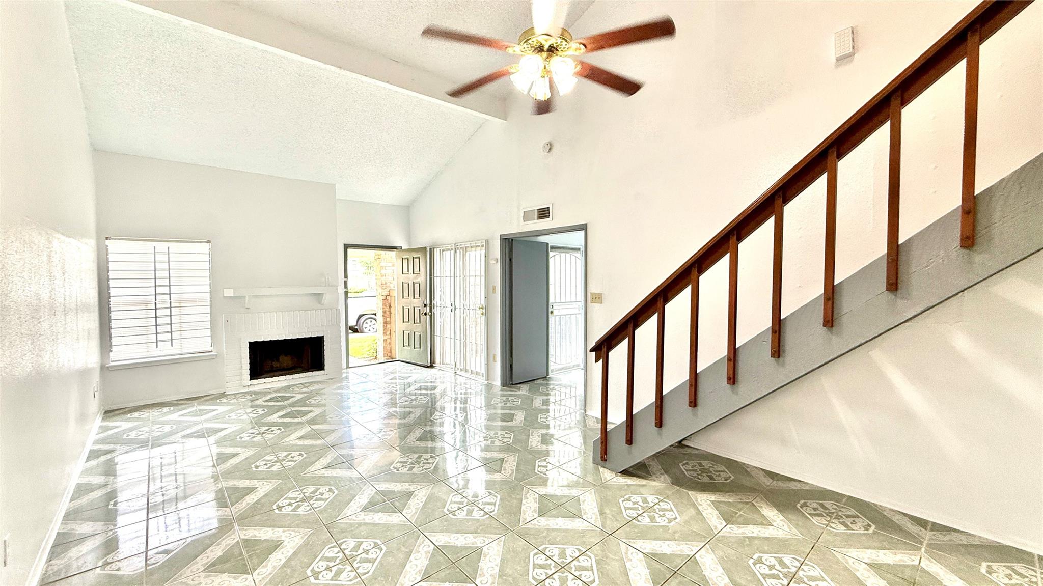 Very spacious and comfortable corner unit! recent carpet! lots of kitchen cabinets! High ceiling! cozy fireplace! Ceiling Fan! new range/oven; loft could be a nice study or 3rd bedroom! skylight! with a little tlc, this will be very nice! private fenced in backyard great for small pets! Easy access to Beltway 8, Fondren, Gessner, & Hillcroft! frige negotiable!