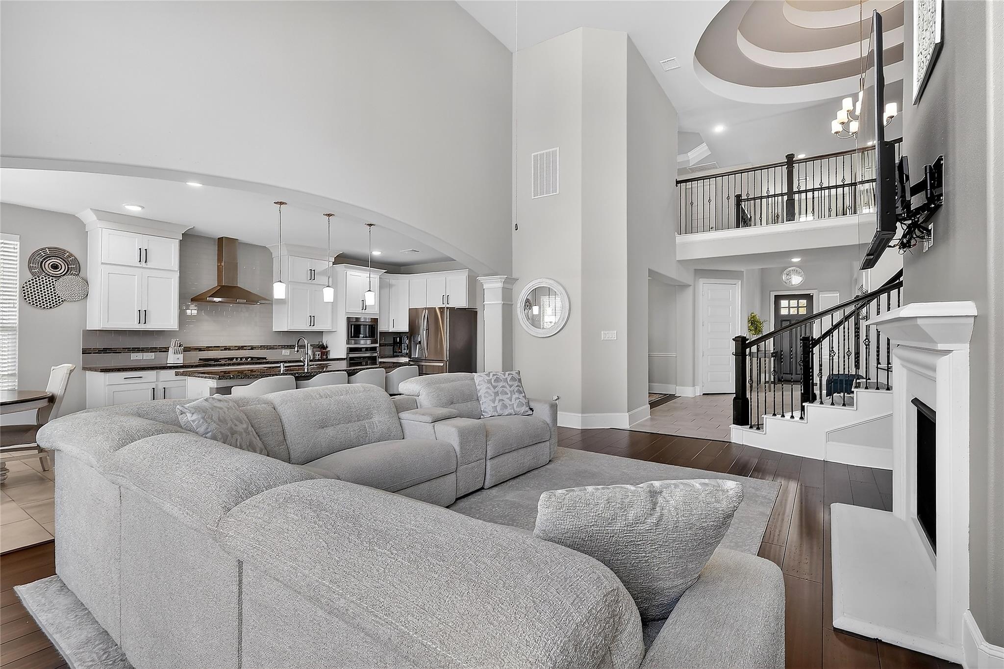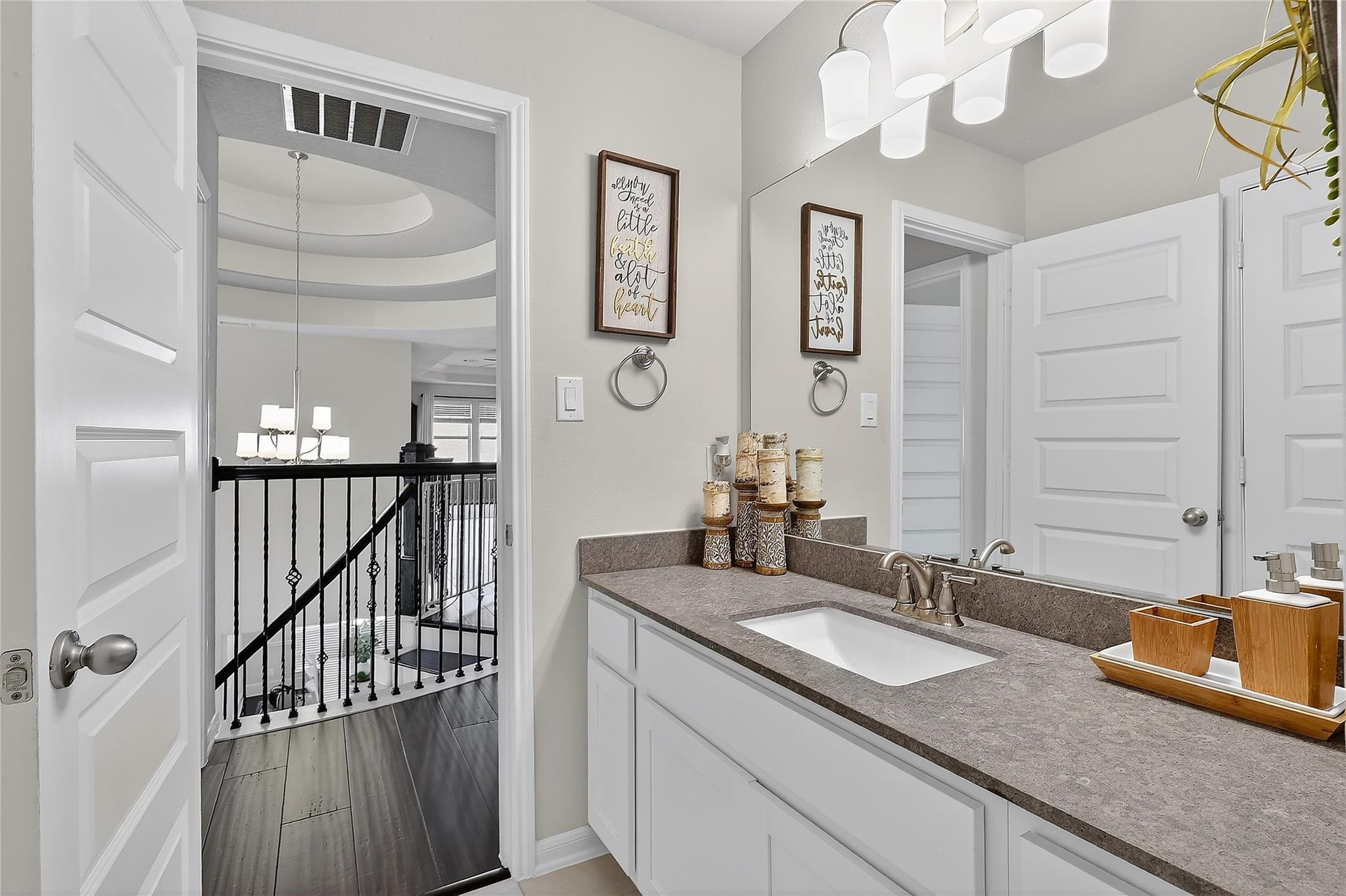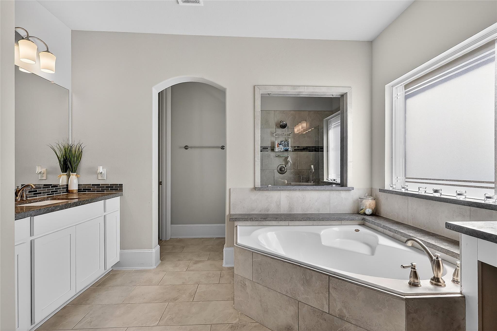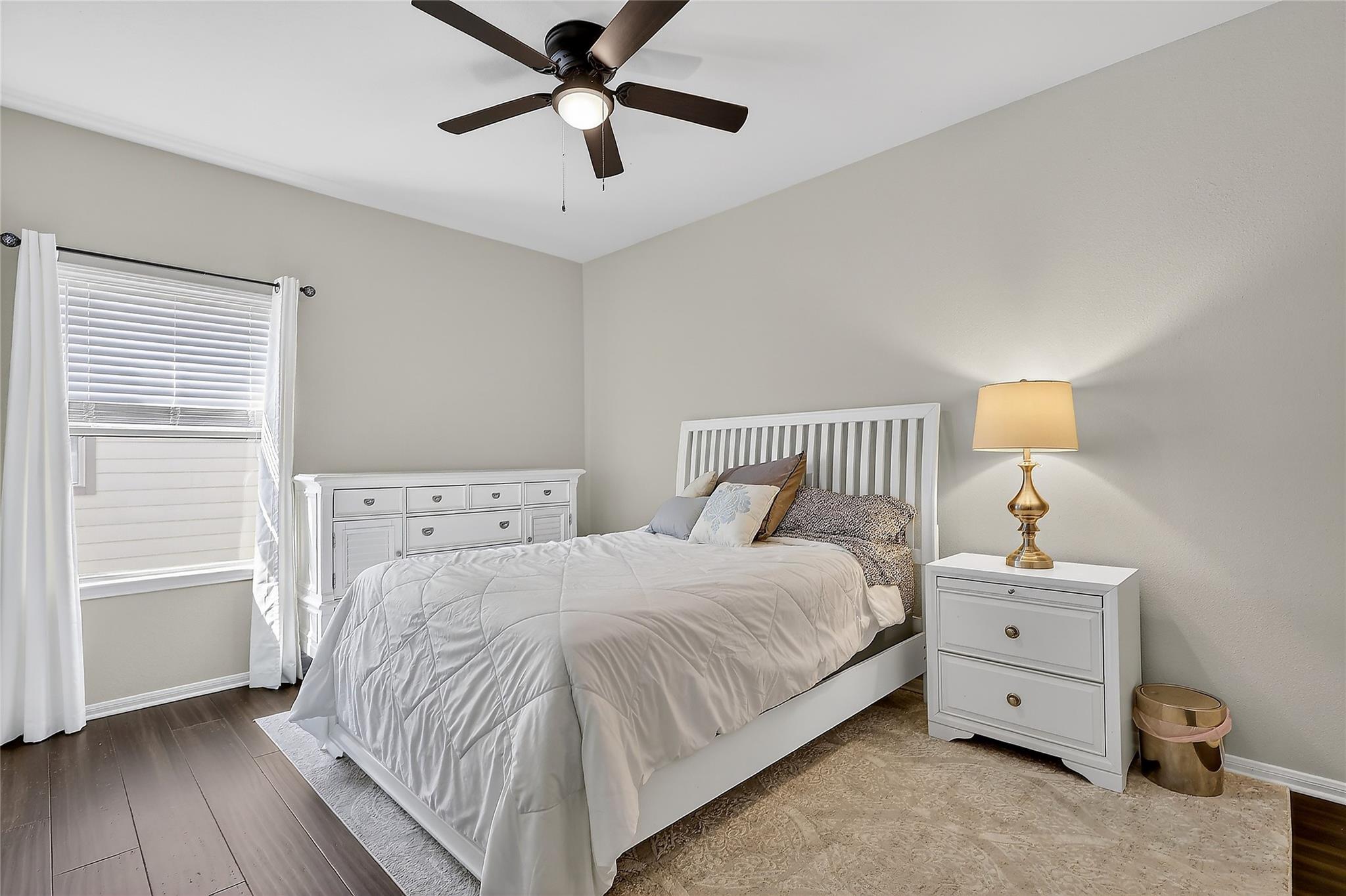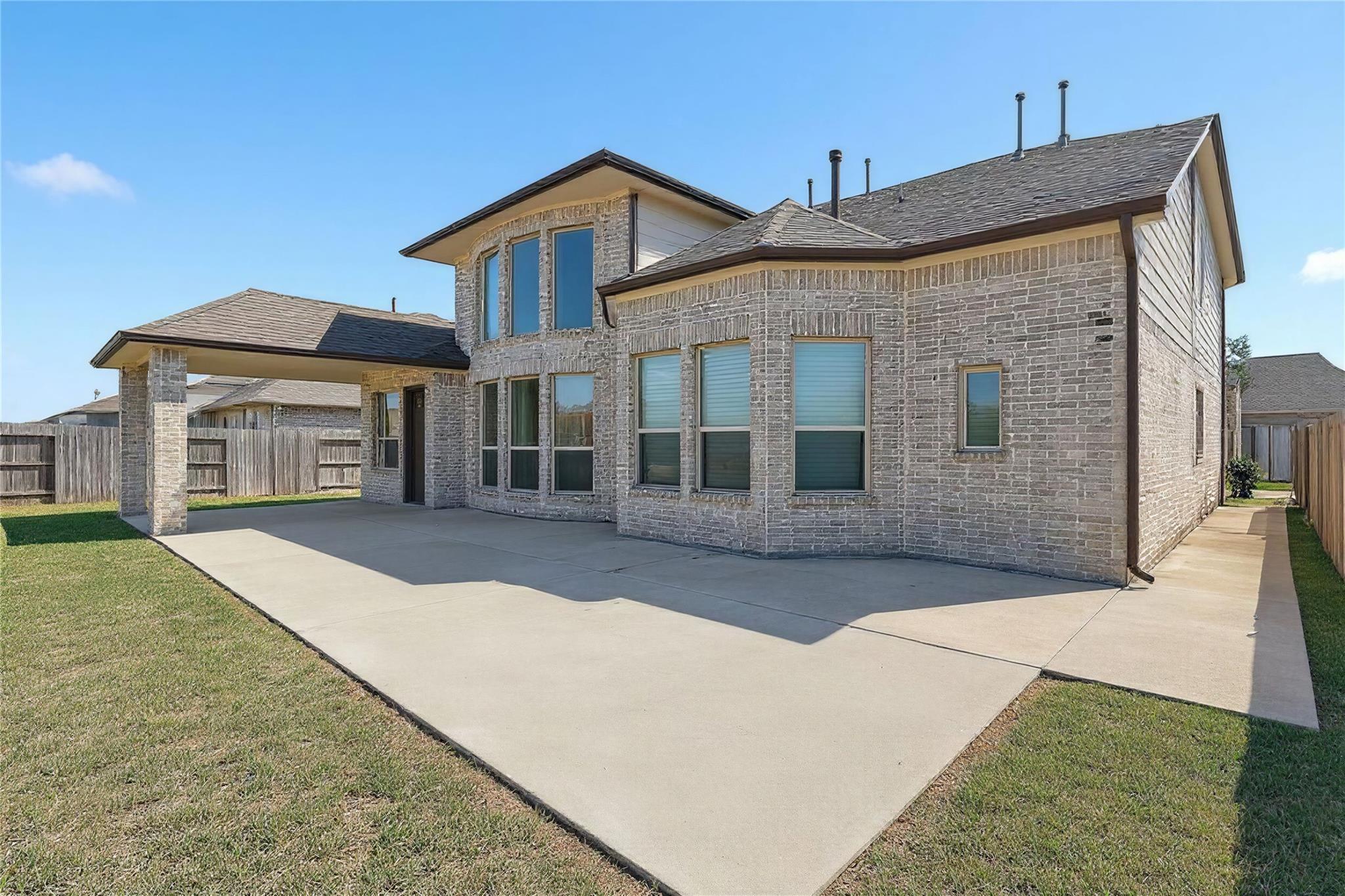 Welcome to this stunning 2-story custom Westin Home in the sought-after Balmoral community. This 5-bedroom, 4.5-bath home features a grand entry with soaring ceilings and wood floors, leading to the formal dining room and private office. Floor-to-ceiling windows fill the space with natural light. The living room has a cozy gas fireplace and opens to a gourmet kitchen with granite countertops, ample cabinetry, and a walk-in pantry. The primary suite offers a soaking tub, oversized shower, dual vanities, and walk-in closets. A main-floor guest suite provides a private bath and comfort for visitors. Upstairs includes three bedrooms, two full baths, a game room, and a media room. Outside, enjoy an extended patio and spacious backyard. Additional features include a 3-car garage, sprinkler system, and whole-house Generac generator. Just minutes from Beltway 8 and under 30 minutes to Downtown Houston.