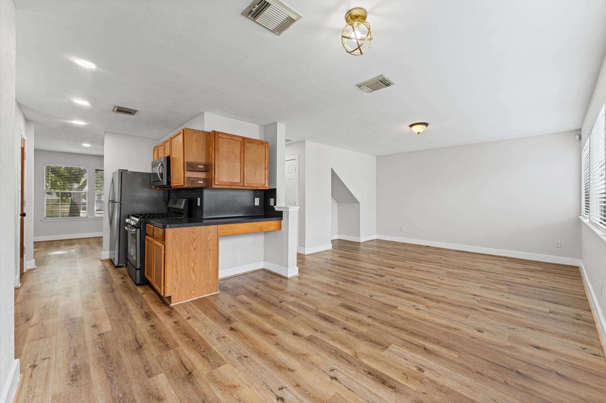 Welcome to this beautifully updated 4-bedroom, 2.5-bath home offering both comfort and functionality. The entire home features updated flooring, including durable luxury vinyl plank throughout the main areas and plush carpet in the bedrooms and on the stairs. Fresh paint throughout gives the home a clean, modern feel, making it truly move-in ready. The spacious layout includes a large living area downstairs, along with a separate dining room and a formal living space that can easily be used as a home office or flex room. Step outside to a generously sized backyard—perfect for entertaining guests or enjoying quiet evenings outdoors. All appliances are included, adding extra convenience for the new homeowner. Located in a peaceful, quiet neighborhood with HOA amenities and scenic walking trails, this home offers the perfect balance of tranquility and accessibility. You'll also appreciate the close proximity to the Texas Medical Center and downtown Houston, making commuting a breeze.