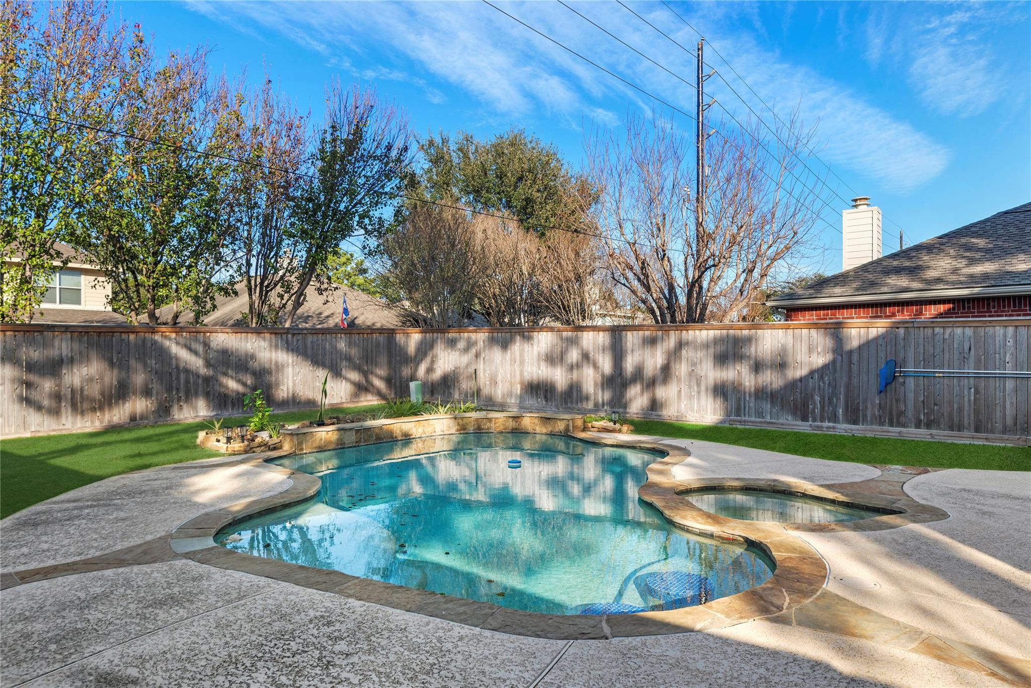 ExteriorRoof:CompositionFoundation:SlabPrivate Pool:YesPrivate Pool Desc:Gunite,In Ground,Pool With Hot Tub AttachedExterior Type:Brick,Cement BoardLot Description:Corner,Subdivision LotGarage Carport:Double-Wide DrivewayWater Sewer:Water DistrictFront Door Face:SouthExterior:Back Yard Fenced,Covered Patio/Deck,Patio/Deck,Spa/Hot Tub,Sprinkler System