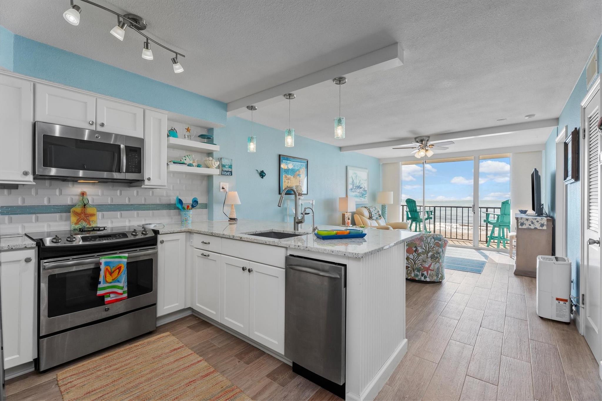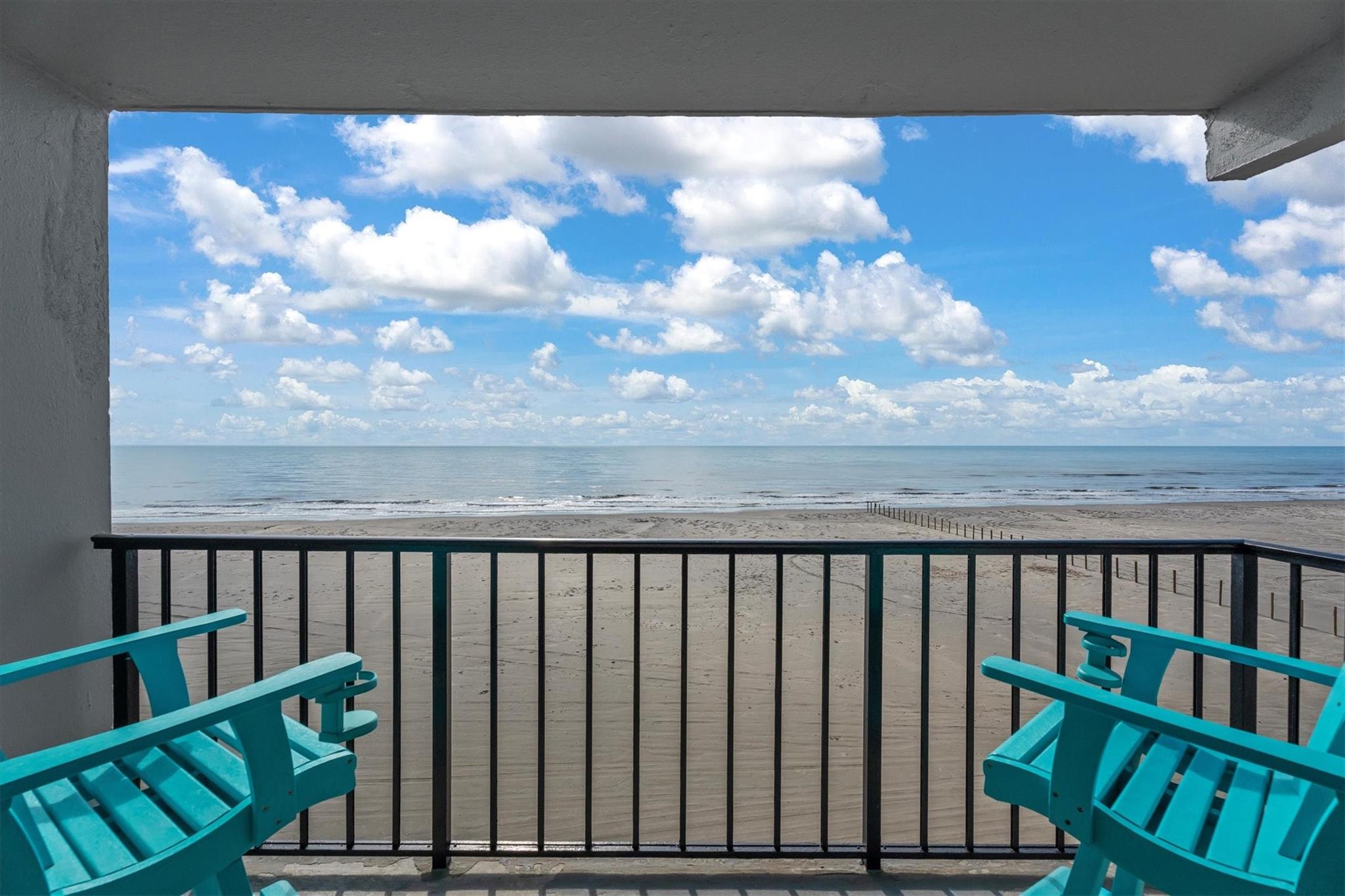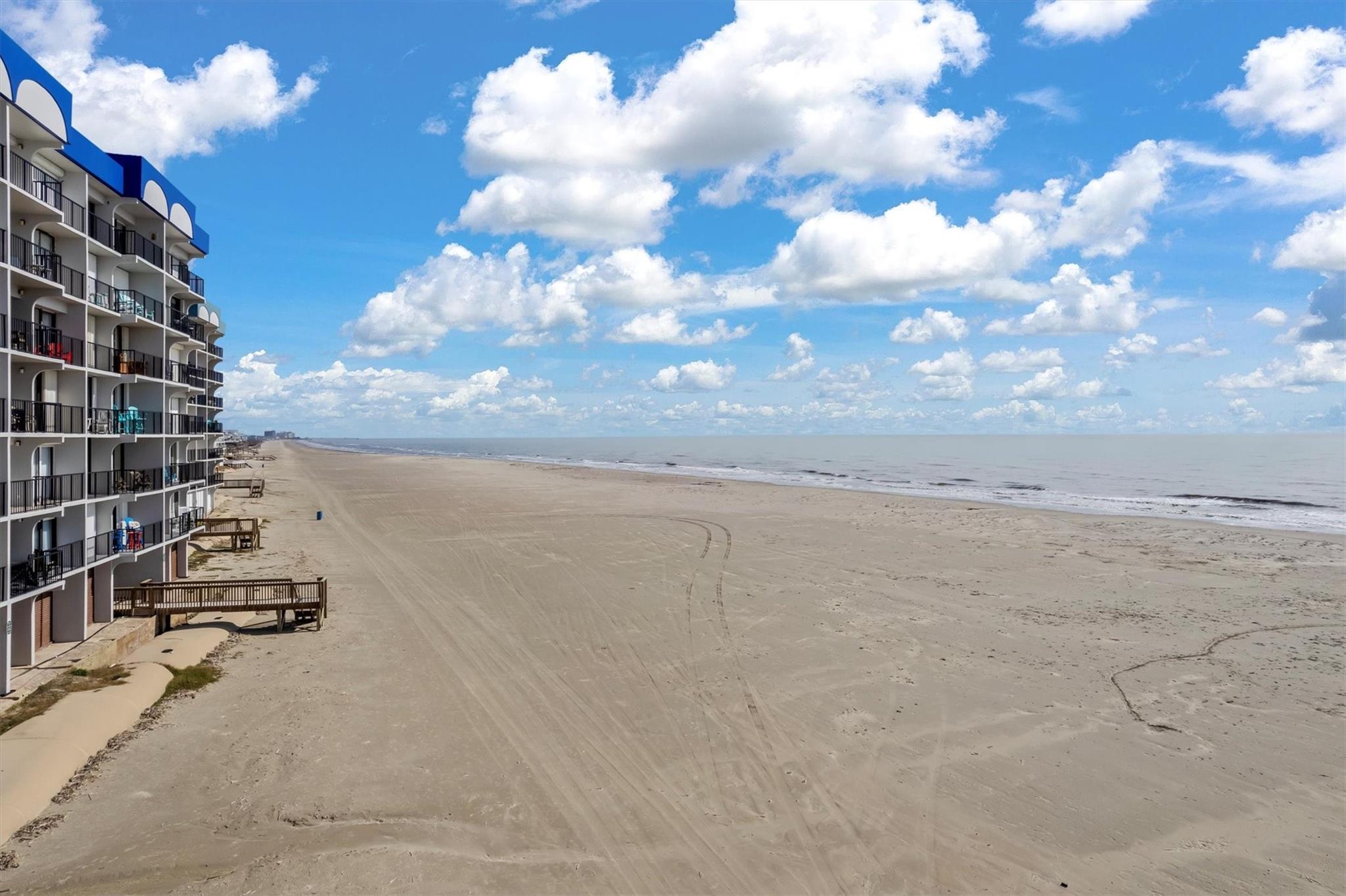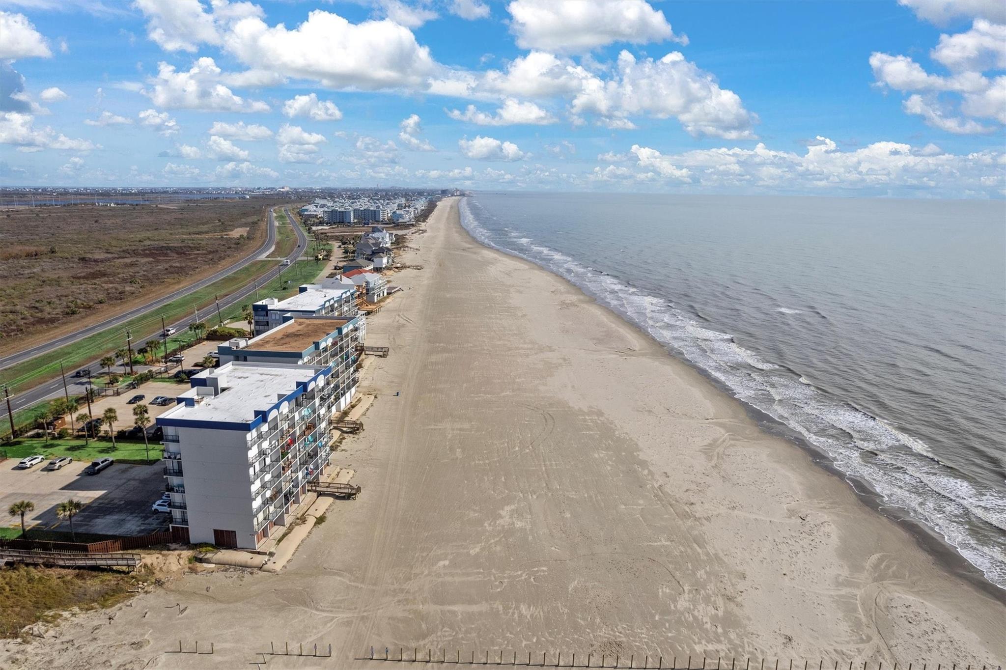 Beautiful, gated BEACHFRONT condo with stunning views of the Gulf! Centrally located on Galveston Island for the ultimate weekend getaway! MOVE-IN-READY! Well-maintained 2 bed, 2 bath unit on the 3rd floor features floor-to-ceiling glass doors & wood-look tile throughout. Enjoy the breeze with private balconies from the family room & primary bedroom. The light & bright kitchen offers stainless appliances, built-in water filtration, drawers for pots & pans, granite counters, a walk-in pantry & a sink with a BEACHVIEW! Wake up to more FABULOUS views from the primary bedroom with en-suite bathroom & a walk-in shower. The guest bathroom also has a walk-in shower to serve the nearby secondary bedroom. Aluminum hurricane curtains installed for storm protection across the front. Riviera 1 residents enjoy direct BEACH access, outdoor shower, GATED secure entrance, elevators, storage closets & laundry room. Short term rentals are NOT allowed, so the pristine beach is yours to enjoy! Call today!