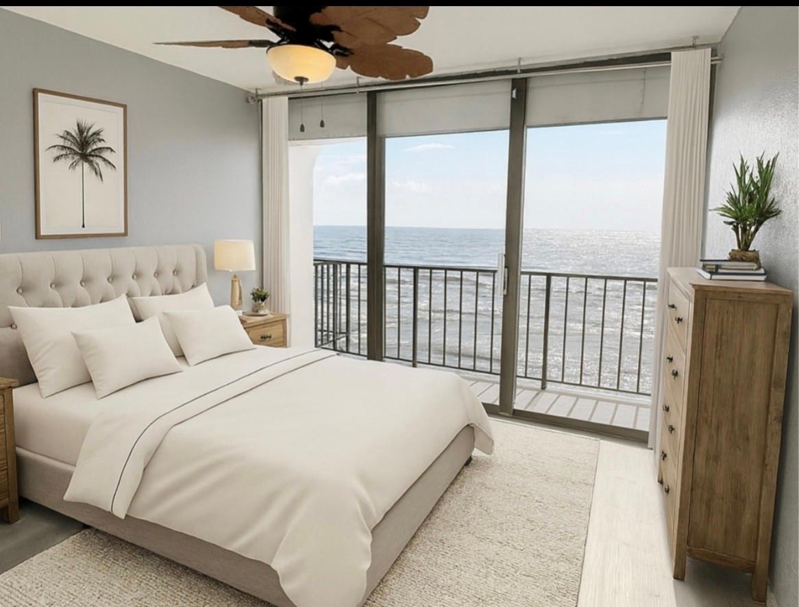 Enjoy breathtaking Gulf views from this beautiful beachfront condo! Welcome into this perfect blend of comfort, convenience, and coastal living. This charming 2-bedroom, 2-bath unit features an open layout with a bright living area, modern finishes, and private balconies overlooking the ocean from both the living area and primary suite - ideal for morning coffee or sunset relaxation. Riviera 1 offers private beach access exclusive to residents, well maintained grounds, and elevator access. Located on Galveston's sought-after West End, just minutes from popular restaurants, shopping and island attractions. Don't miss your chance to wake up to this gorgeous view!