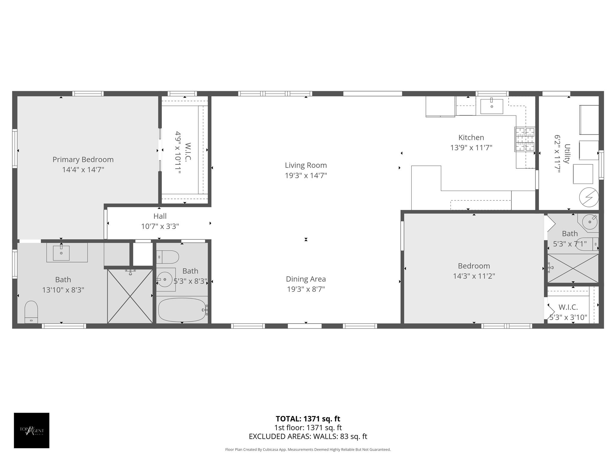 First FloorLiving:19' 5" x 23'Primary Bedroom:14' x 14'Bedroom:12' x 14'