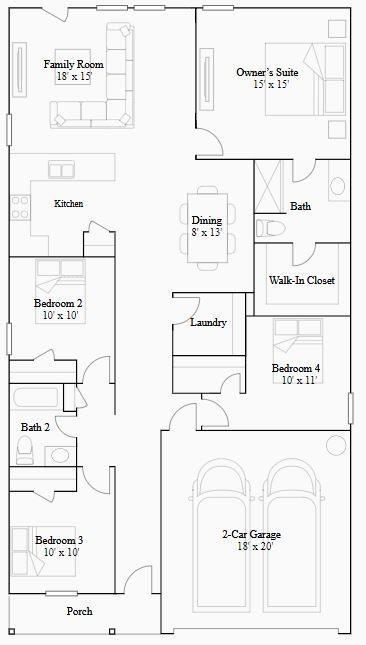 First FloorFamily Room:18x15Dining:8x13Kitchen:1stPrimary Bedroom:15x15Bedroom:10x11Bedroom 2:10x10Bedroom 3:10x10