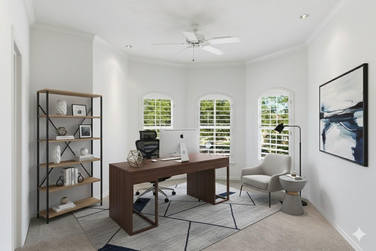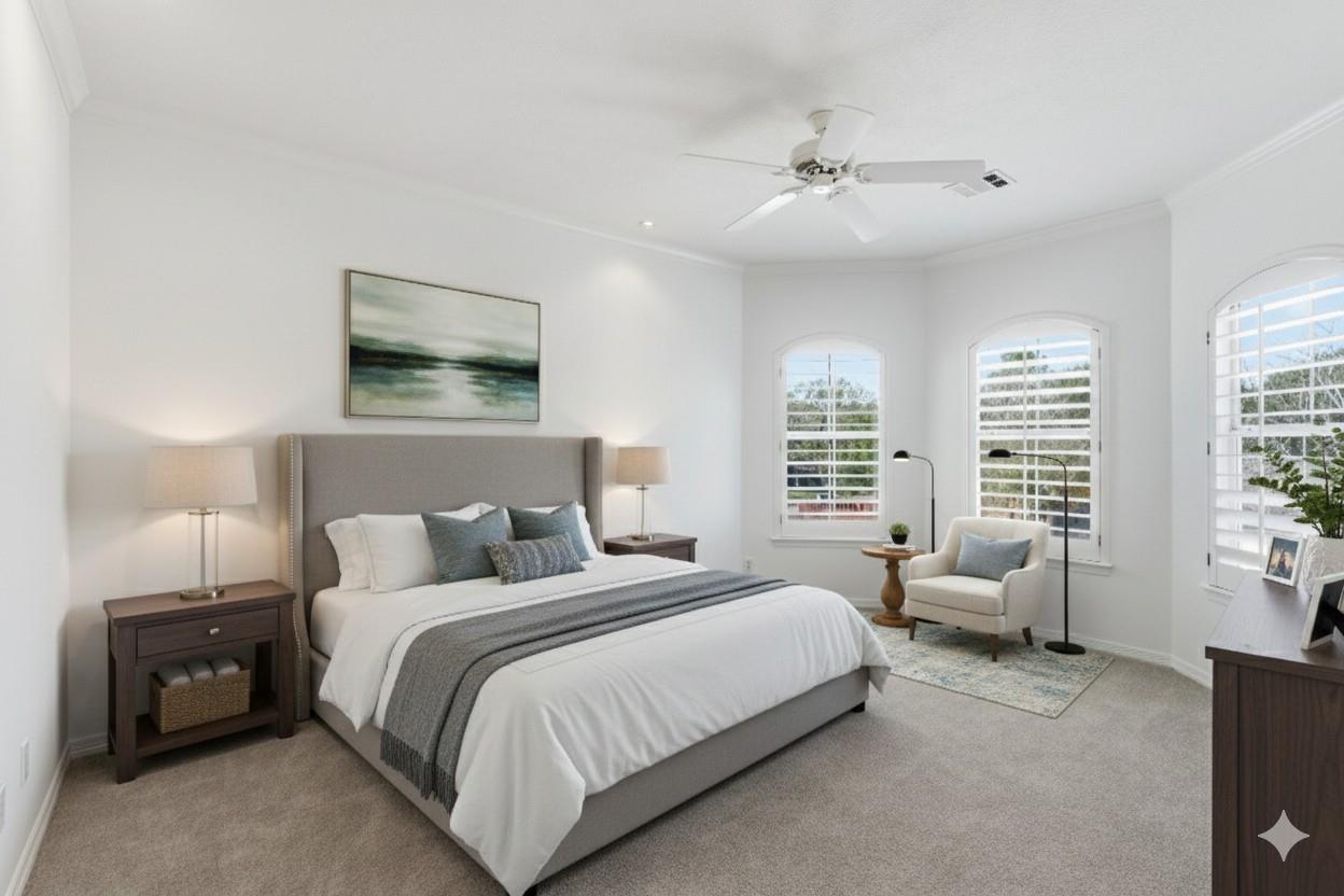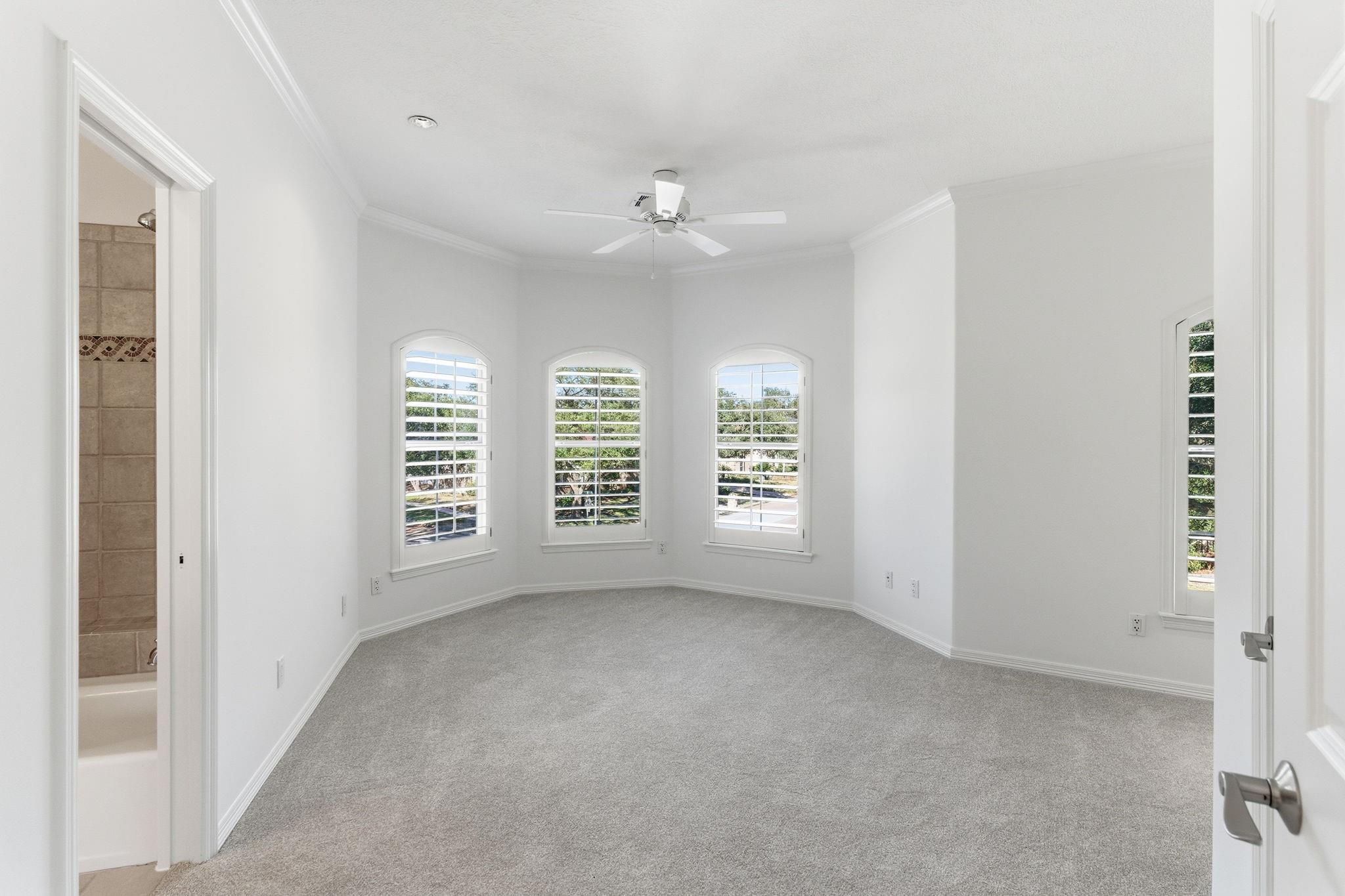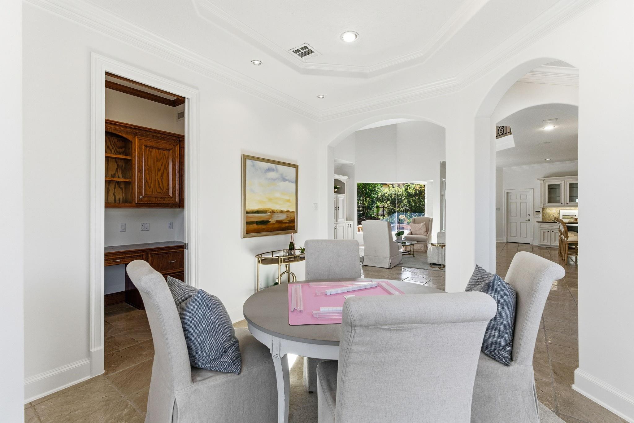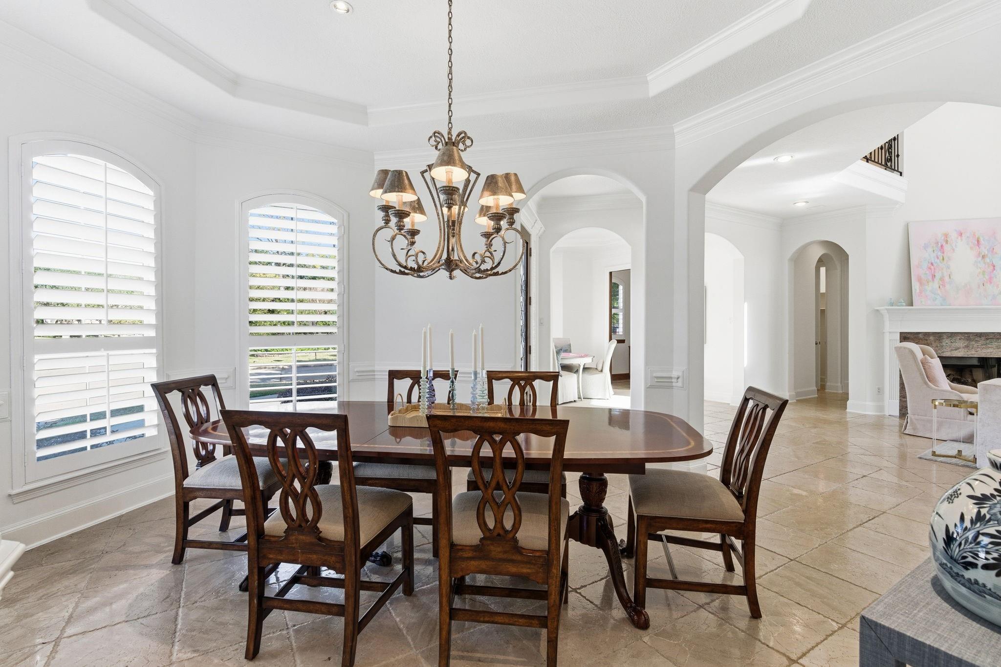 Step inside this charming 5 bed, 3.5 bath home in the Energy Corridor! The island kitchen features stone floors, granite counters w/ tile backsplash, gas cooktop, double electric ovens, built-in microwave, built-in pantry, eat-in breakfast bar, under cabinet lighting & SS refrigerator. The island kitchen is open to the family room which has high ceilings, built-in entertainment nook, gas-log fireplace, wet bar w/ mini wine fridge & views of the backyard. The primary suite is on the 1st floor w/ built-ins, tray ceilings, plantation shutters, a ceiling fan & views of the backyard. There are stone floors, double sinks, granite counters, walk-in closet, over sized jetted soaking tub & separate standing shower w/ tile surround in the primary bath. All secondary bedrooms are upstairs with carpet floors & nice size closets. Other home features include: Gameroom up, central vacuum, sprinkler system, pool/spa with rock fountain, 2 full baths up, corner lot, built-in study nook and so much more!