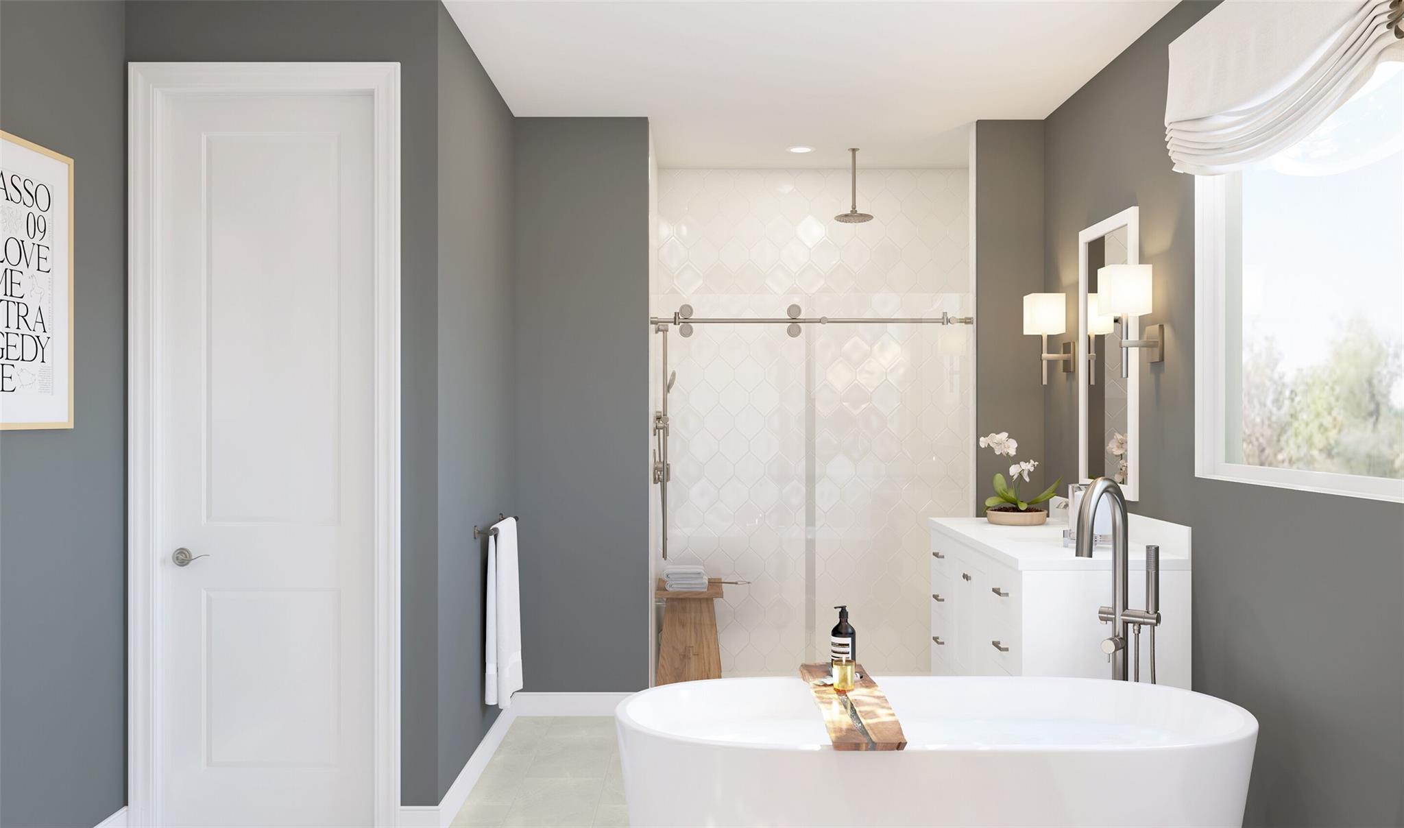 Welcome to St. Augustine Meadows in Mont Belvieu, TX offering K. Hovnanian's Looks – a unique collection of curated interiors. Situated on an over 1/4 acre lot, this stunning one-story Frankfurt home in our Classic Look features 4 beds, 2.5 baths, and 4-car tandem garage. Step inside to a welcoming foyer and find your dedicated workspace in the home office with barn doors. The dream kitchen, with pewter grey stacked cabinets and quartz counters, opens to the living area with a cozy fireplace and access to the large covered patio. Your private escape awaits in the secluded primary suite, which has a tranquil bath with freestanding tub. A versatile activity room adds extras flex space. St. Augustine Meadows is conveniently located with easy access to I-10 and Highway 146, and Highway 99. Mont Belvieu offers great shopping, dining, and entertainment! Zoned to Barbers Hill ISD. No MUD Tax! Offered by: K. Hovnanian of Houston II, L.L.C.