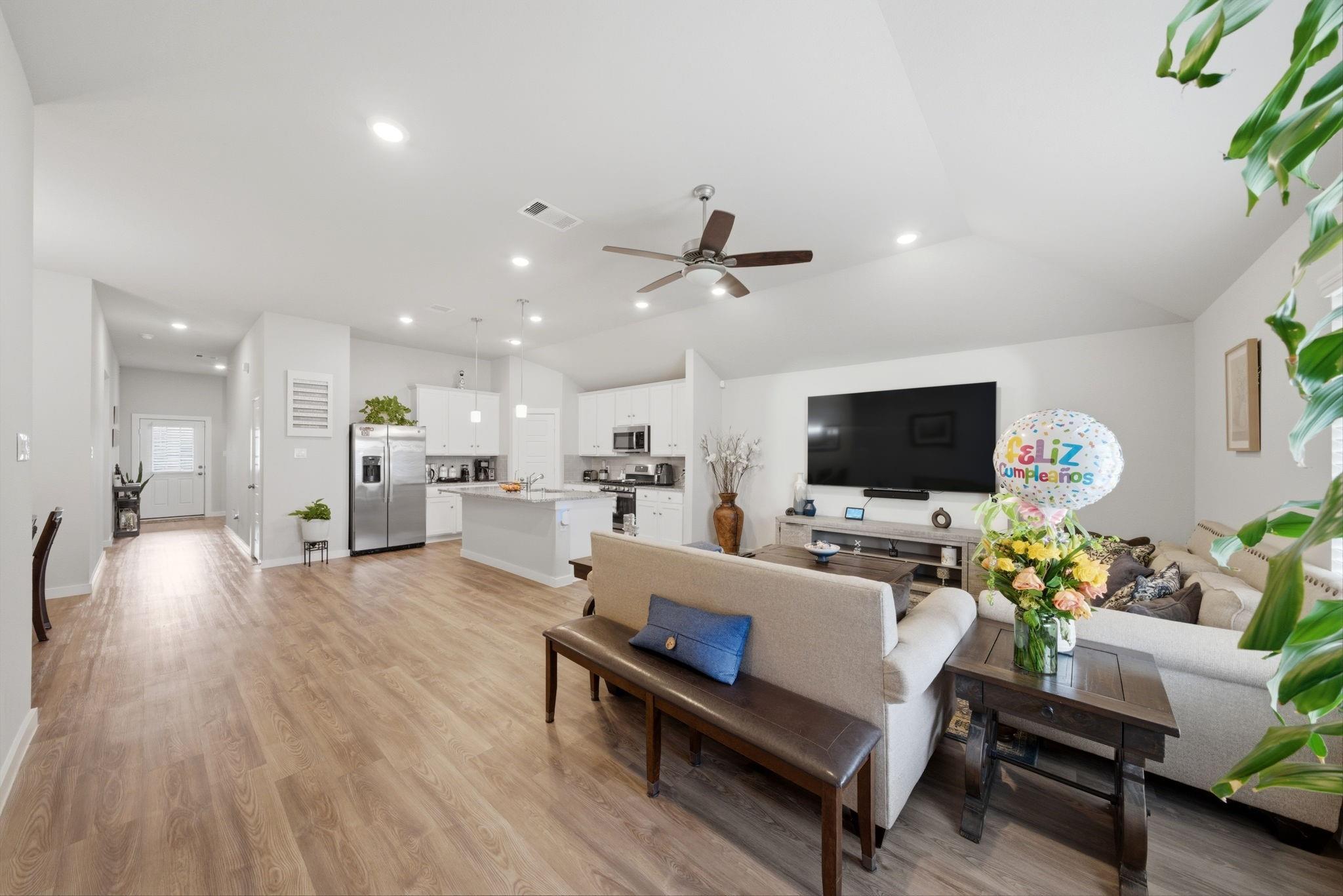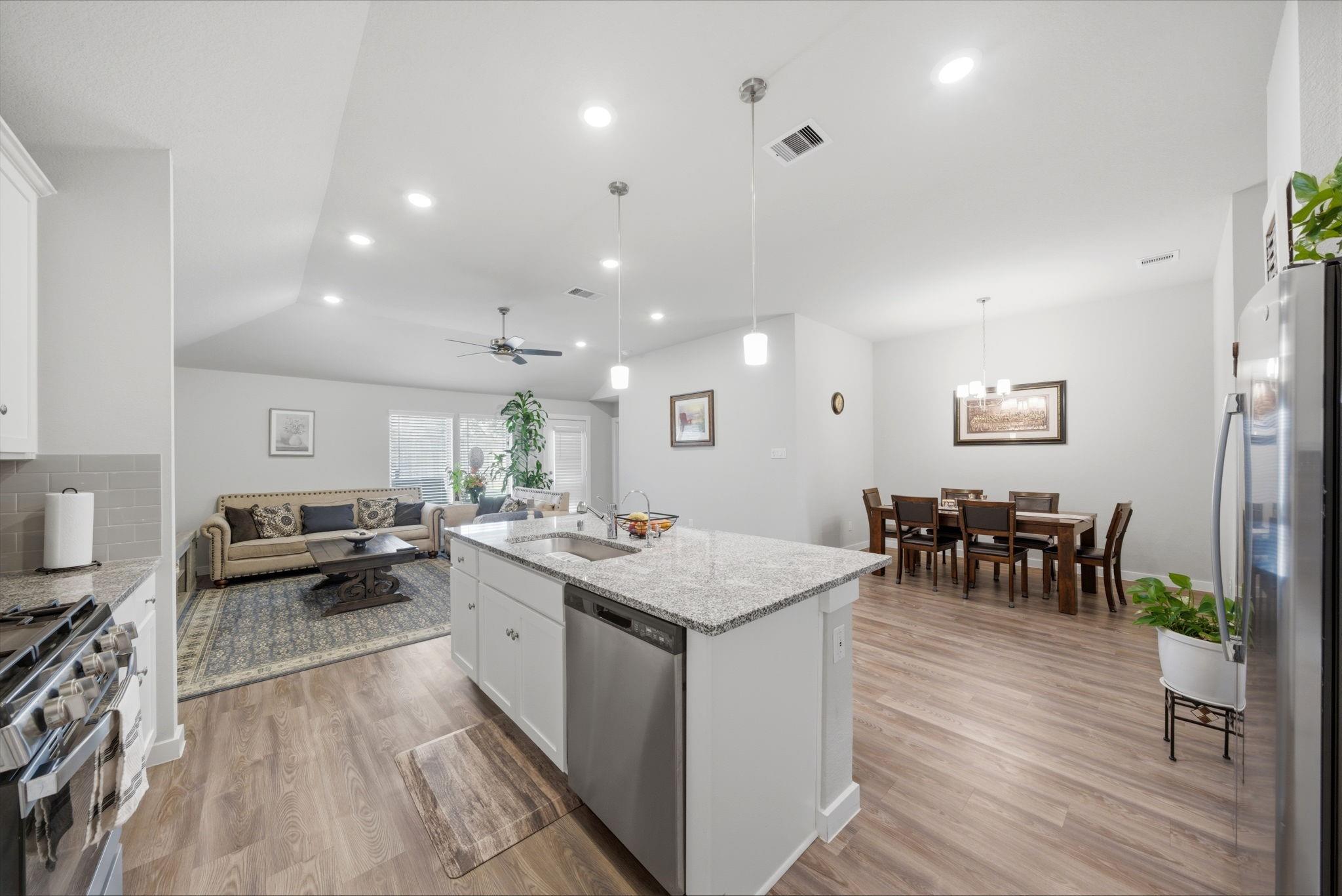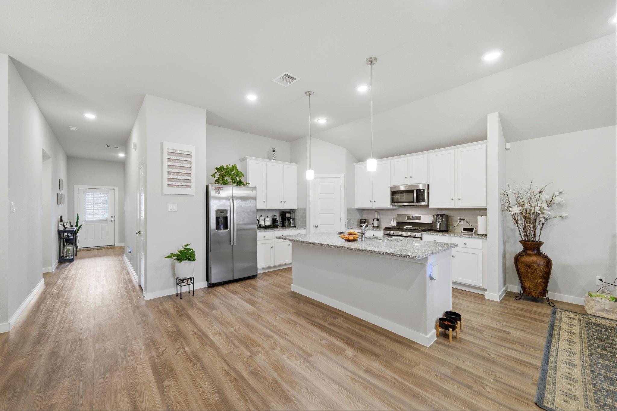 Welcome to this beautiful 2023-built single-story home in a quiet suburban neighborhood! This 4-bedroom home offers modern upgraded finishes and an open-concept layout with an island kitchen that flows naturally into the dining and living areas—ideal for entertaining or everyday living. Enjoy luxury vinyl plank flooring throughout, upgraded countertops, modern cabinetry, and stainless steel appliances. The private primary suite offers a relaxing retreat, while the covered patio provides a great space for outdoor enjoyment. Move-in ready and designed for modern living. BOOK YOUR SHOWING NOW!!