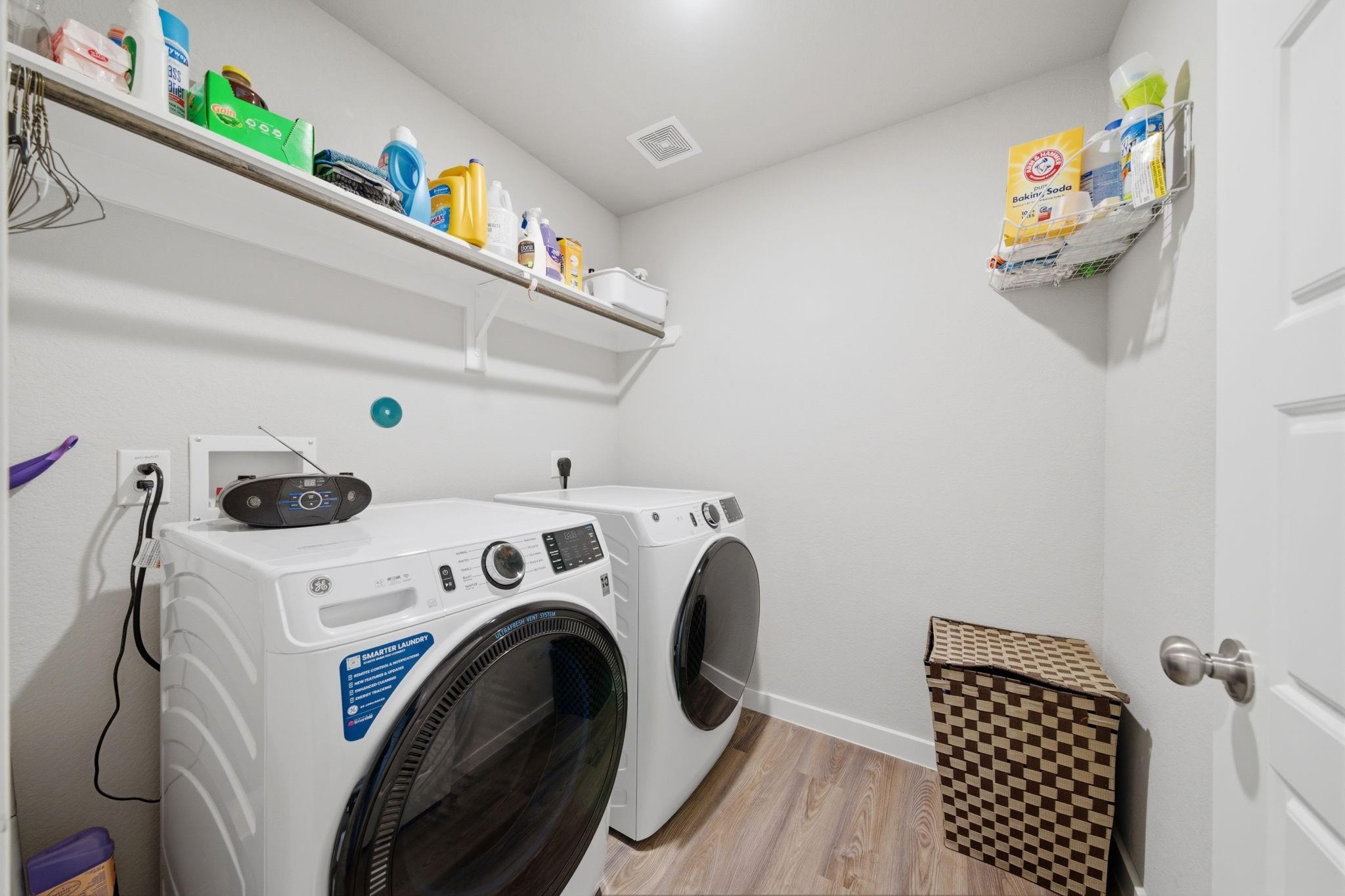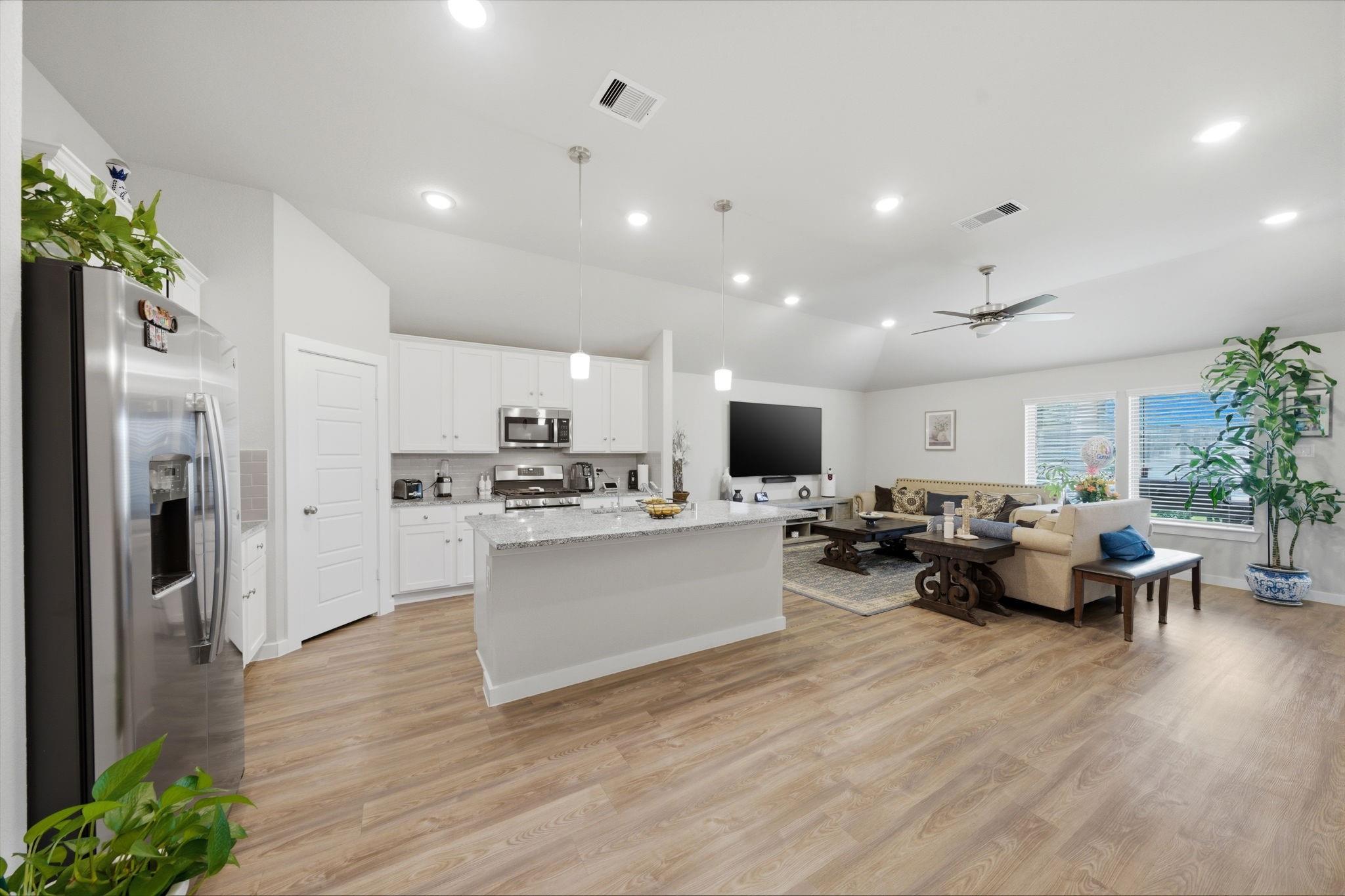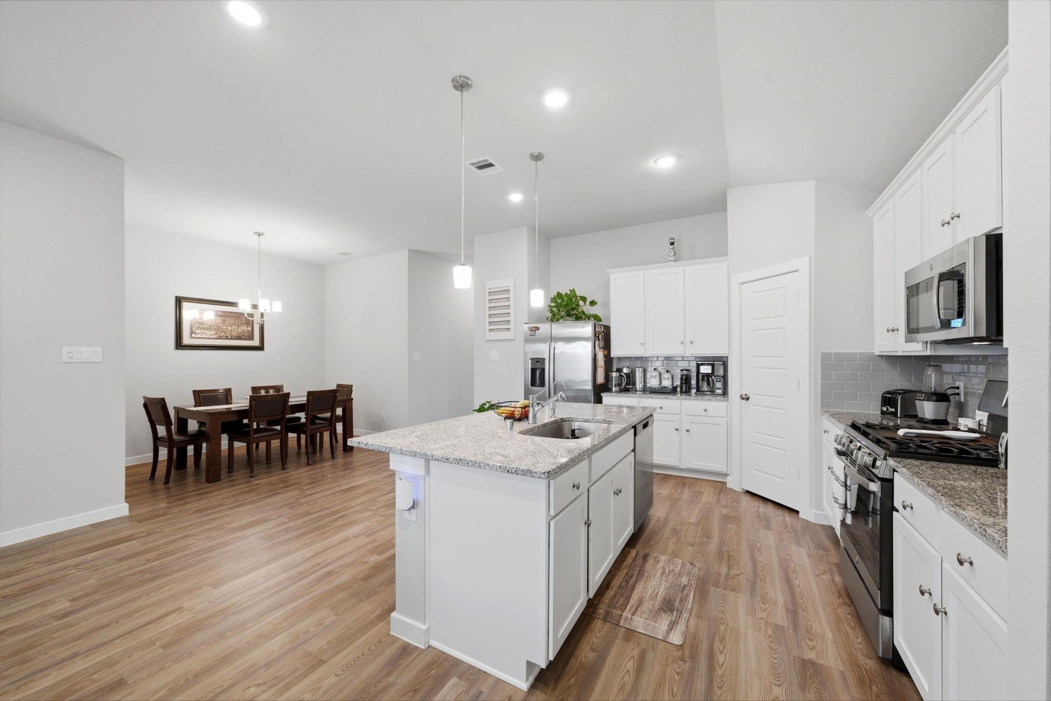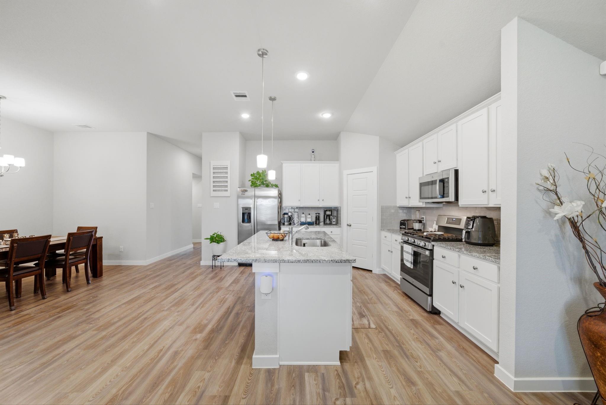 InteriorFloors:Vinyl PlankCountertop:GraniteBedroom Desc:All Bedrooms Down,Primary Bed - 1st Floor,Walk-In ClosetKitchen Desc:Pantry,Walk-in PantryRoom Description:Kitchen/Dining Combo,Living Area - 1st Floor,Utility Room in HouseHeating:Central GasCooling:Central ElectricConnections:Electric Dryer Connections,Washer ConnectionsDishwasher:YesDisposal:YesMicrowave:YesRange:Gas RangeOven:Single OvenInterior:Dryer Included,Washer Included