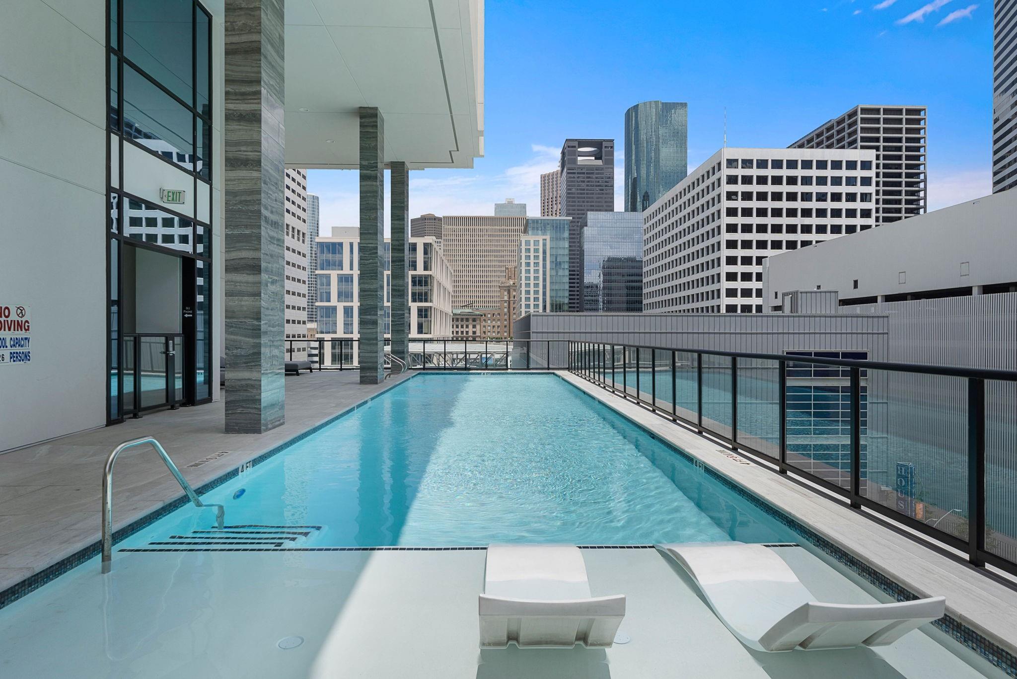 Great opportunity for central Downtown living! This contemporary unit features floor-to-ceiling windows with stunning Downtown Houston views, a private balcony, open layout, 10-ft ceilings, and wood floors. The kitchen showcases quartz counters, high-end appliances, Pedini cabinets, and a breakfast island. Two bedrooms with two full baths, primary features an en-suite bathroom, black out roller shades, with expansive views of Downtown. Unit features in-house utility room, and 2 parking spaces, 24/7 concierge, guest suite, pool, fitness center, sauna, pet run, and outdoor kitchen. Furniture can be included. Close to Toyota Center, Minute Maid Park, GreenStreet, Discovery Green, Four Seasons Hotel, House of Blues, The Palm, Pappas Steakhouse, and Buffalo Bayou to name a few. Furniture and decor currently in the condo is included with the sale.