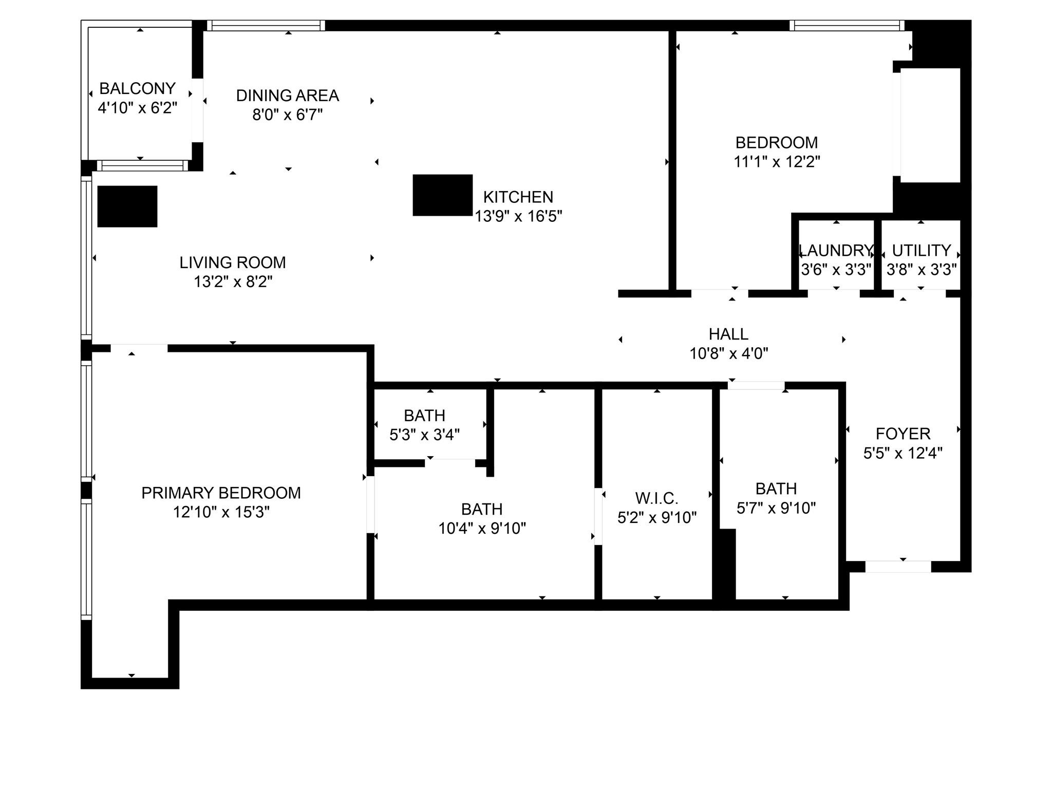 First FloorLiving:13'2" x 8'2"Dining:8'0" x 6'7"Kitchen:13'9" x 16'5"Primary Bedroom:12'10" x 15'3"Bedroom:11'1"x 12'2"Primary Bath:10'4" x 9'10"Bath:5'7" x 9'10"Entry:5'5" x 12'4"