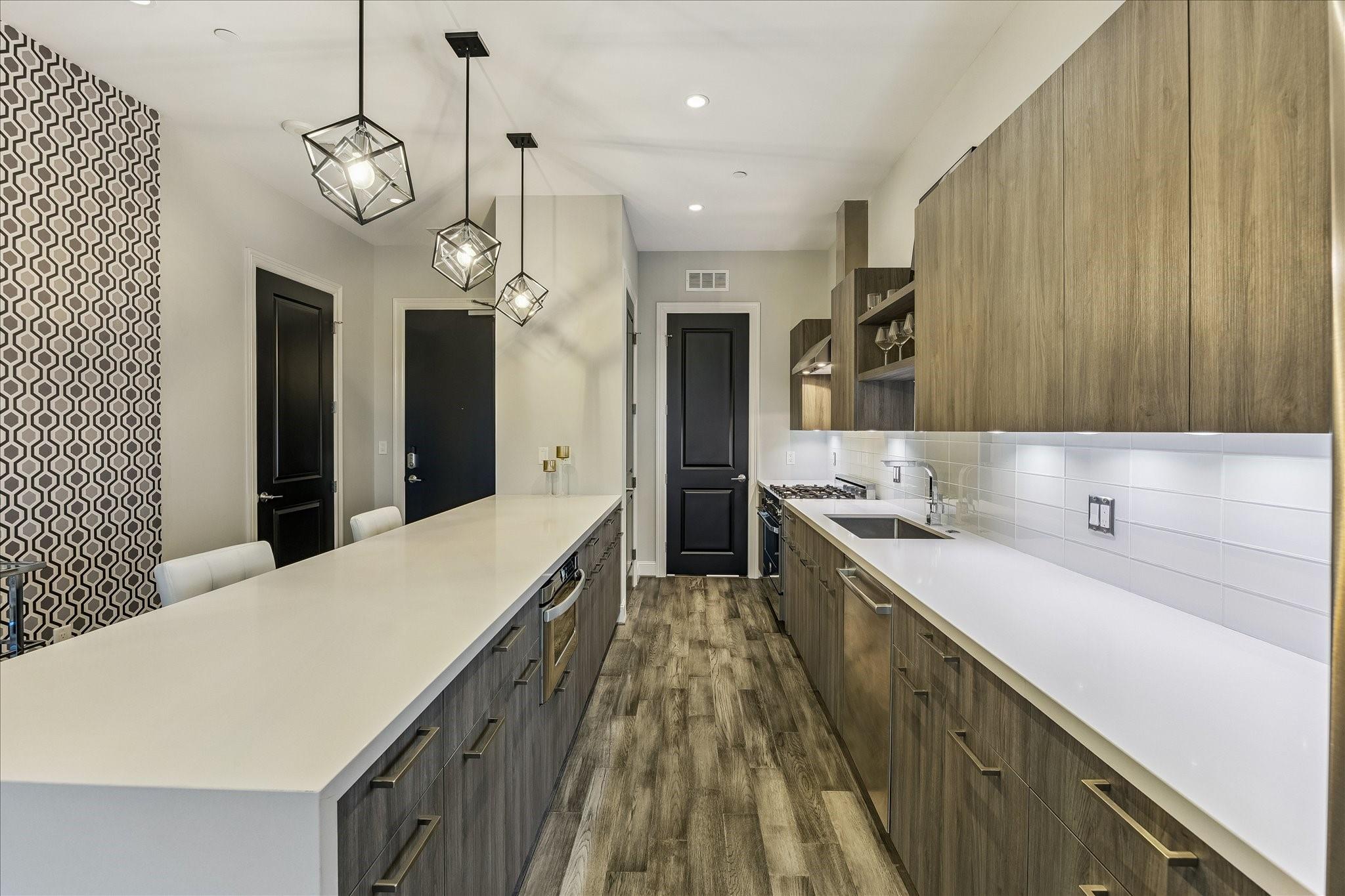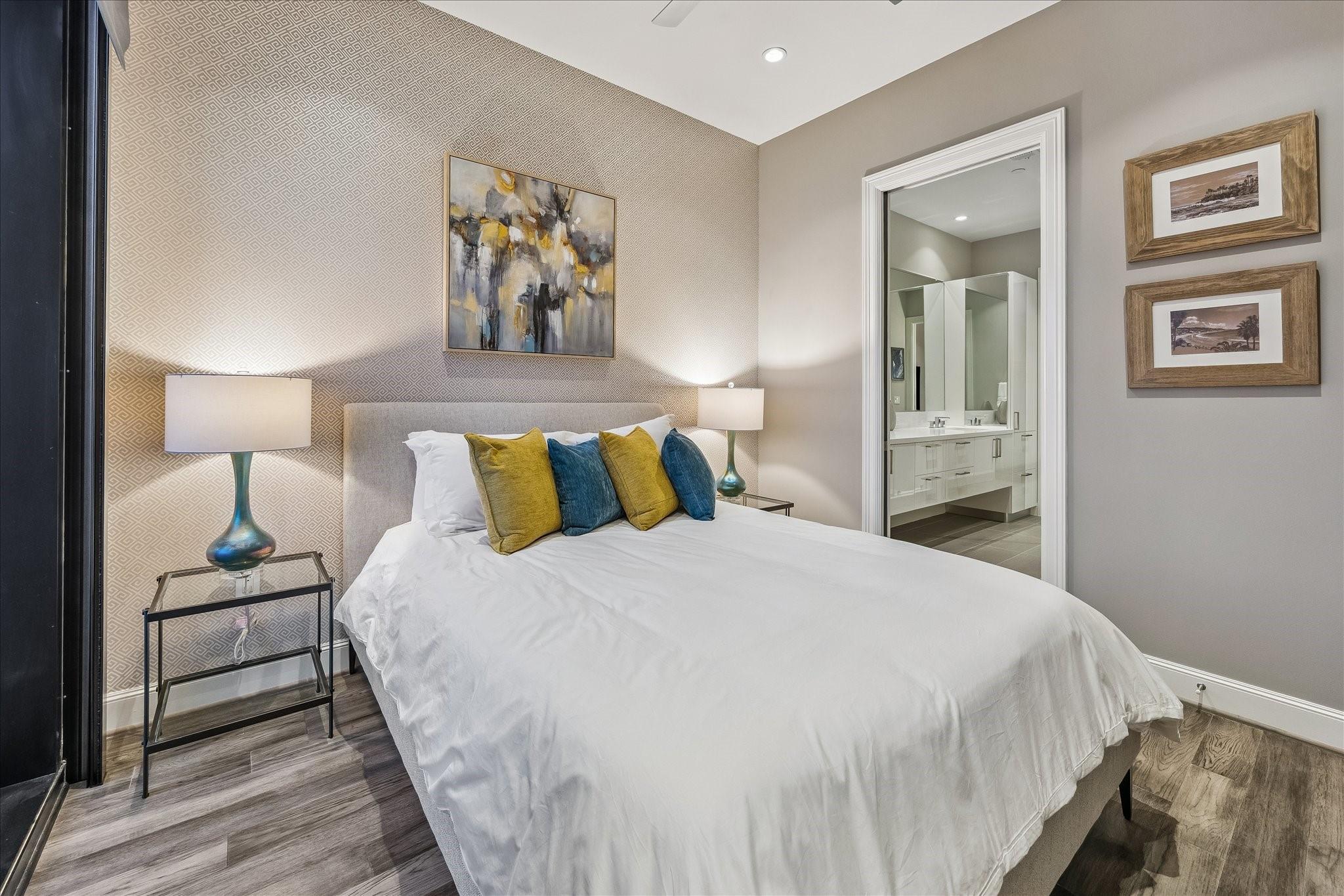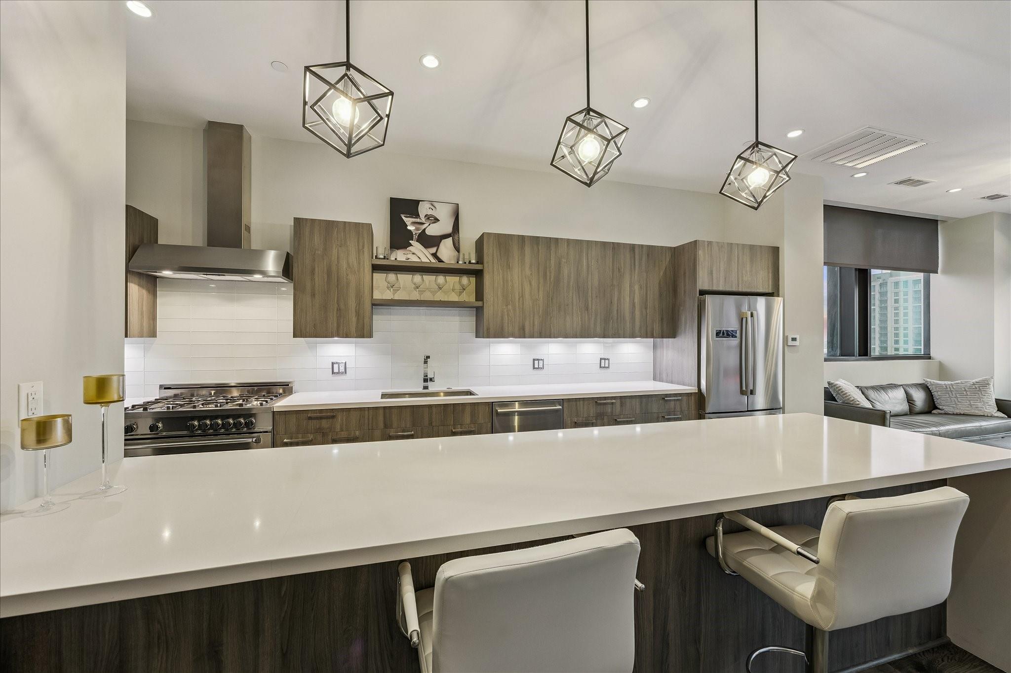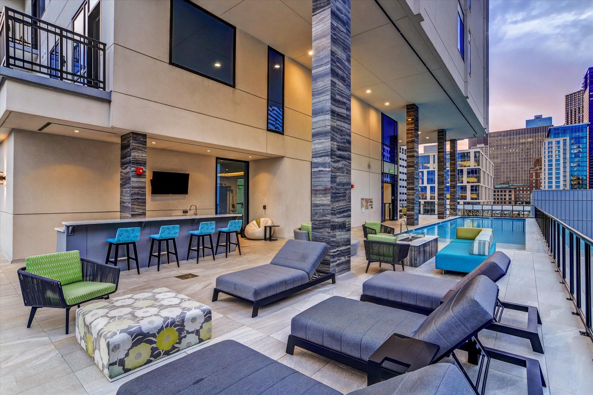 STUNNING CORNER UNIT WITH AMAZING VIEWS, UPGRADES, AND FANTASTIC LOCATION! Attention to detail shows with this meticulously maintained and owner-occupied unit since new. Thoughtful upgrades include sleek wall-paper accents and black interior doors, unique electric fireplace, Savant smart system with automated lighting, automated window shades with second black-out shade in bedroom, 2 flush-mounted QLED Art TV's, Sonos soundbar, washer/dryer and wine fridge all included! Custom closet, pantry, and additional storage built into utility room. Be sure to watch the video tour! Enjoy all of the convenience of downtown Dining, Entertainment, Sporting Events, and a quick stroll to the Phoenicia market! The MARLOWE offers first class amenities with an extensive Fitness Center, Sauna, Pool Deck, Secure Garage, Concierge, Dog Run and more! Outdoor Pool/Kitchen area currently under remodel and set to re-open this summer. Come enjoy life at the MARLOWE! Owner is a Licensed Texas Real Estate Agent.
