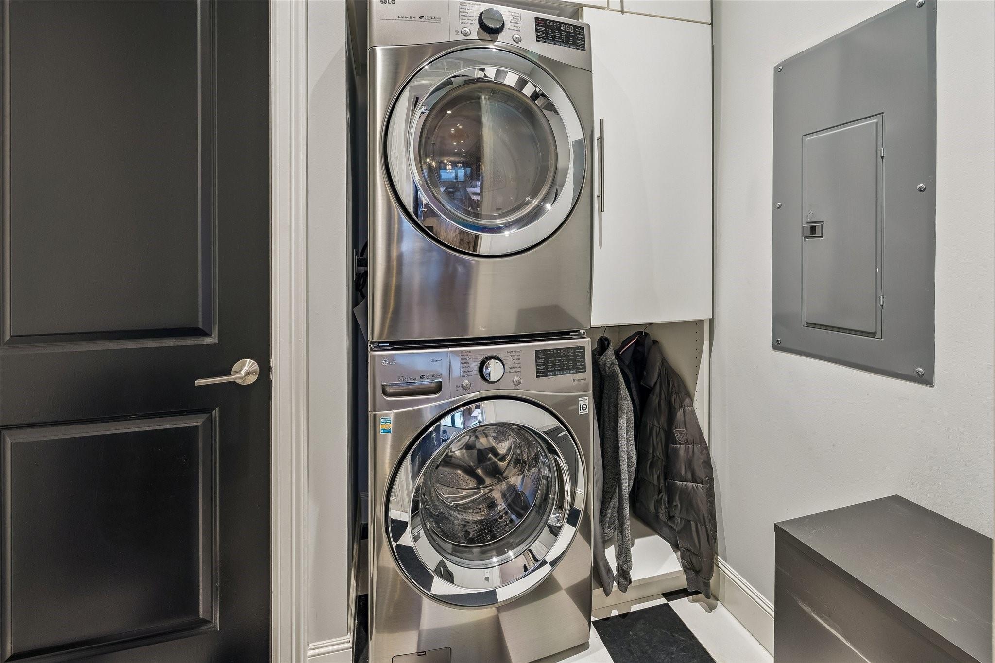 InteriorFireplace:1/Electric FireplaceFloors:Engineered Wood,TileCountertop:QuartzKitchen Desc:Pantry,Soft Closing Cabinets,Soft Closing Drawers,Under Cabinet LightingRoom Description:1 Living AreaHeating:Central ElectricCooling:Central ElectricWasher/Dryer Conn:YesDishwasher:YesDisposal:YesMicrowave:YesRange:Gas RangeOven:Gas OvenIce Maker:NoAppliances:Dryer Included,Full Size,Refrigerator,Stacked,Washer IncludedEnergy Feature:Energy Star Appliances,Energy Star/CFL/LED Lights,High-Efficiency HVAC,HVAC>13 SEER,Insulated/Low-E windowsInterior:Balcony,Fire/Smoke Alarm,Refrigerator Included,Window Coverings,Wine/Beverage Fridge