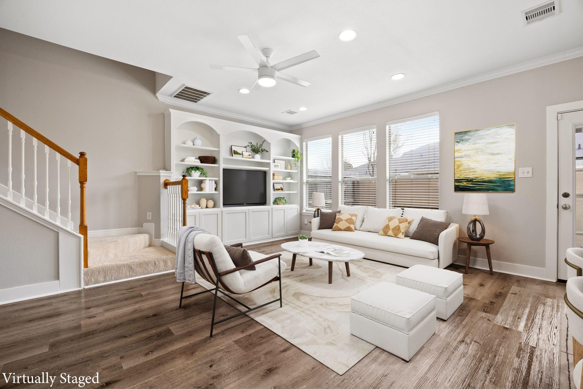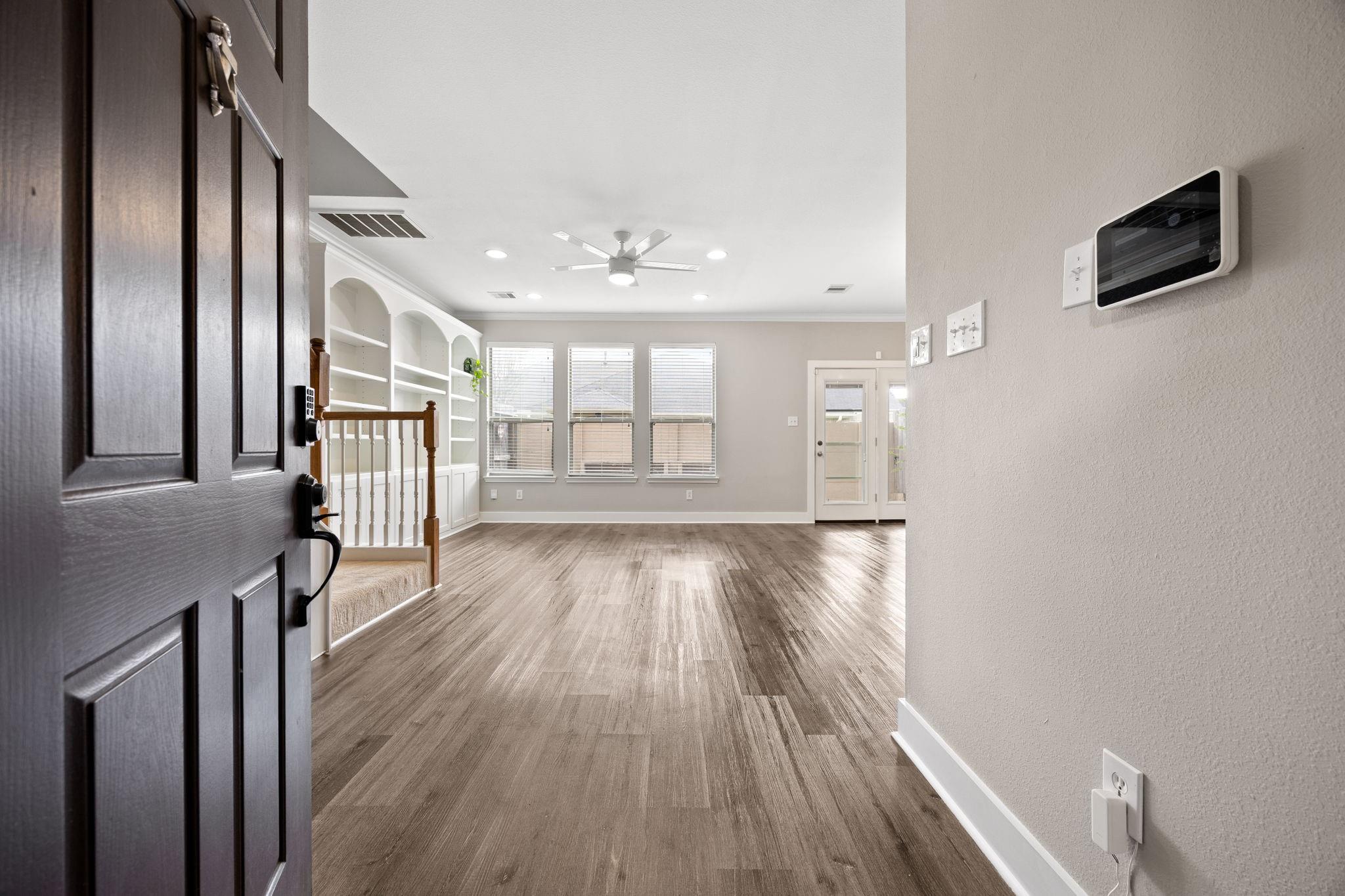Beautifully updated and meticulously maintained home offering a bright, airy feel with abundant natural light throughout. Freshly painted neutral tones, the interior creates a clean, modern backdrop ready for any style. The inviting living area features a built-in wall unit, ideal for a TV and decorative display. The kitchen and powder bath showcase elegant gold-tone fixtures, while both bathrooms have been upgraded with high-quality showers designed for comfort and performance. Enjoy added privacy with no rear neighbors, as the home backs to a peaceful green space. The backyard is perfect for relaxing or entertaining, complete with a pergola-covered patio. Ceiling fans in all bedrooms enhance comfort year-round. Ideally located near highly rated Tomball ISD schools, shopping, dining, and everyday conveniences, with easy access to popular restaurants and entertainment. Quiet gated community, friendly surroundings complete the appeal of this exceptional property. HOA takes of exterior.